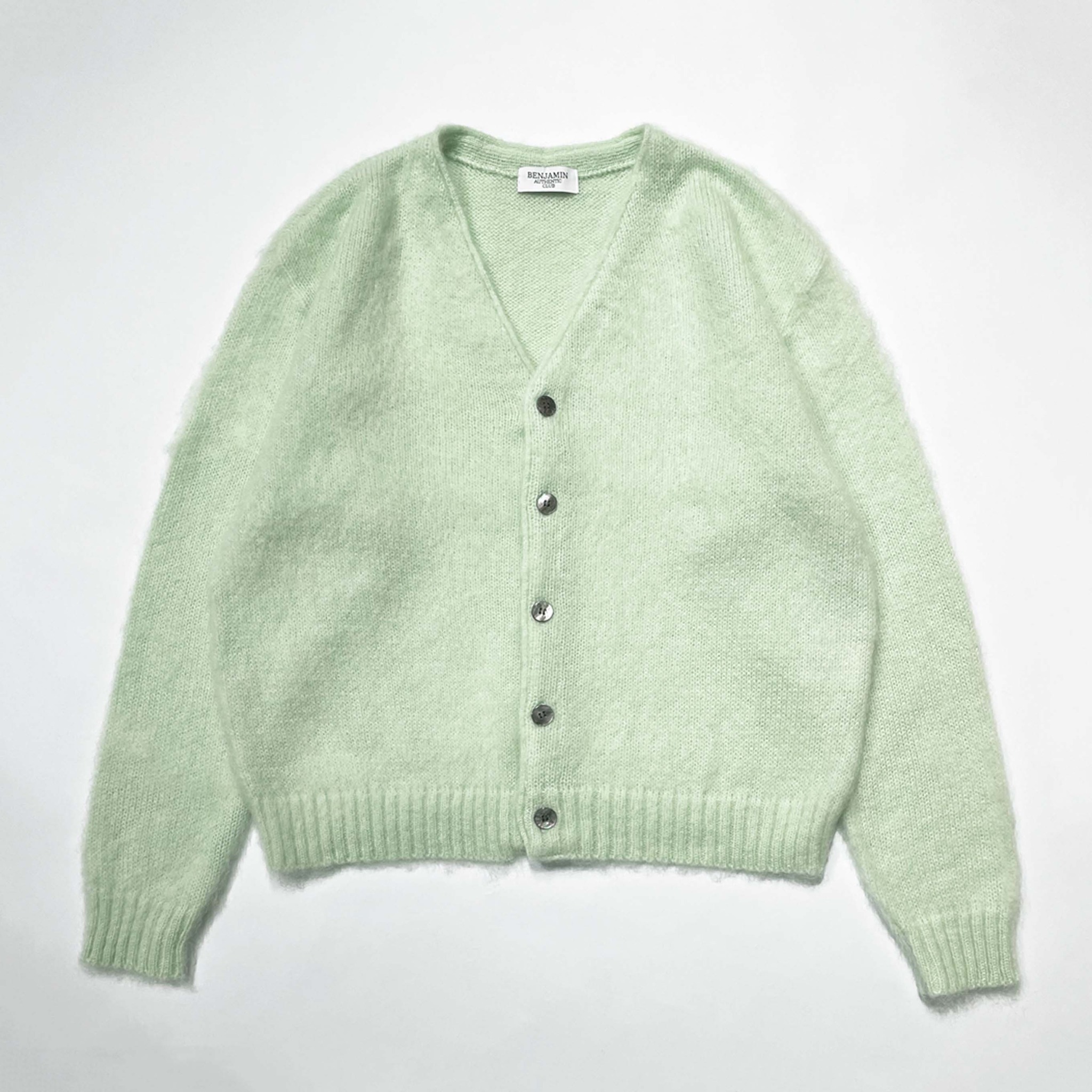 上質な キッドモヘア を使った、今年のBenjamin Authentic Clubのカーディガン。長い毛足の表情、軽さ、光沢で素材の良さがそのまま伝わる一枚です。