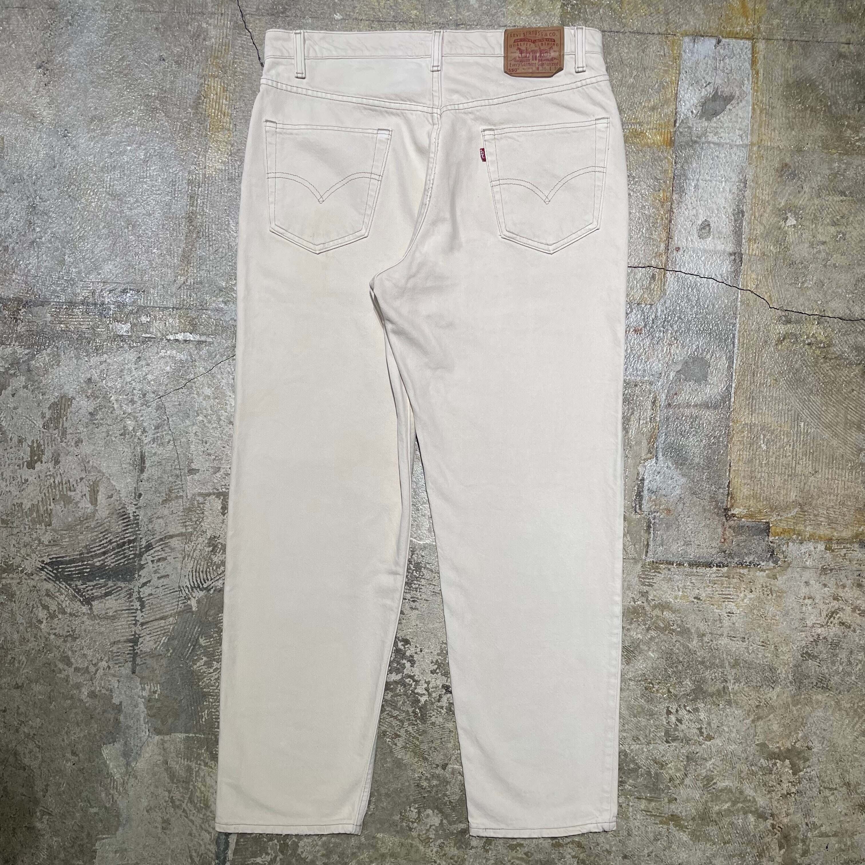 生成り、オフホワイトで珍しいカラーリング。この春にあえて野暮ったい・いなたいスタイルを作るのにちょうどいい1本。ジャストサイズでも、ベルトでぎゅっと閉めてもワイドで綺麗なスタイルが作れる品番です。