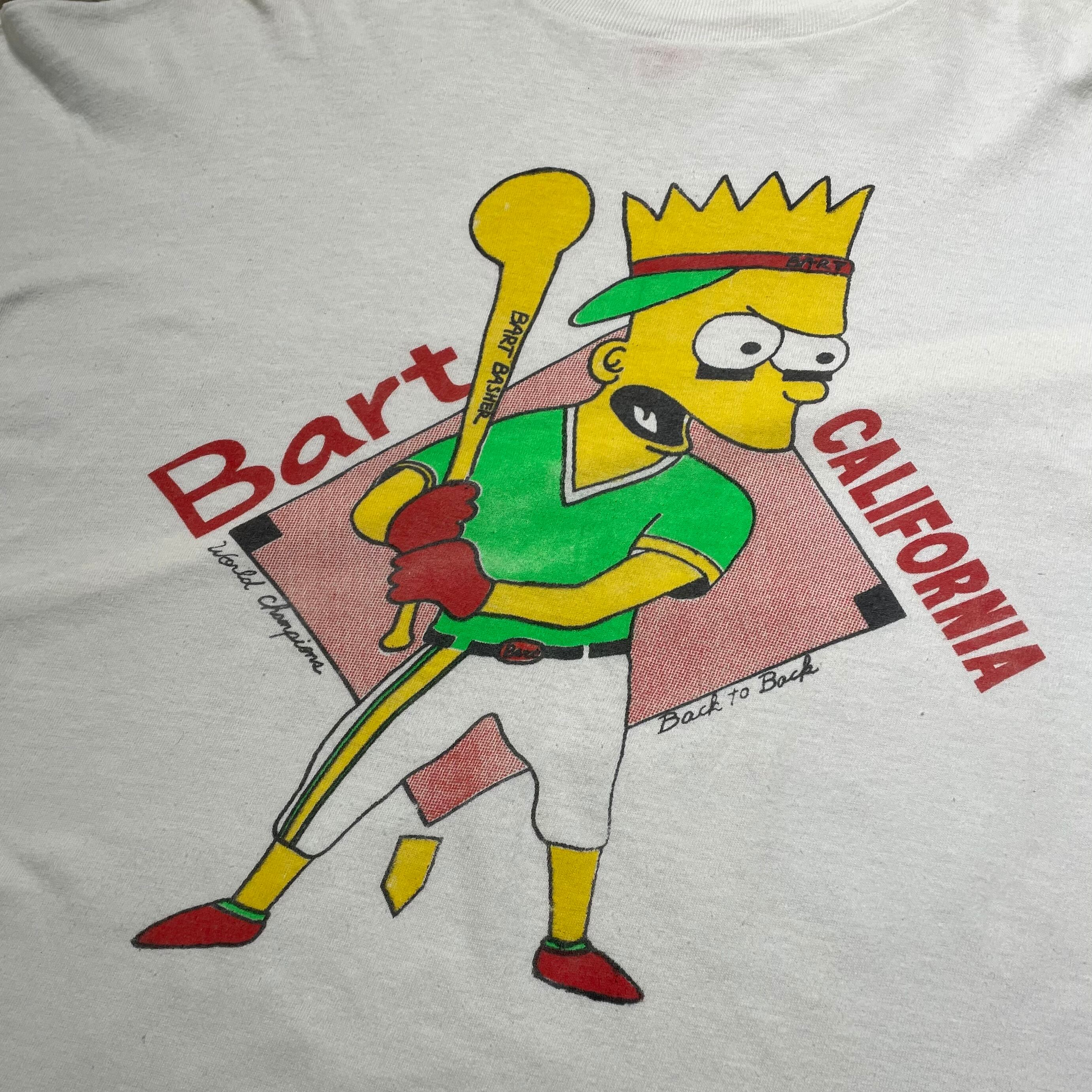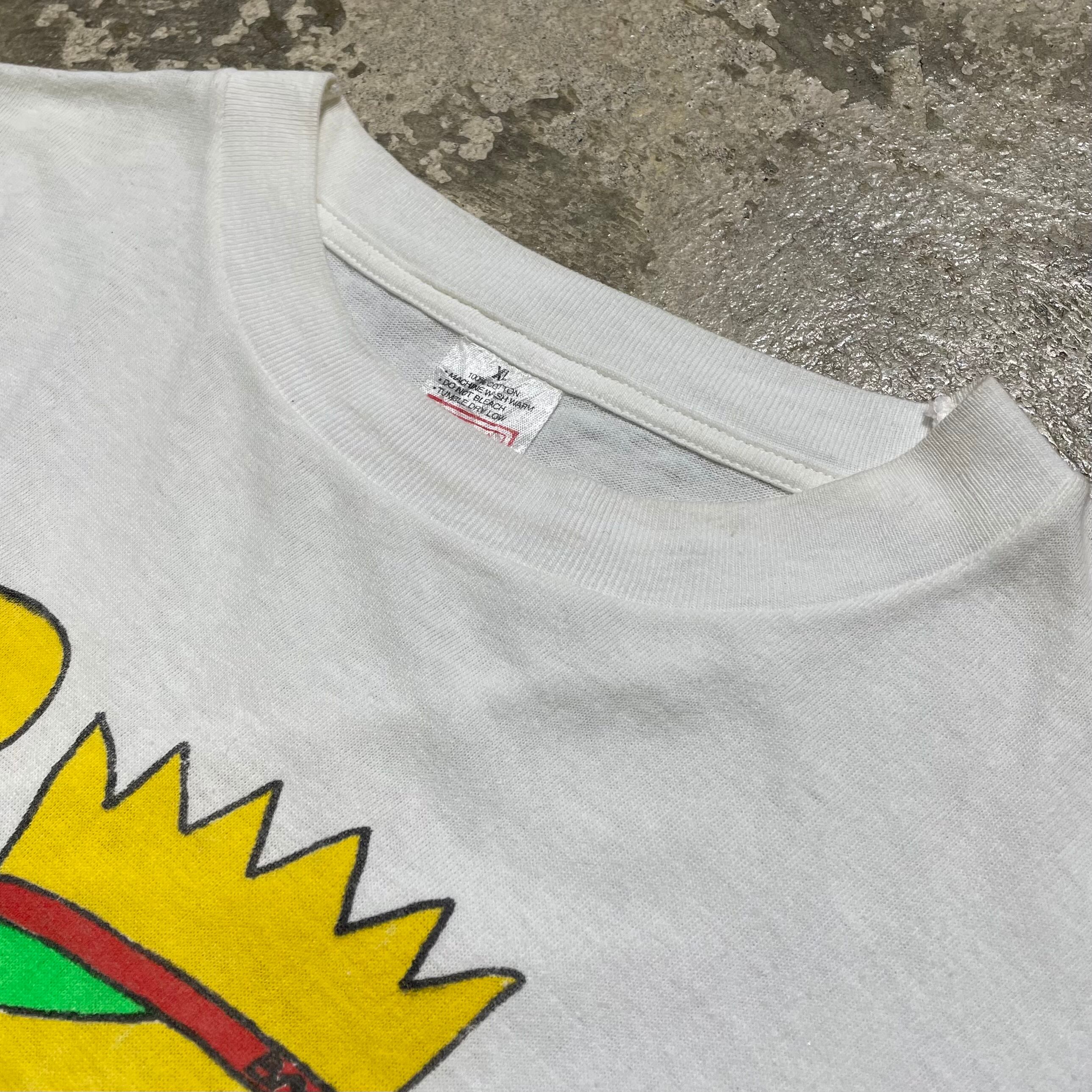 アメリカの国民的アニメ番組THE SHIMPSONSの長男バートのプリントが施されたアイテム。ボディは肩、身幅が広く着丈が短めなシルエットで現代にフィットしたtシャツになっています。水性プリント、袖裾のシングルステッチでヴィンテージならではの仕様で個性あるアイテムになっています。
