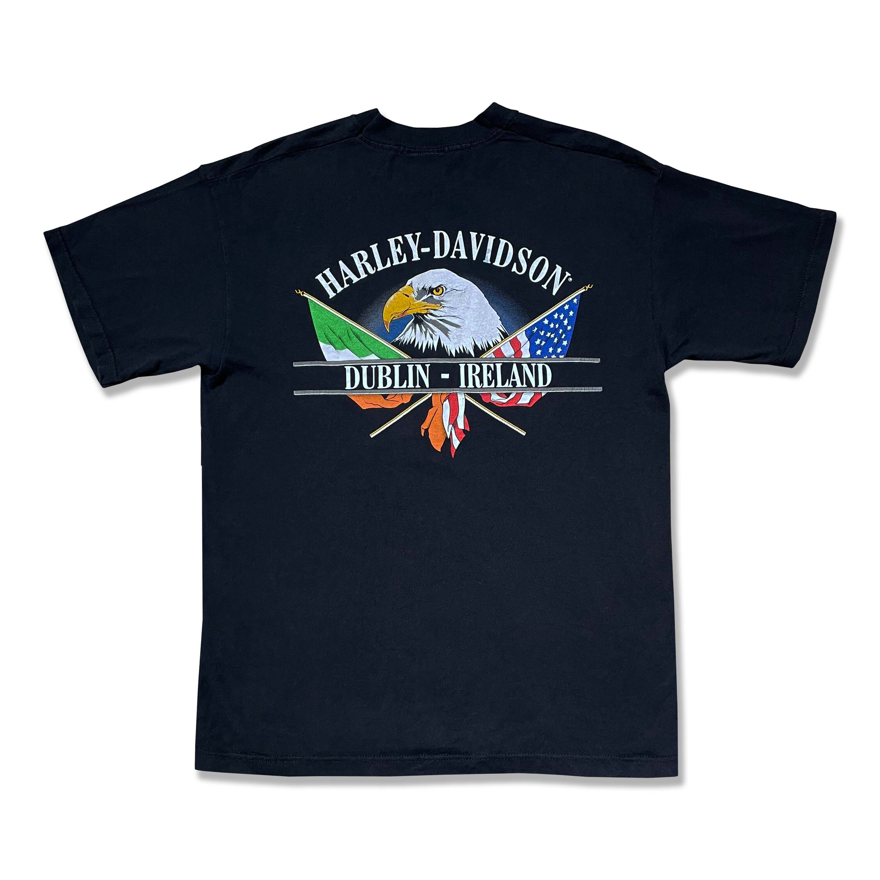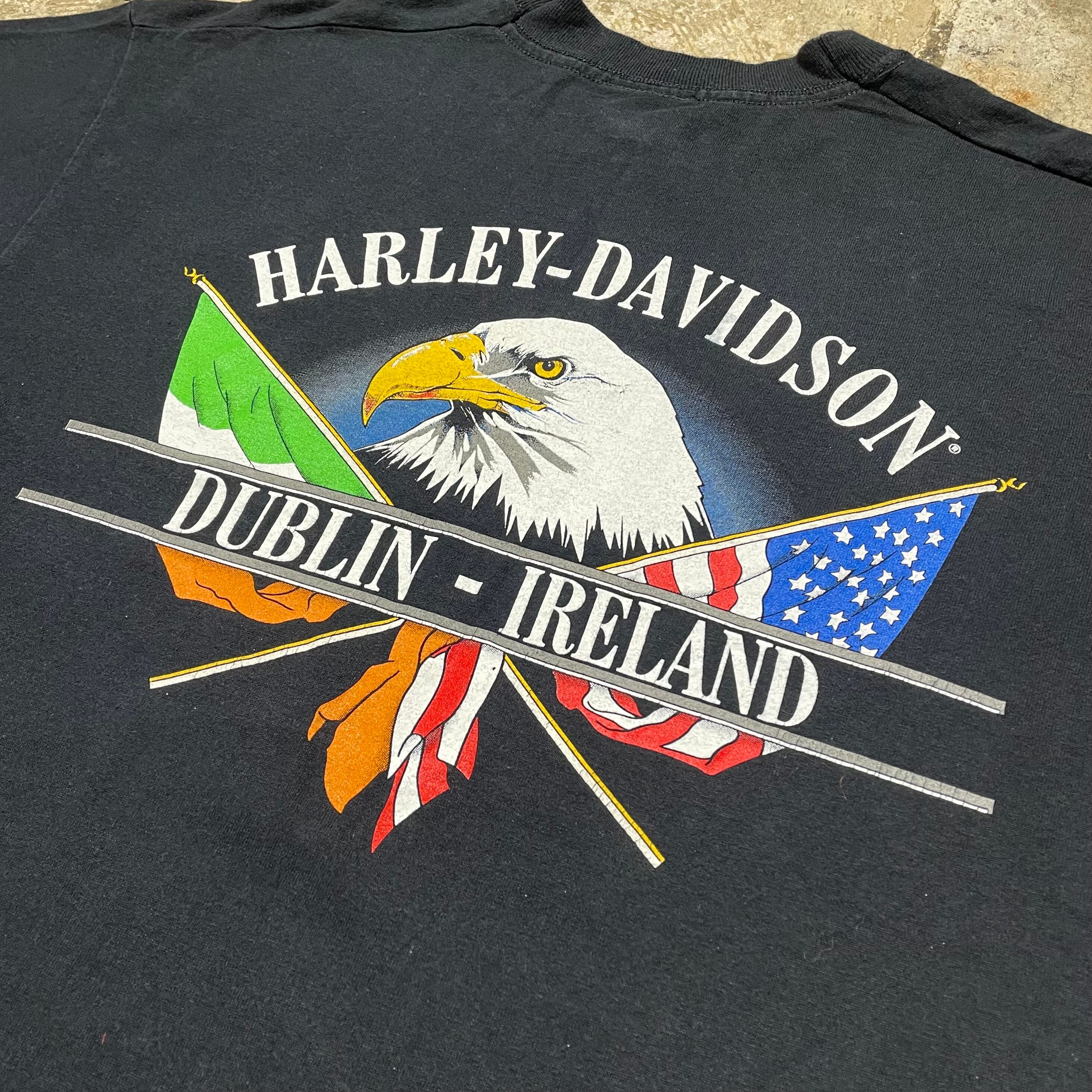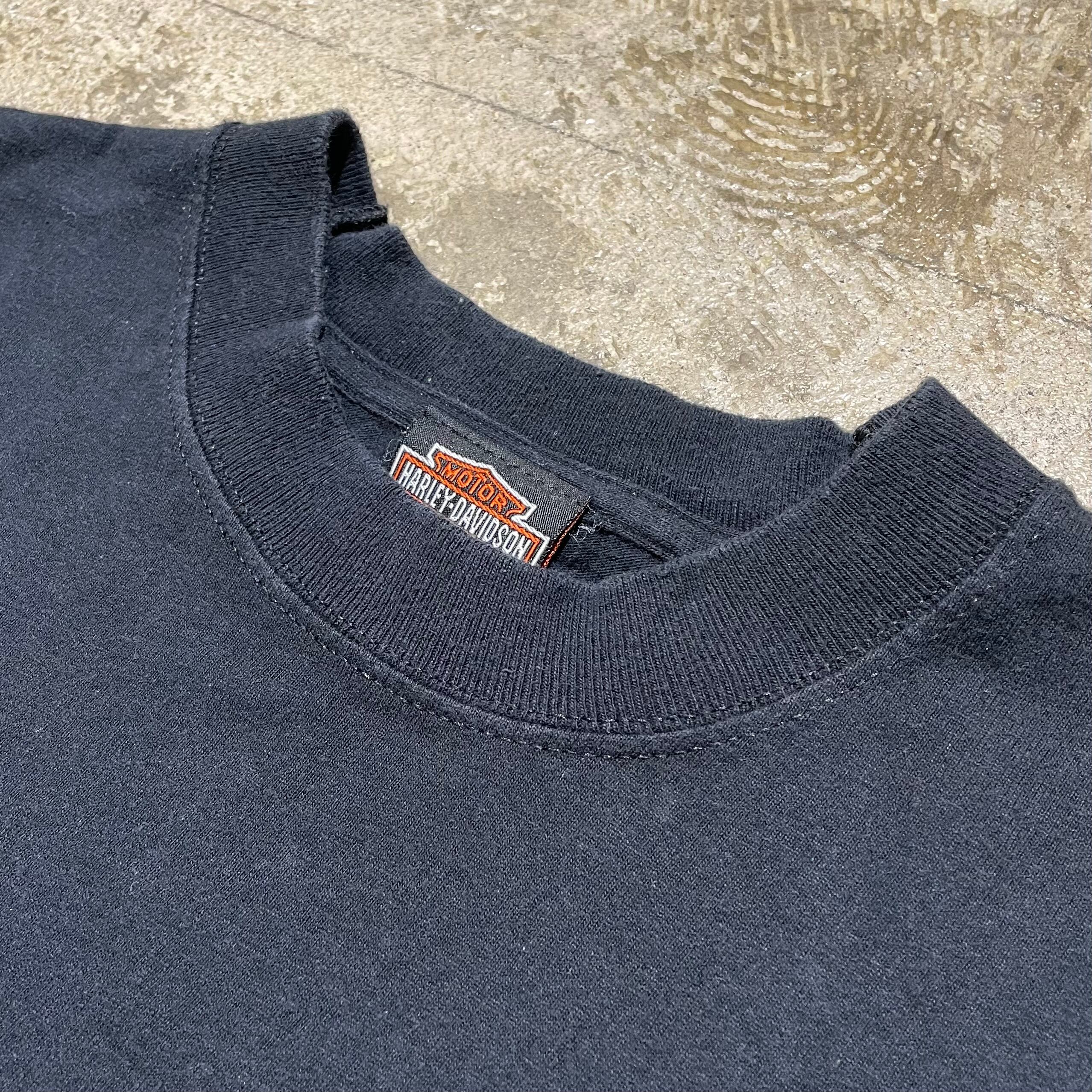 アメリカンバイクを代表するブランドHarley-Davidsonのアメリカ製のTシャツ。フロント、バックにはハーレーらしくイーグルのプリントがされており、どこかレトロで今着たい1着。バランスの良いパターンと太めの襟のリブが着やすいしっかりと作り込まれたこだわりを感じるTシャツになっています。