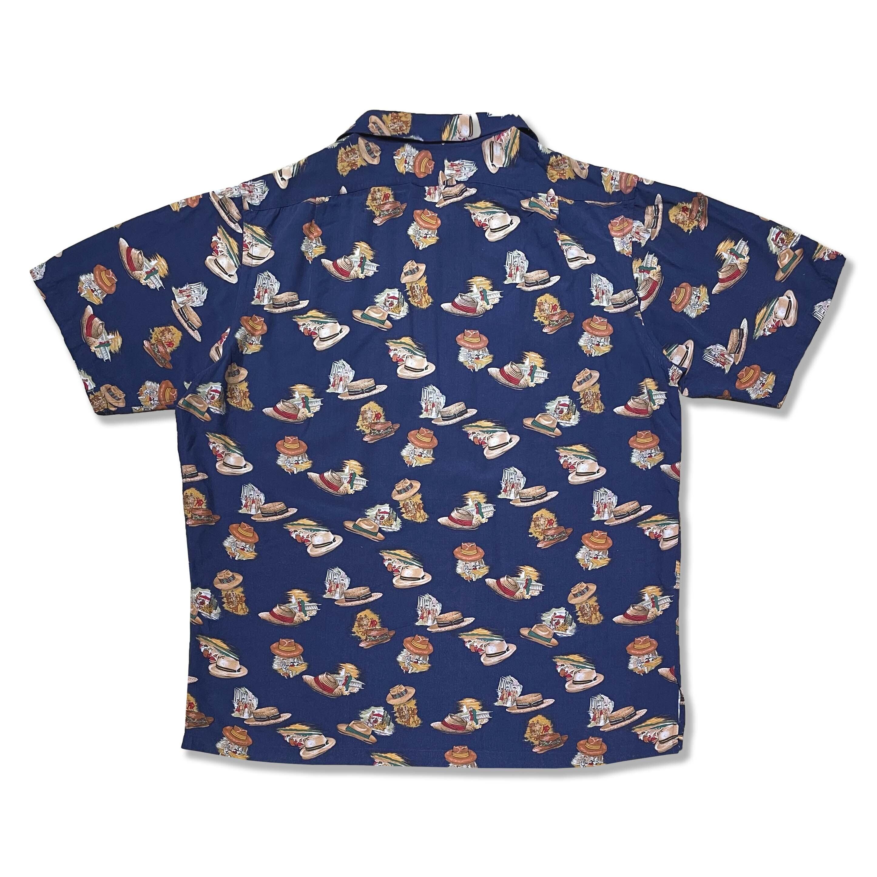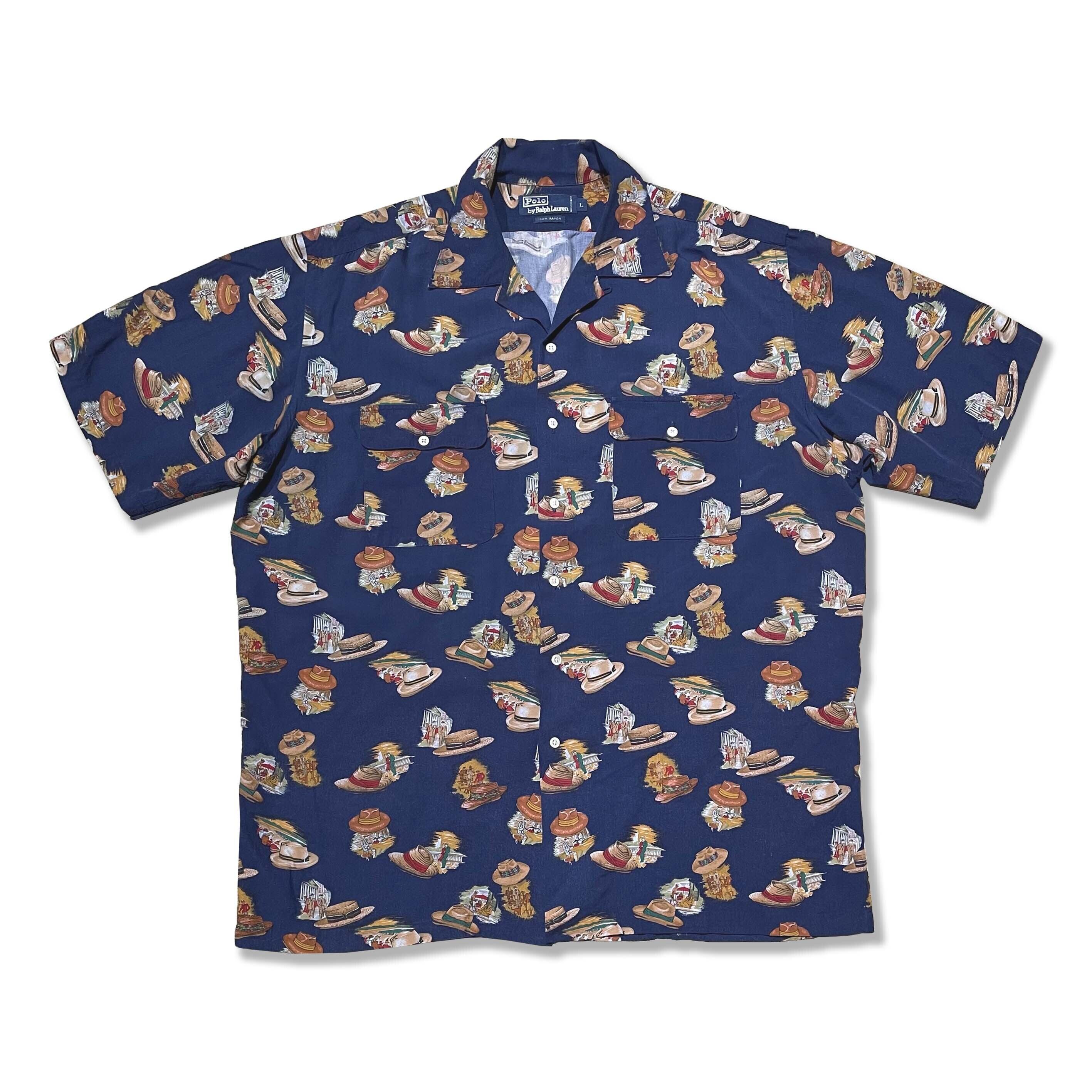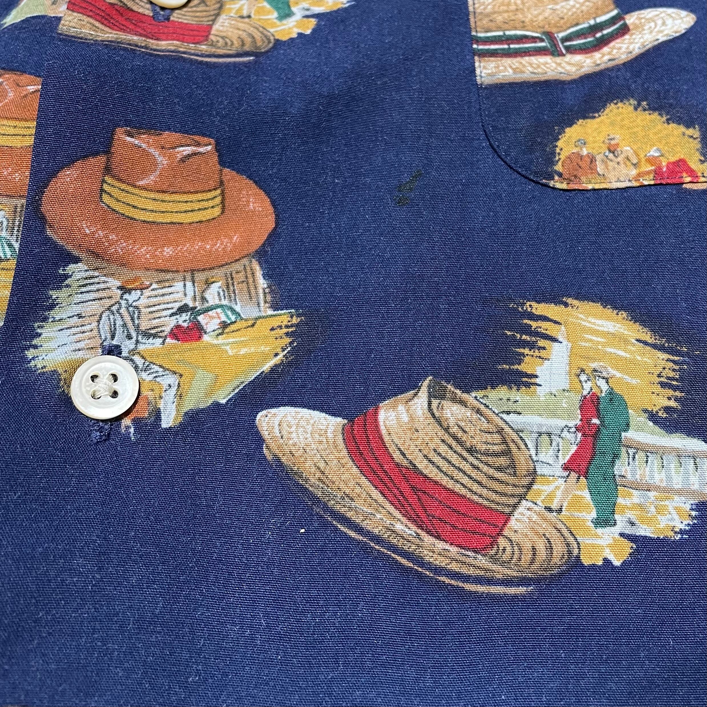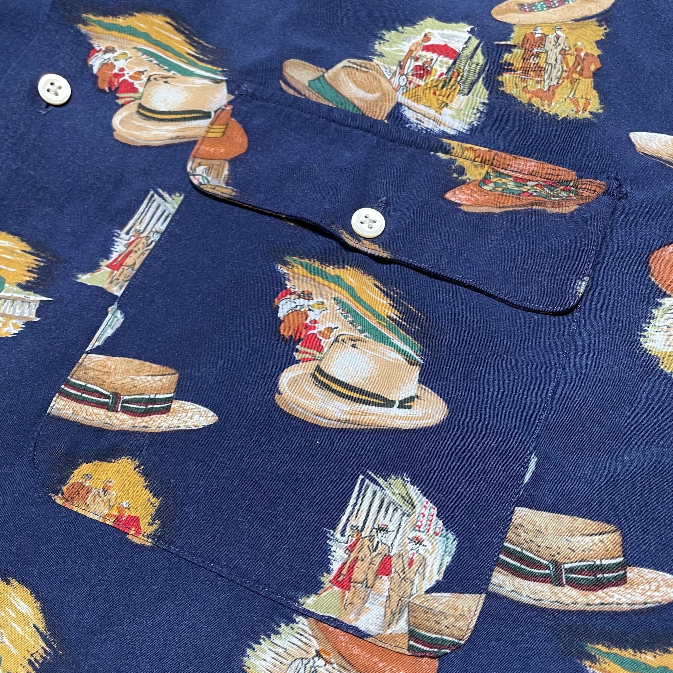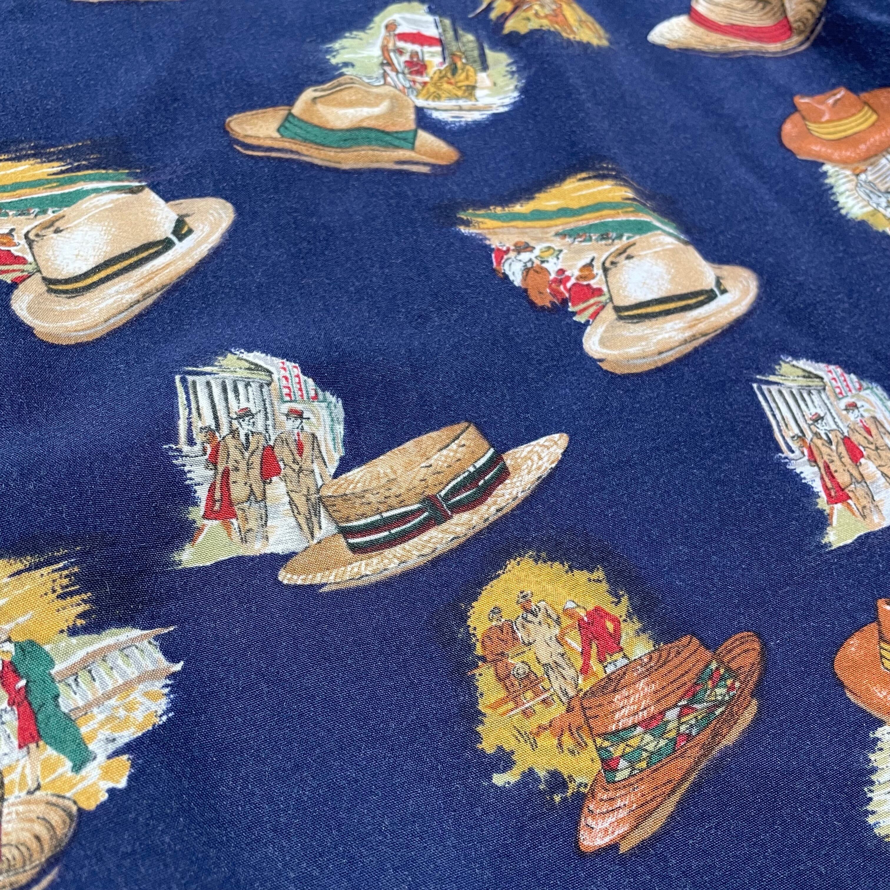 レーヨン100%の生地に麦わら帽子と紳士がプリントされたラルフローレンらしいアイテム。
