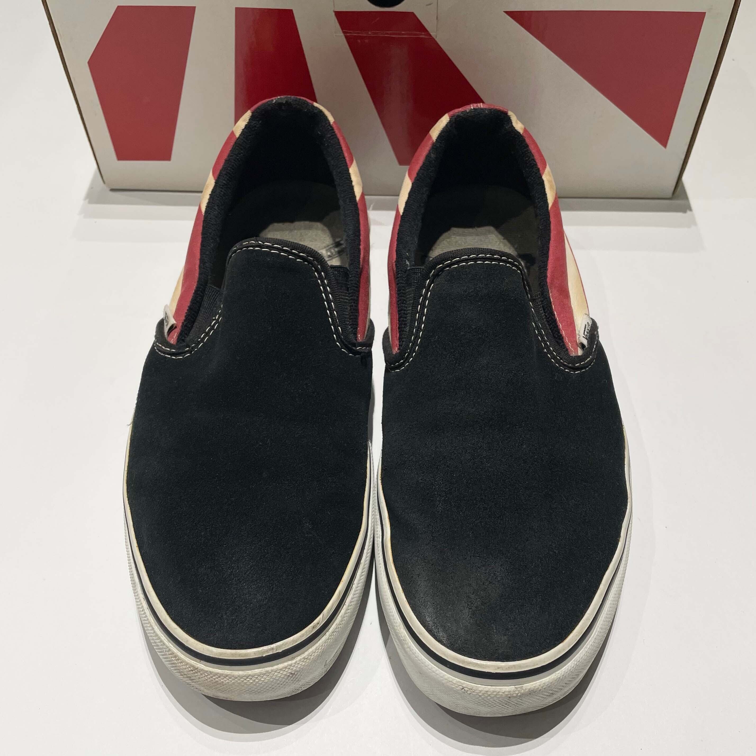 2008年にVansコラボのChristian Hosoiシグネイチャーモデル第二弾Rising Sunのスリッポン。1967年生まれ日系アメリカ人のクリスチャン・ホソイ。オリジナリティ溢れるトリックと高さのある派手なエアーに加え、ハイセンスなファッションと端正の顔立ちで80年代にスケート界の歴史を変えたレジェンドスケーターのアイテム。今回は中でも人気があり入手が難しかったスリッポンモデル。探されていた方もいるかと思います。この機会にぜひ。