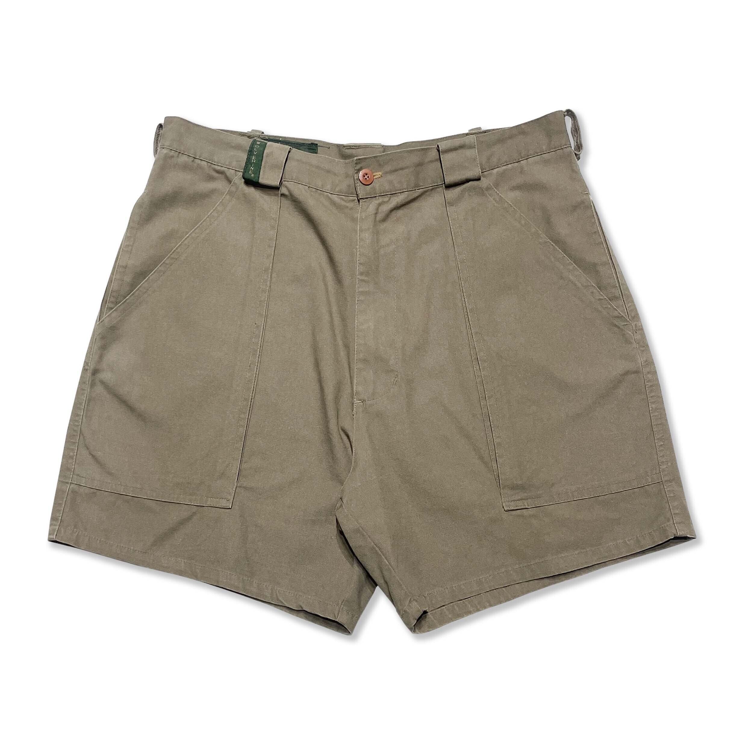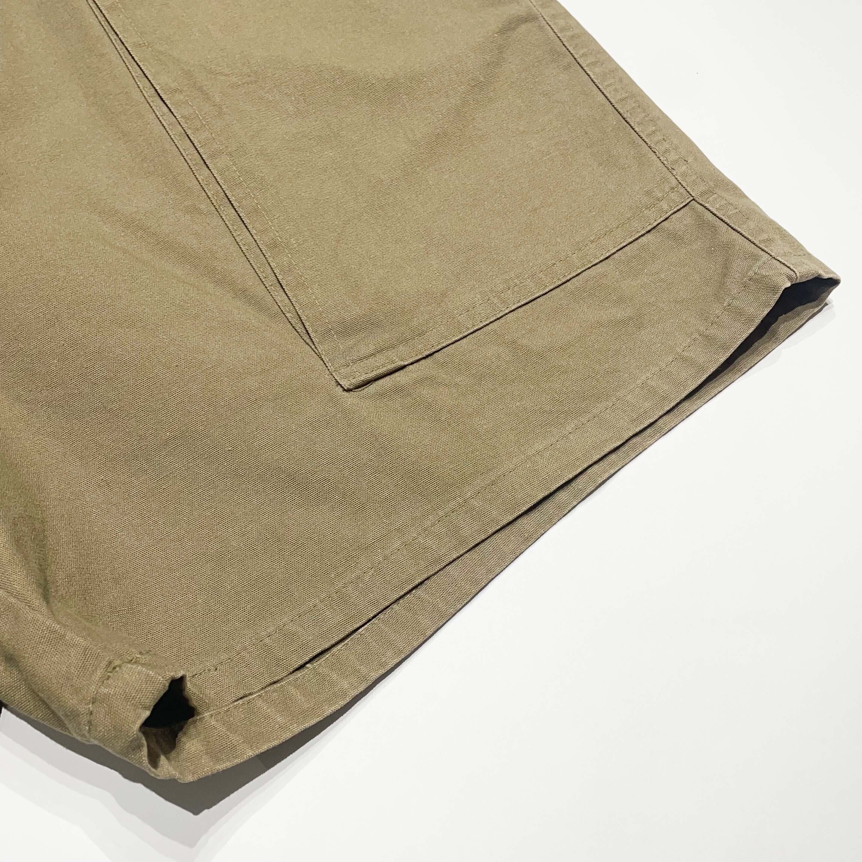 ミリタリーパンツをサンプリングした生地・デイテールのレギュラーショートパンツ。