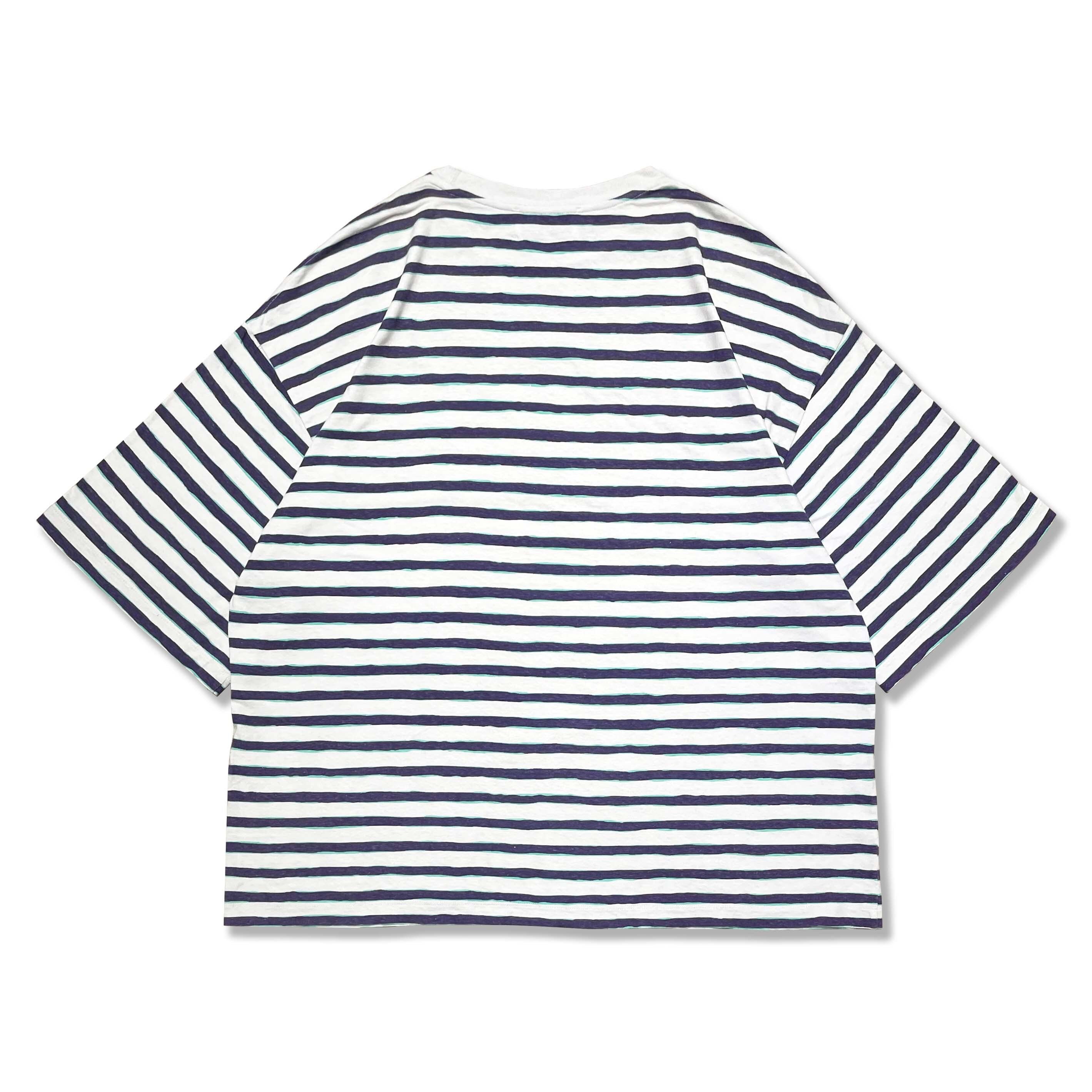 日本のブランドであるUNUSEDのボーダーTシャツ。オーバーシルエットでありながら、バランスがよいUNUSEDならではの計算されたシルエット。