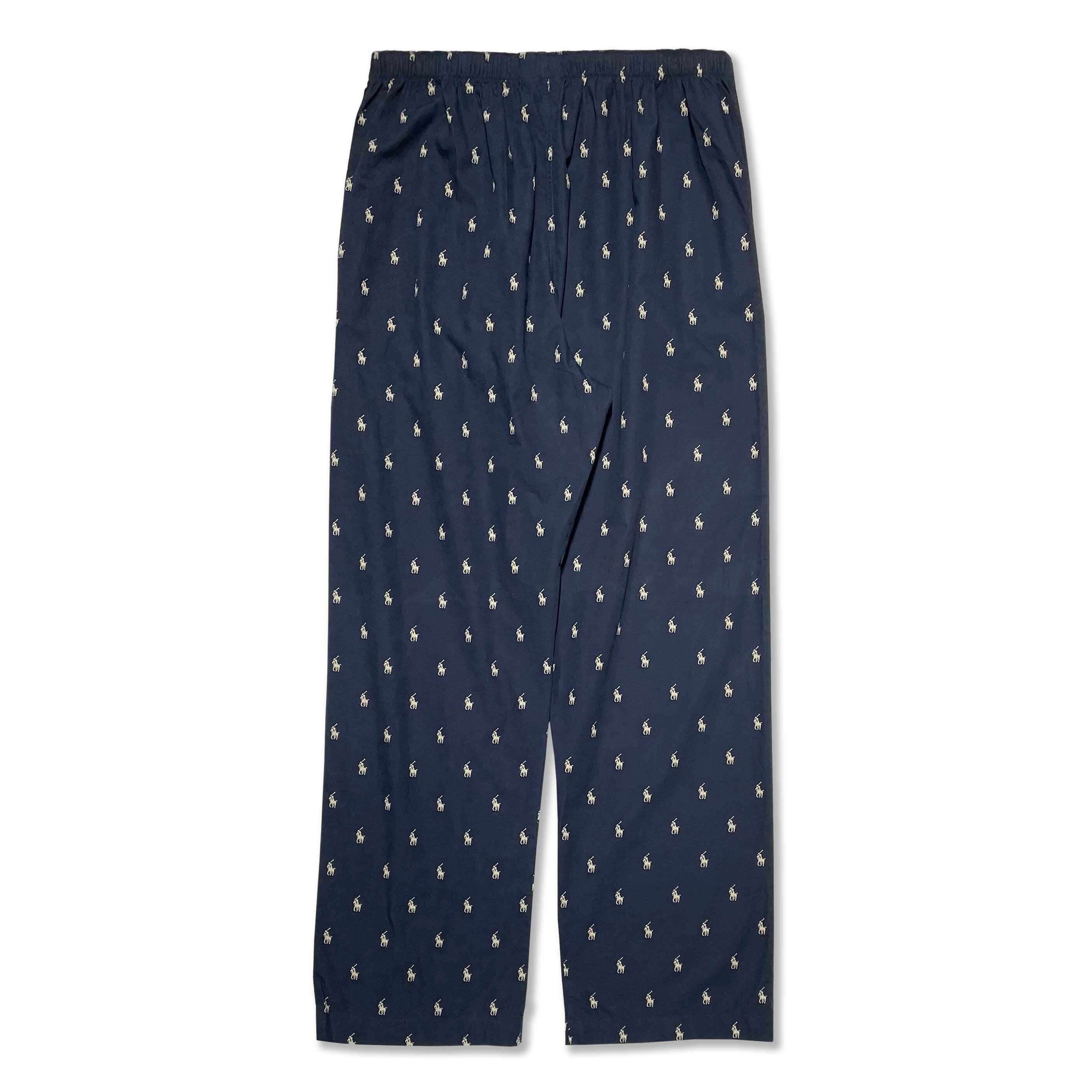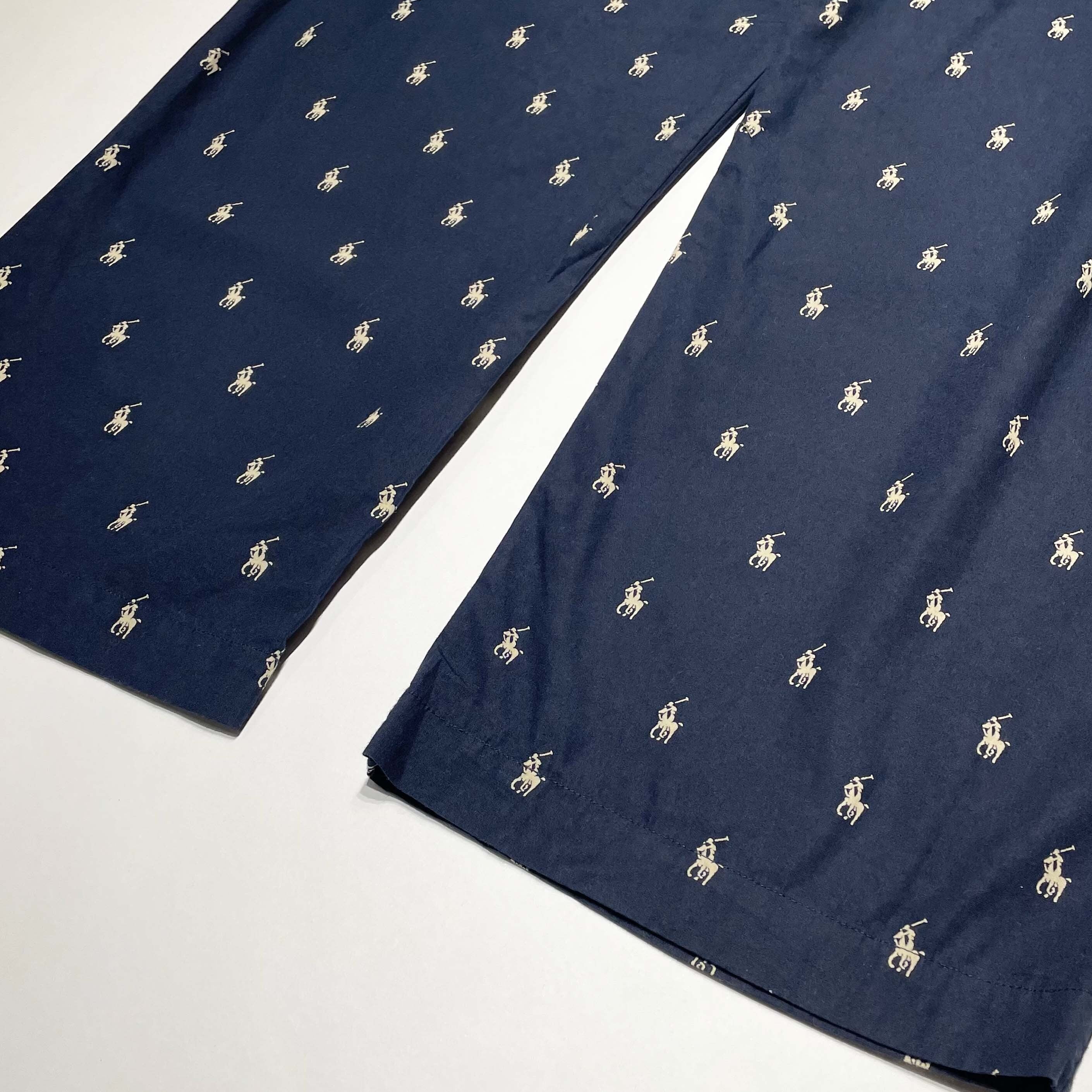 ポロのロゴが全面にプリントされた、存在感抜群の総柄パジャマパンツ。軽やかな素材感とリラックスしたシルエットが特徴。