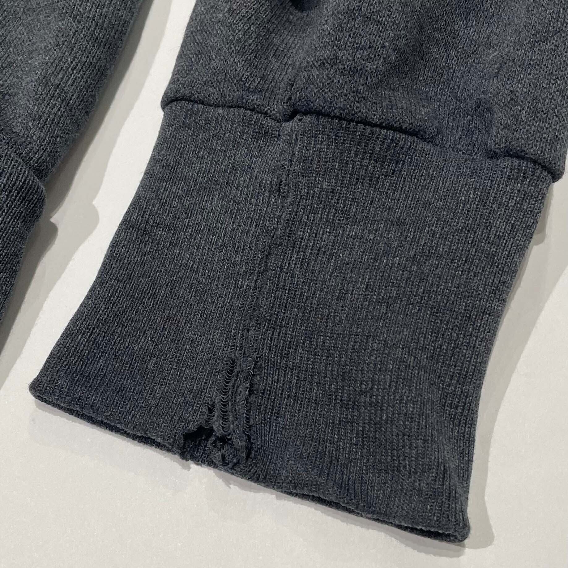 色褪せや所々の汚れも、むしろ味わいとして魅力的。薄手のスウェット素材で、インナーとしても使いやすく、レイヤードにも最適です。さらにショート丈のシルエットがアイデンティティとなり、独特なバランス感を演出しています。
