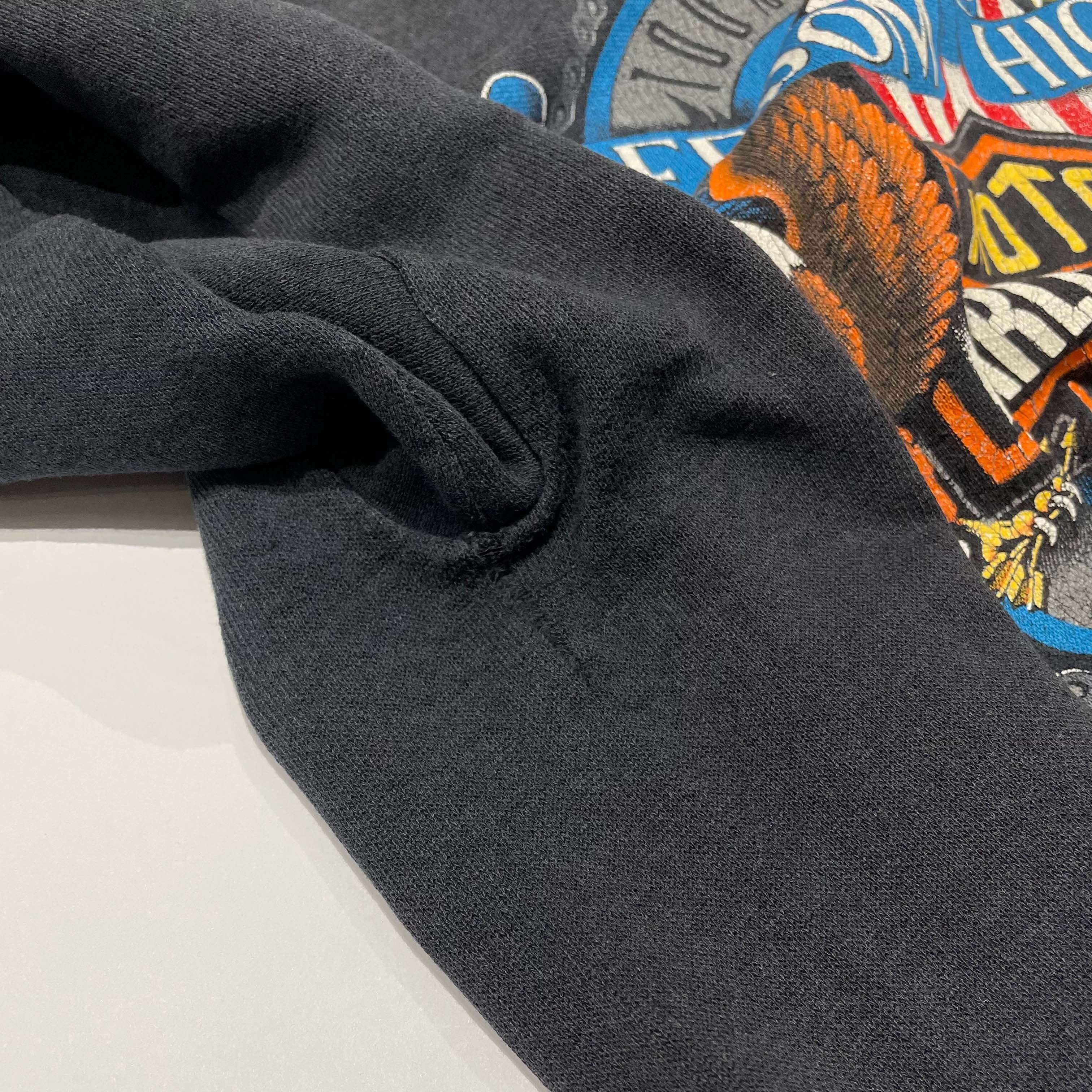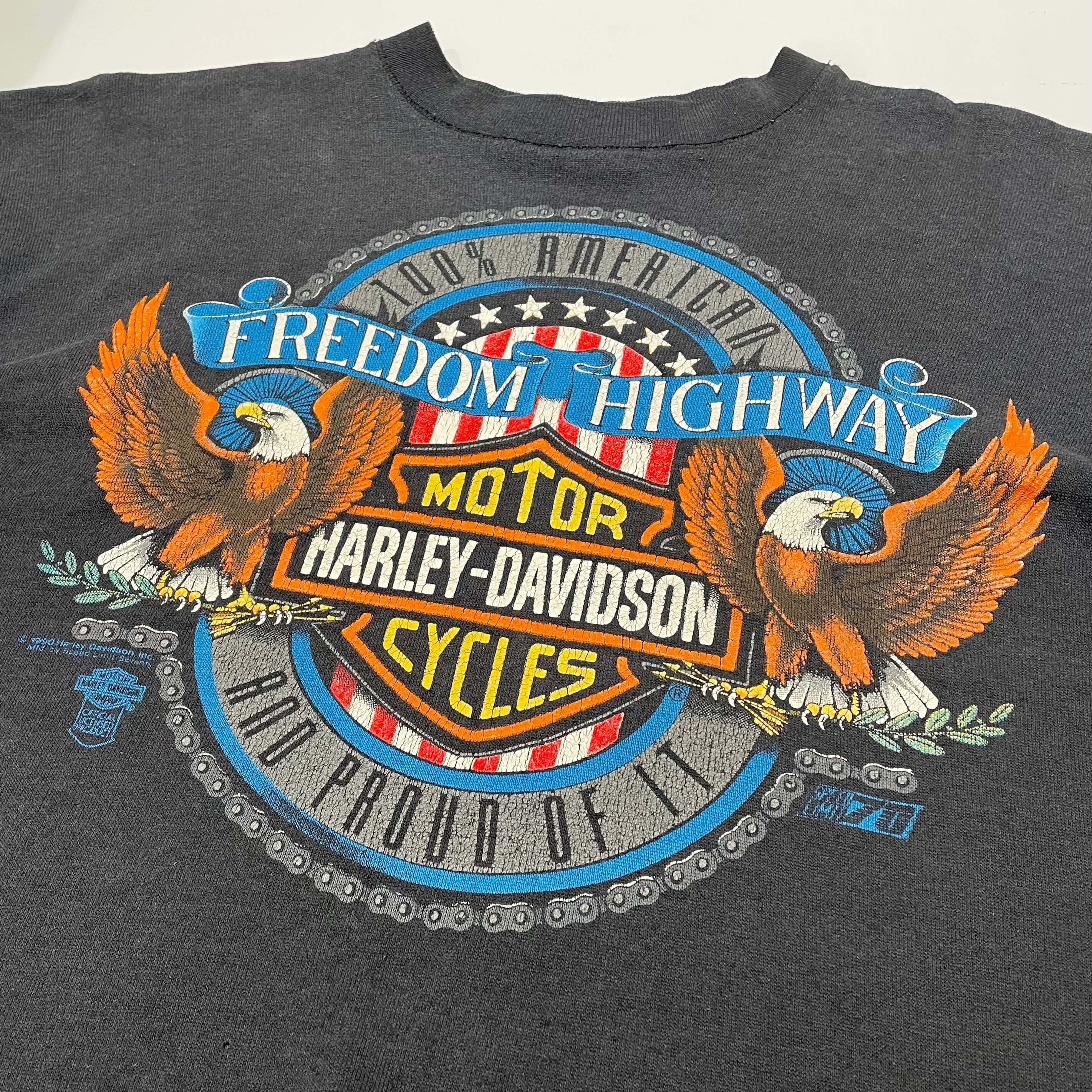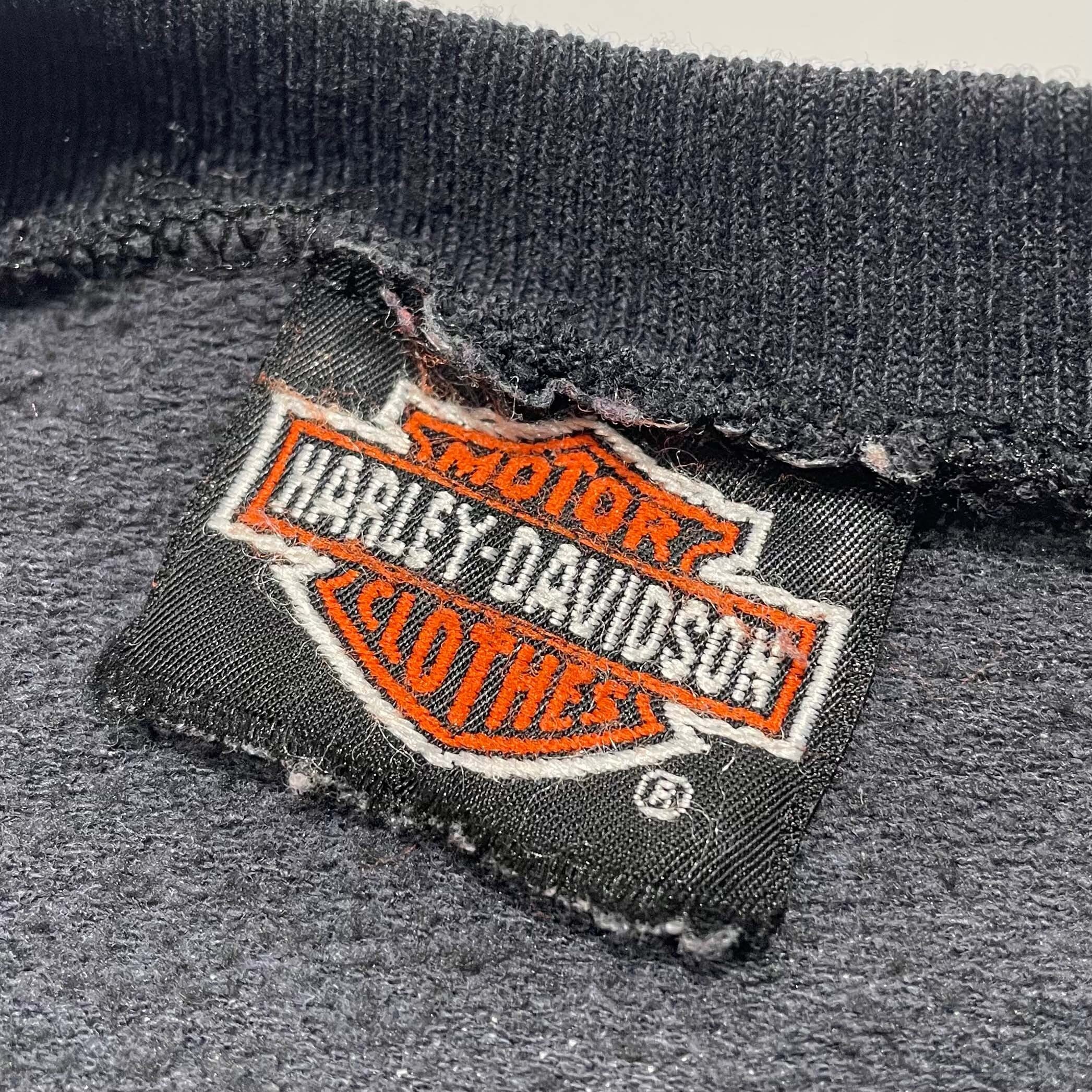 フロントにハーレーらしいグラフィックが入った、1990年コピーライト入りのヴィンテージスウェット。薄手の素材感で、ロンT感覚でレイヤードにも使いやすい一枚です。
