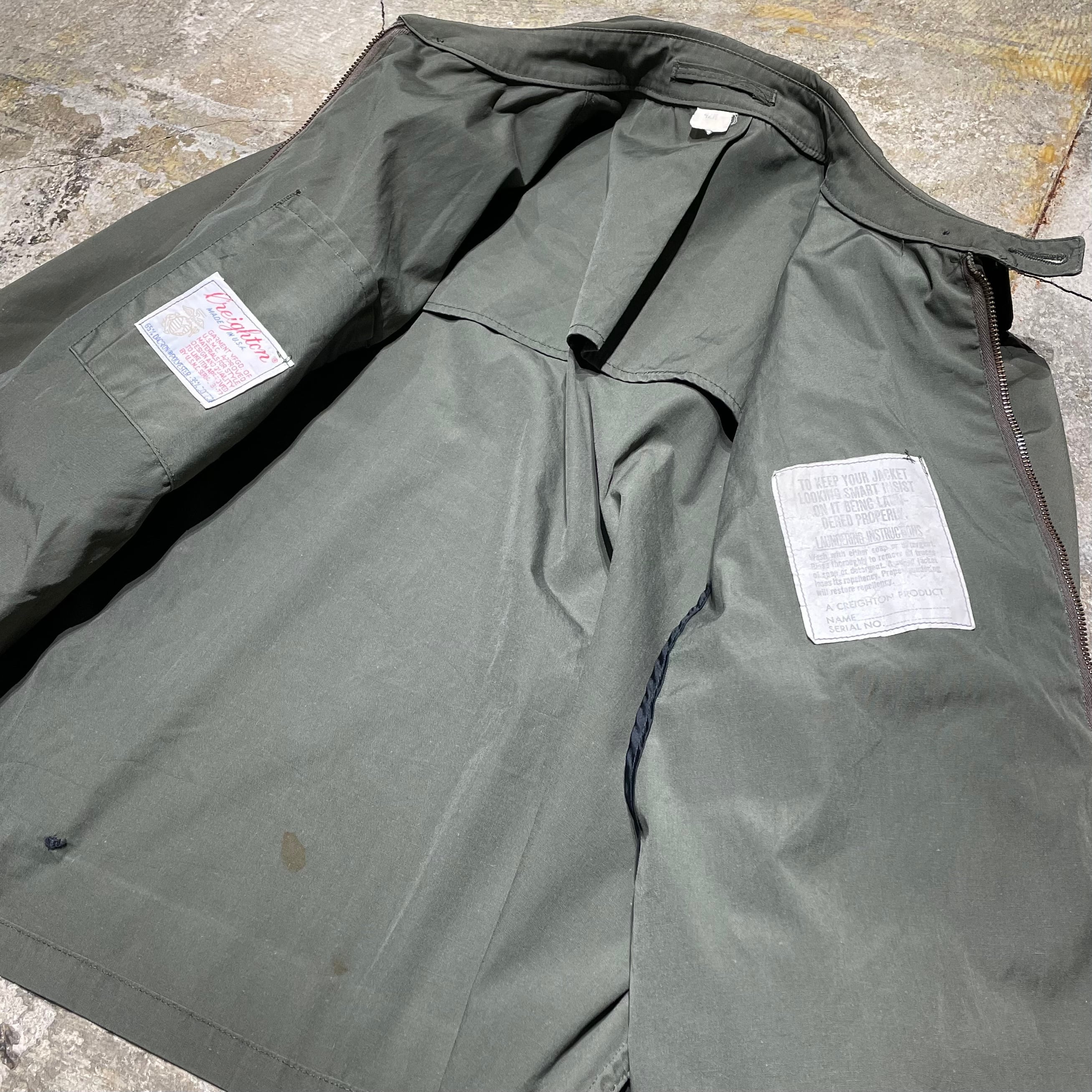 着丈がショート丈でゆったりとした身幅間でトレンドにフィットしたヴィンテージアイテムです。内側のタグもヴィンテージ感溢れるたまらない1着。ライトブルゾンとしてシンプルながら、存在感のあるアイデンティティ溢れるジャケットになっています。