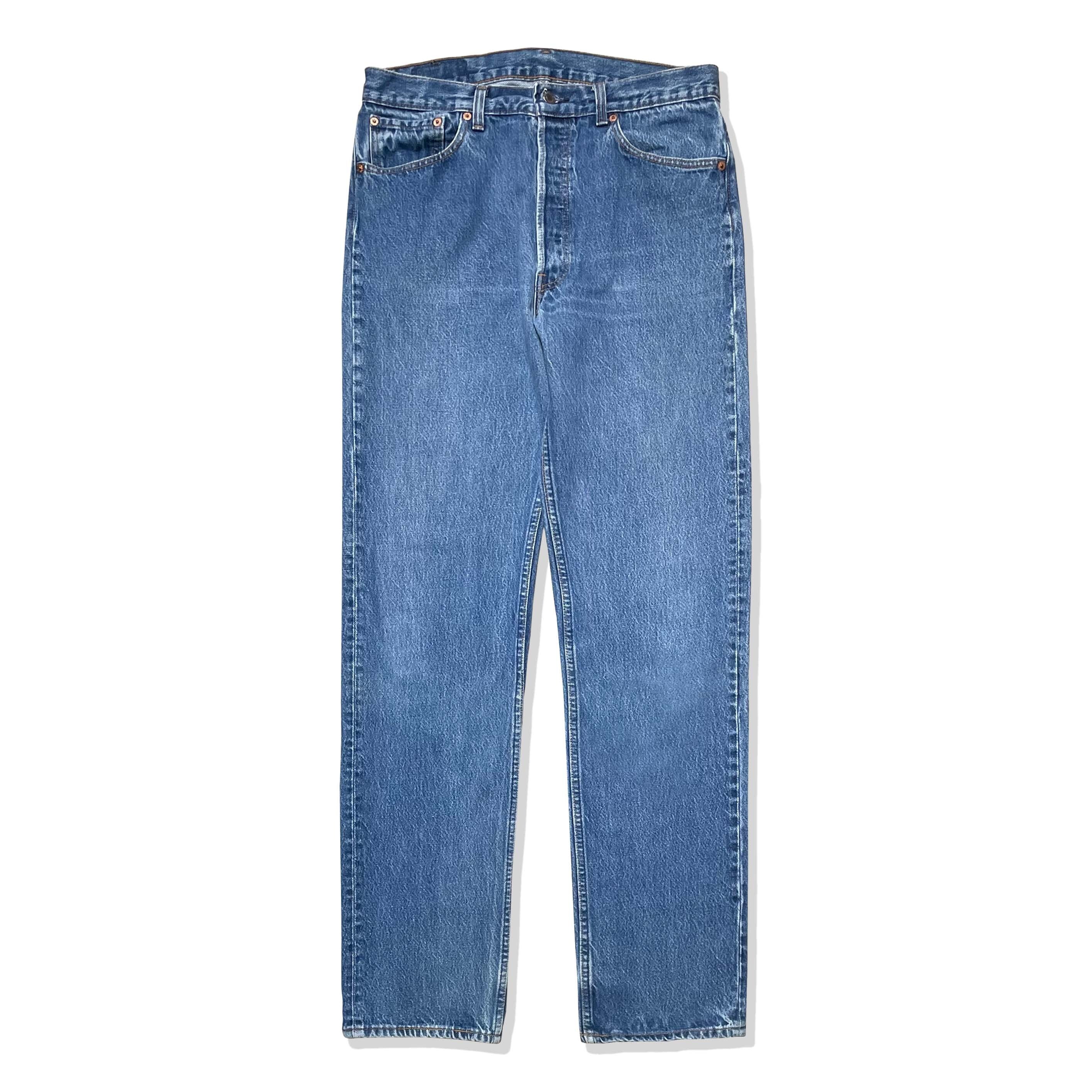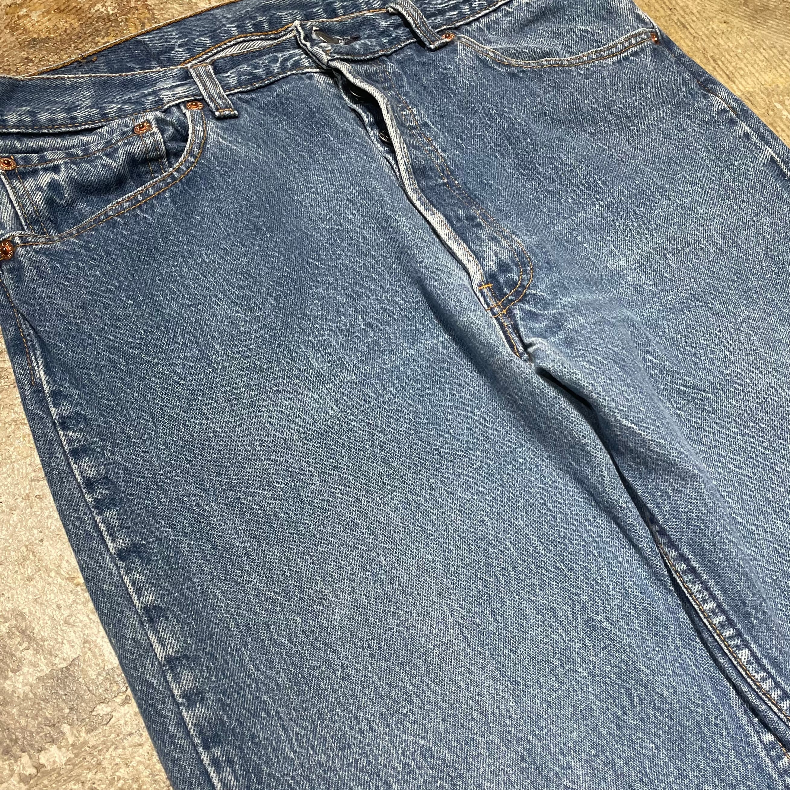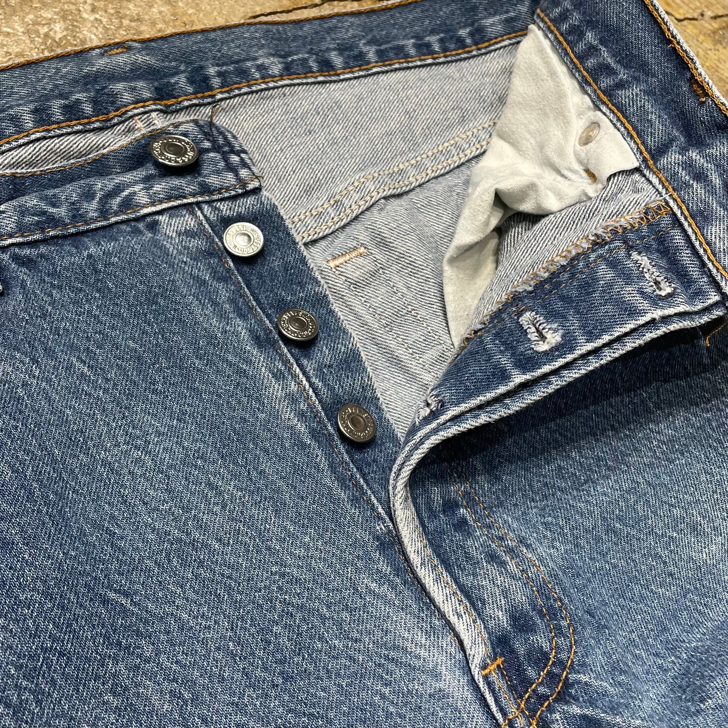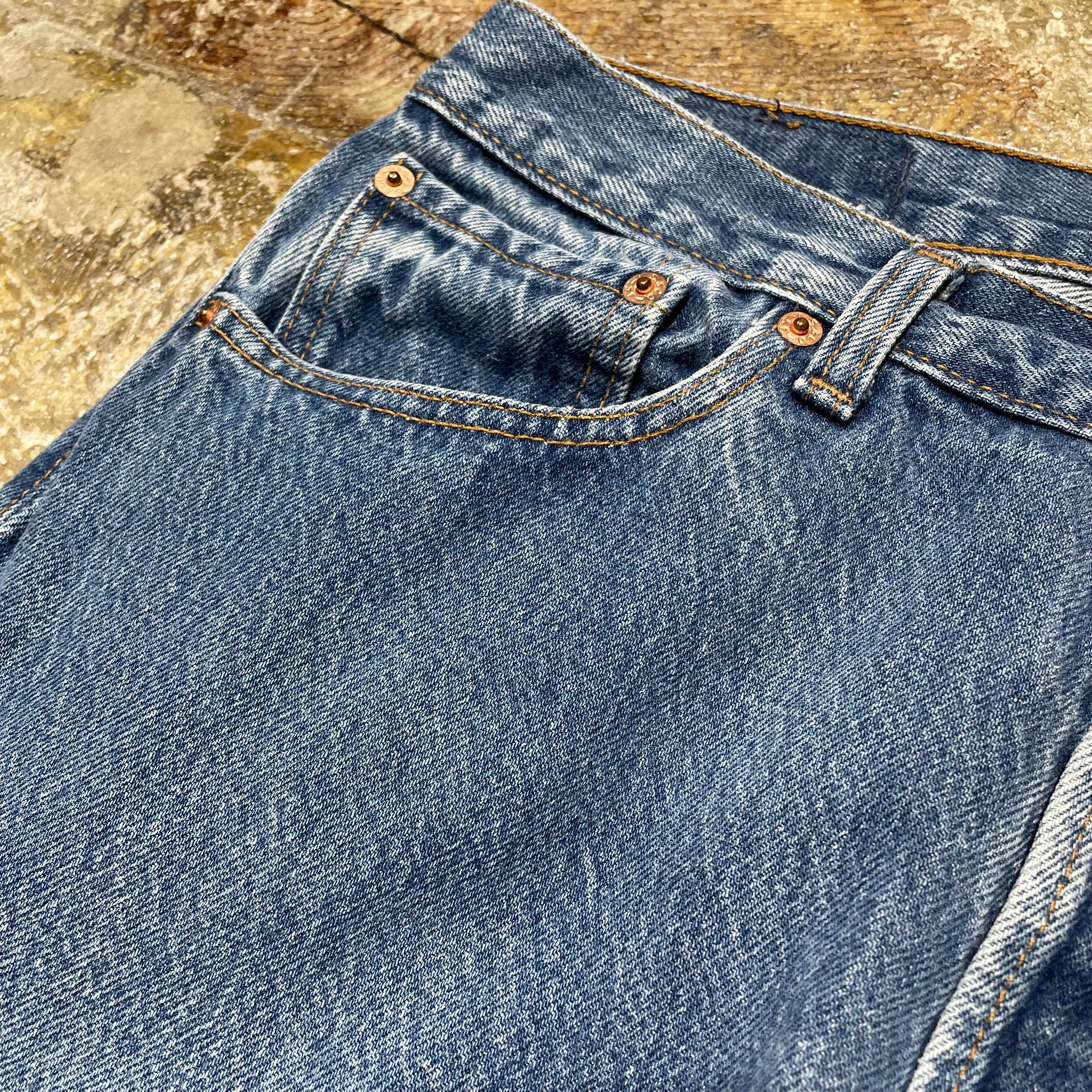 90年代アメリカ製のリーバイス501。程よく色味が残った王道のストレートシルエットで、持っていて間違いない定番デニムです。