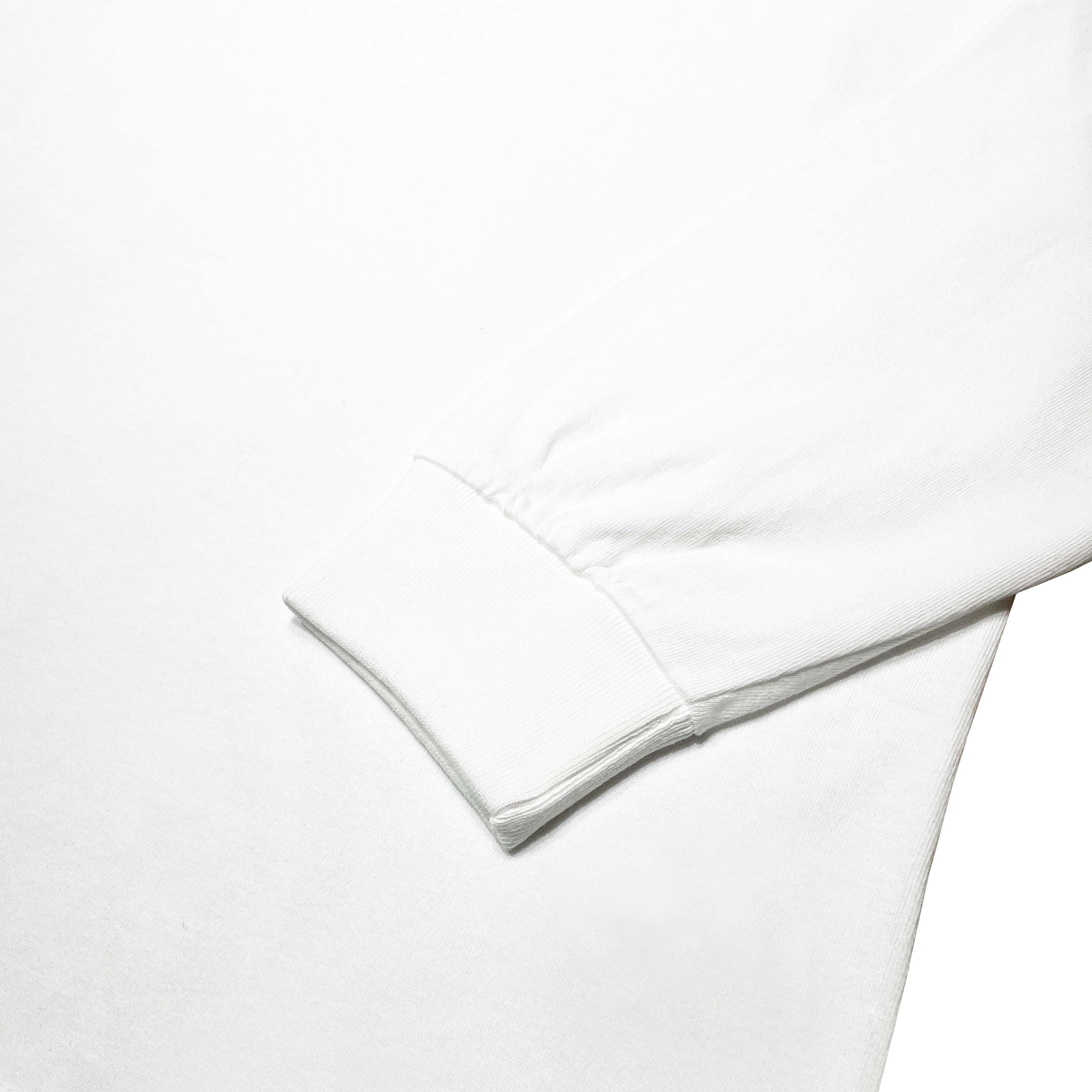 左胸にはポップでユーモアのあるグラフィックをプリント。右袖には「don’t underestimate me.」のメッセージを配し、フロントロゴとの意味合いを遊び心あるデザインに落とし込んだ1着です。フロントは3版、袖は1版のシルクスクリーンで表現。プリントの重なりがもたらす深みも魅力のひとつ。