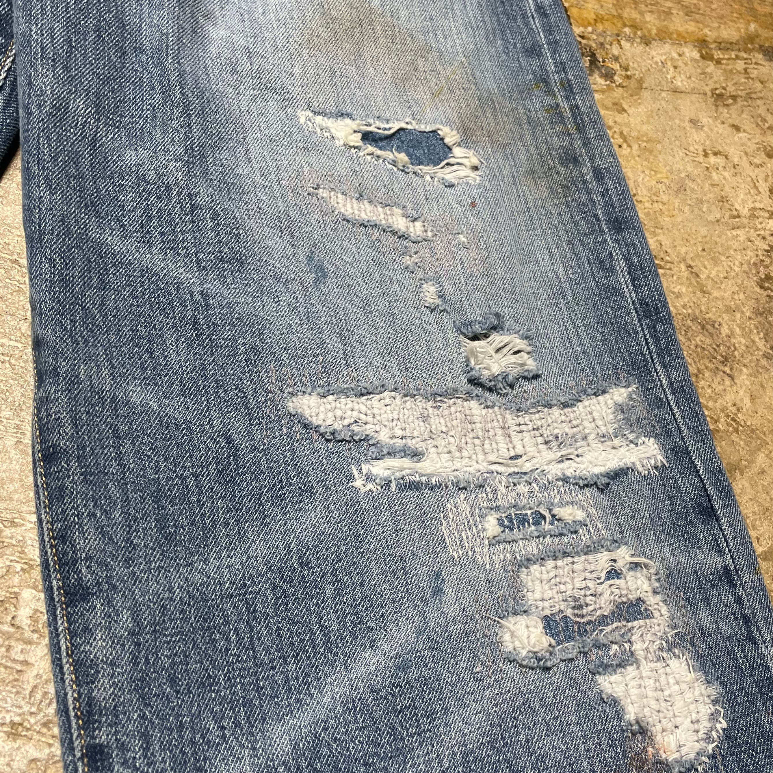 太めのシルエットに、リアルなダメージ加工が施された一本。