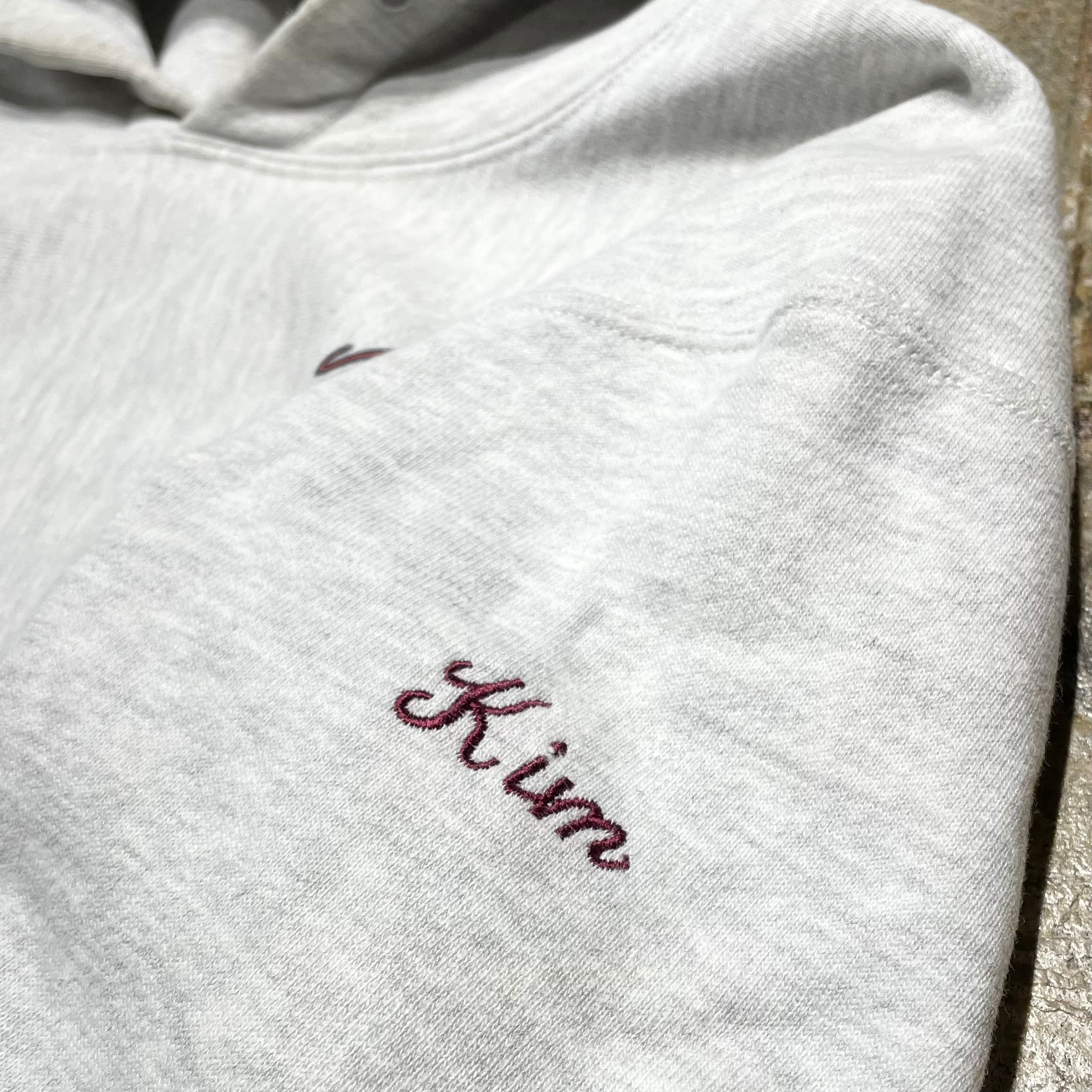 2000s Champion Reverse Weave Hoodie featuring the iconic heavyweight fabric and unique Reverse Weave silhouette. Made in Mexico with a slightly shorter length for a trendy, contemporary vibe. The chest bears an SC Crow print, and the left sleeve features a name, adding a cultural and unique touch. Its uncommon proportions make it a playful and stylish addition to any outfit.