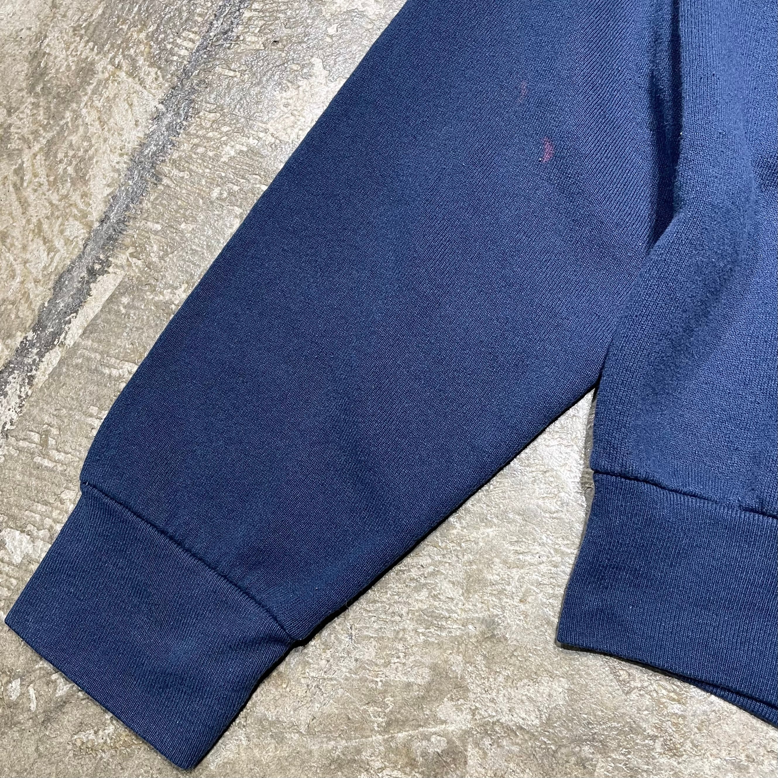 making it both nostalgic and effortlessly stylish.With its well-balanced relaxed silhouette and medium-weight fabric,it’s easy to wear as both an outer or inner layer.The faded navy body adds a vintage touch and lived-in charm.A classic piece that blends culture and comfort in true vintage fashion