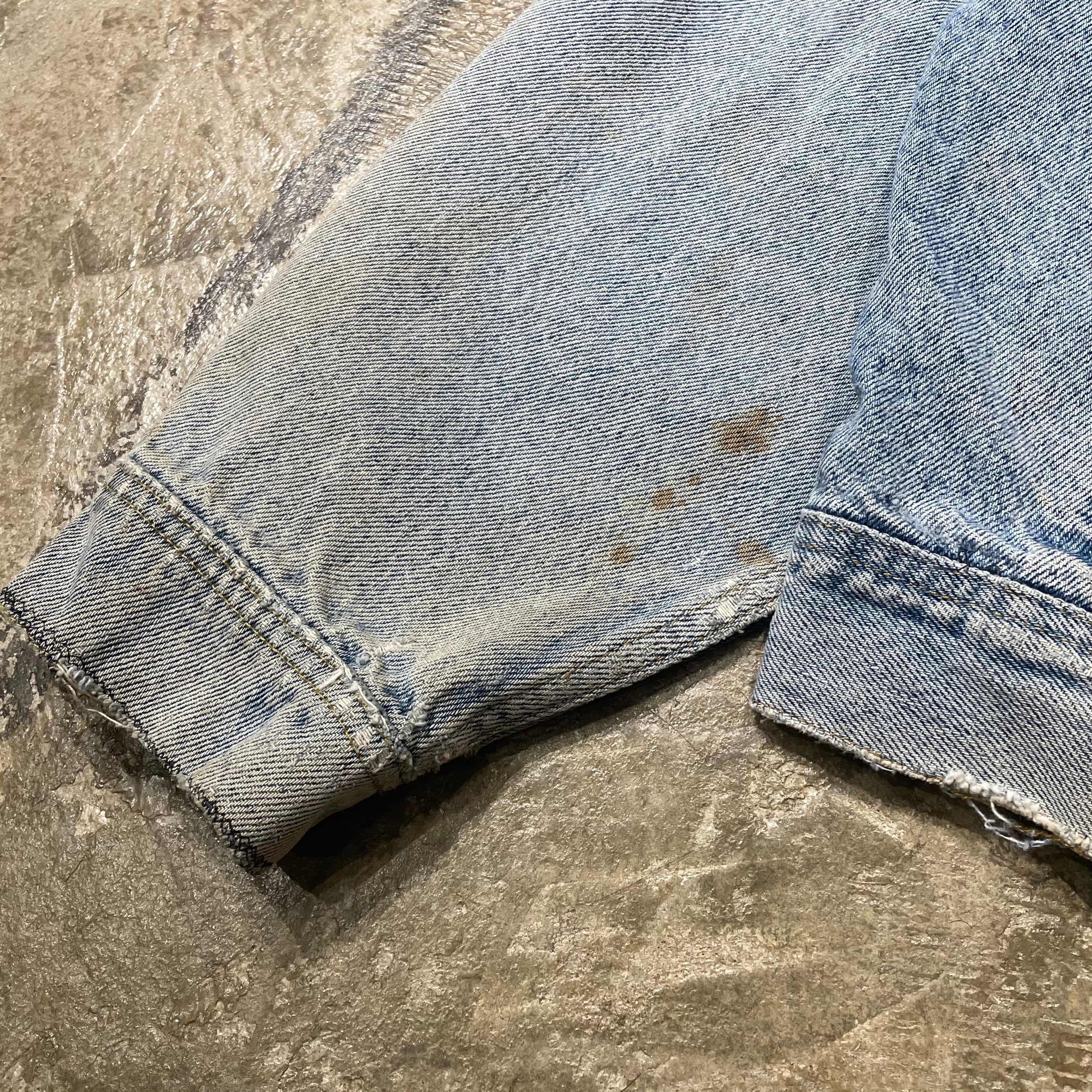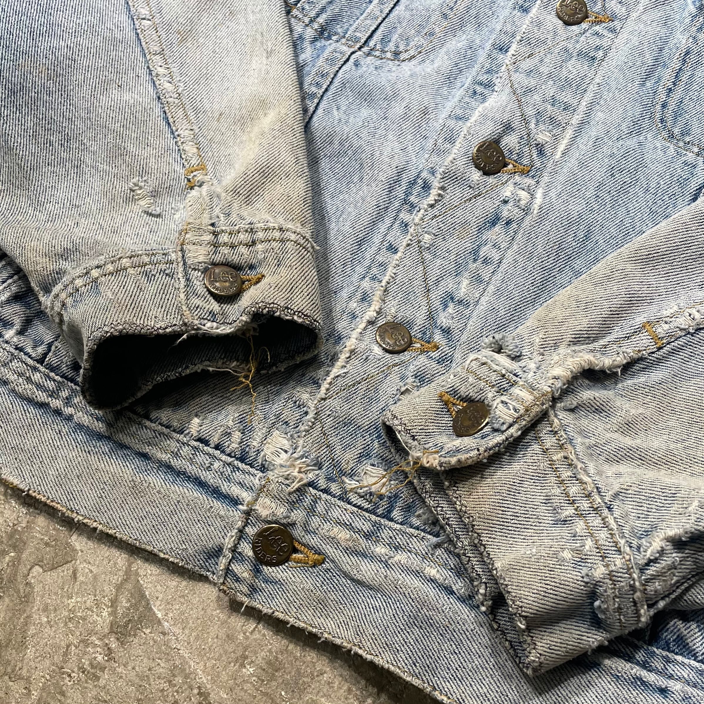 Leeの中でも定番として長く愛されてきた名モデルで、クラシックなシルエットが魅力の一着です。今回は“ボロ”の表情が抜群で、着るだけで深い雰囲気が出るスペシャルピース。サイズも大きめのため、アウターとしてしっかり主役で使えます。経年によるナチュラルなダメージがアートのようにまとまった、唯一無二のデニムジャケットです。