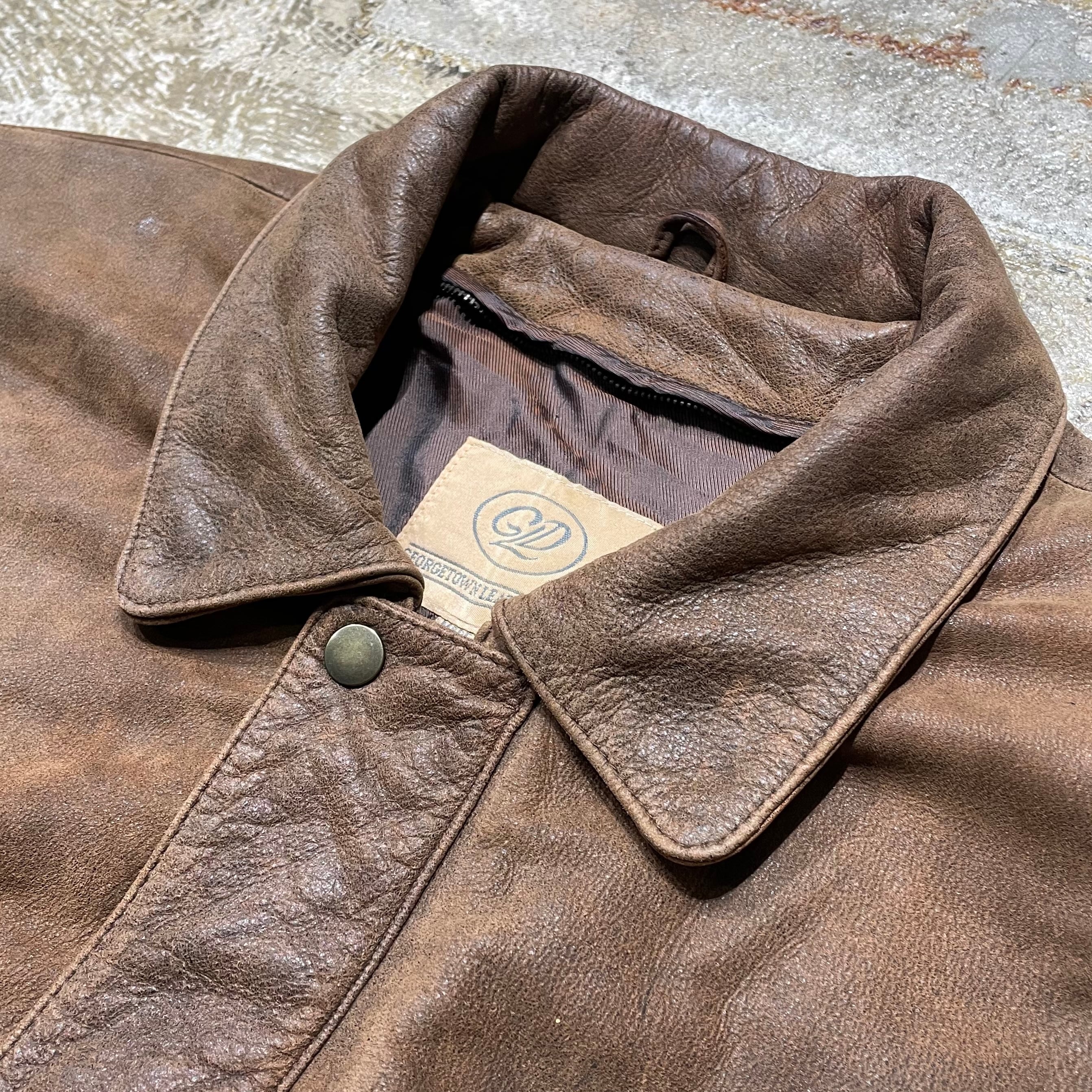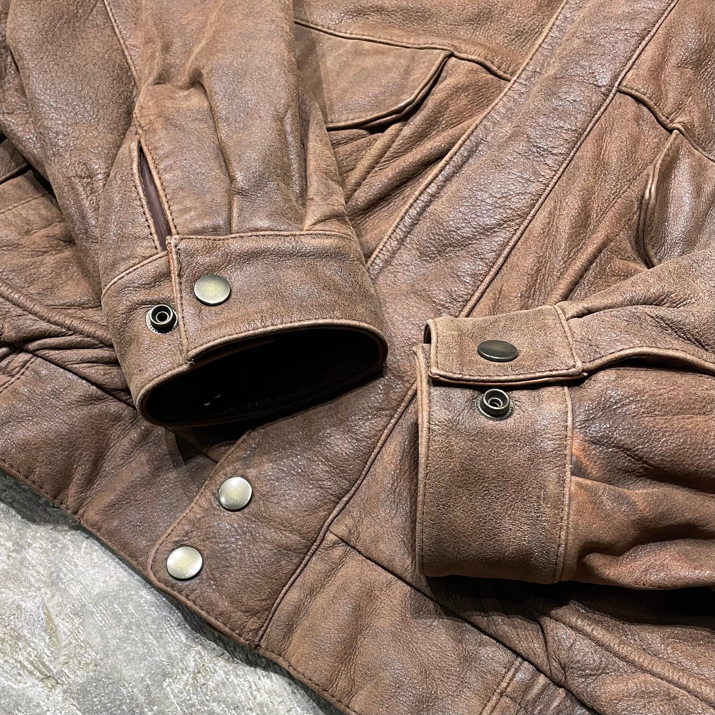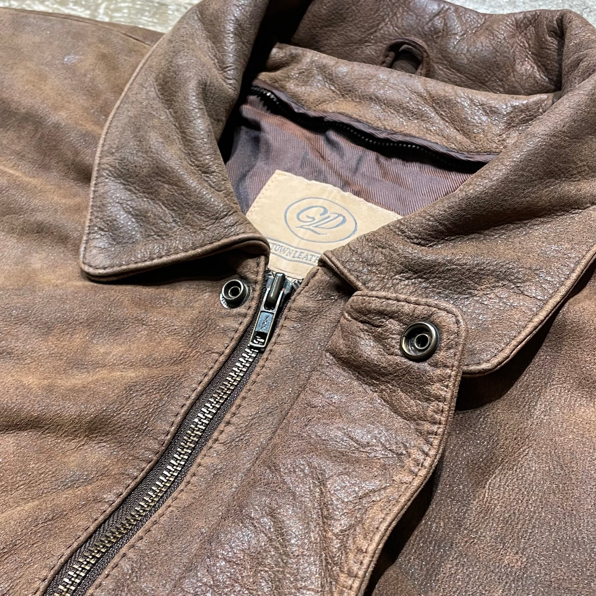 しなやかなレザーに古着特有のやれ感がほどよく馴染み、雰囲気のある一着に仕上がっています。ゆったりめのインナーの上からも羽織りやすく、冬場にも重宝する万能アウターです