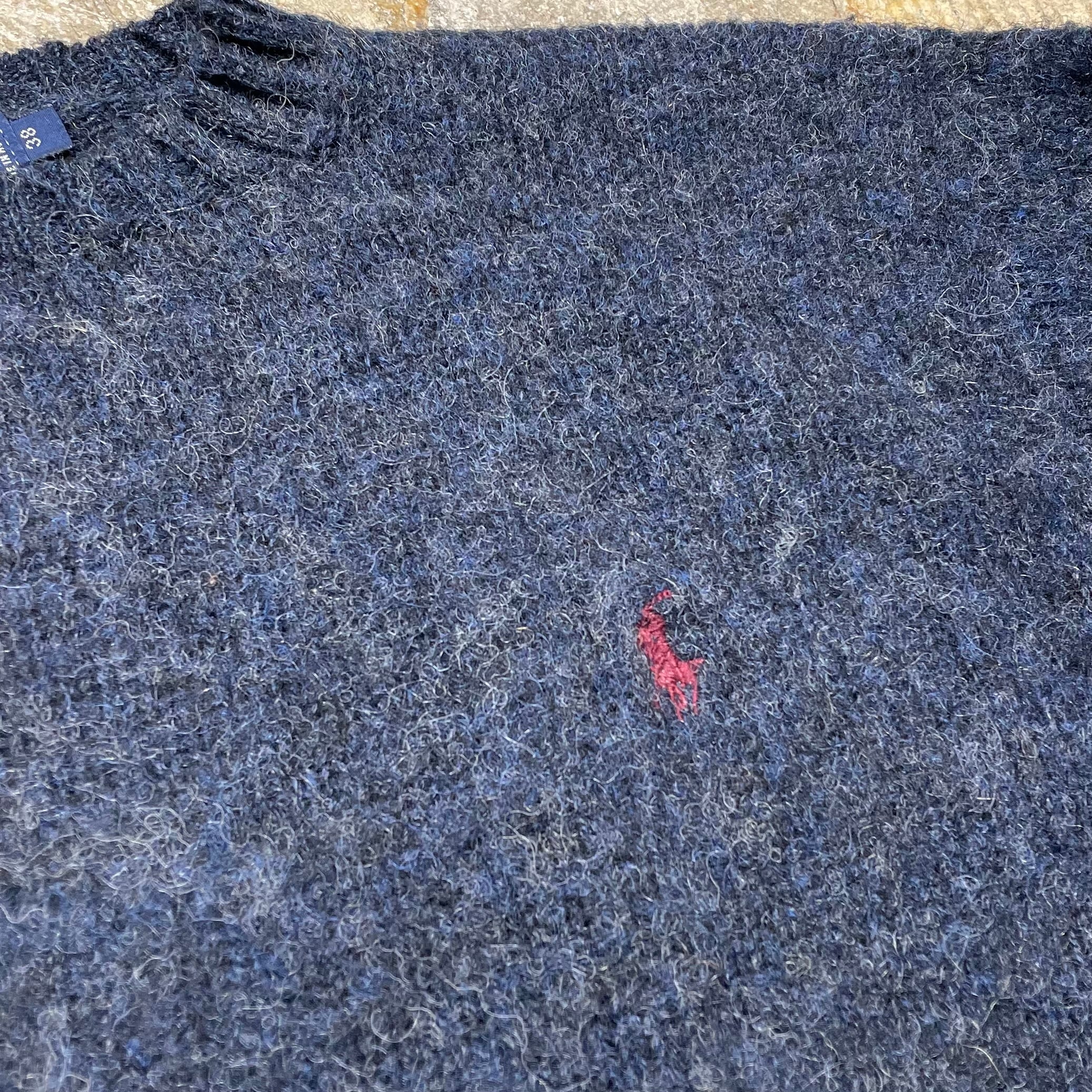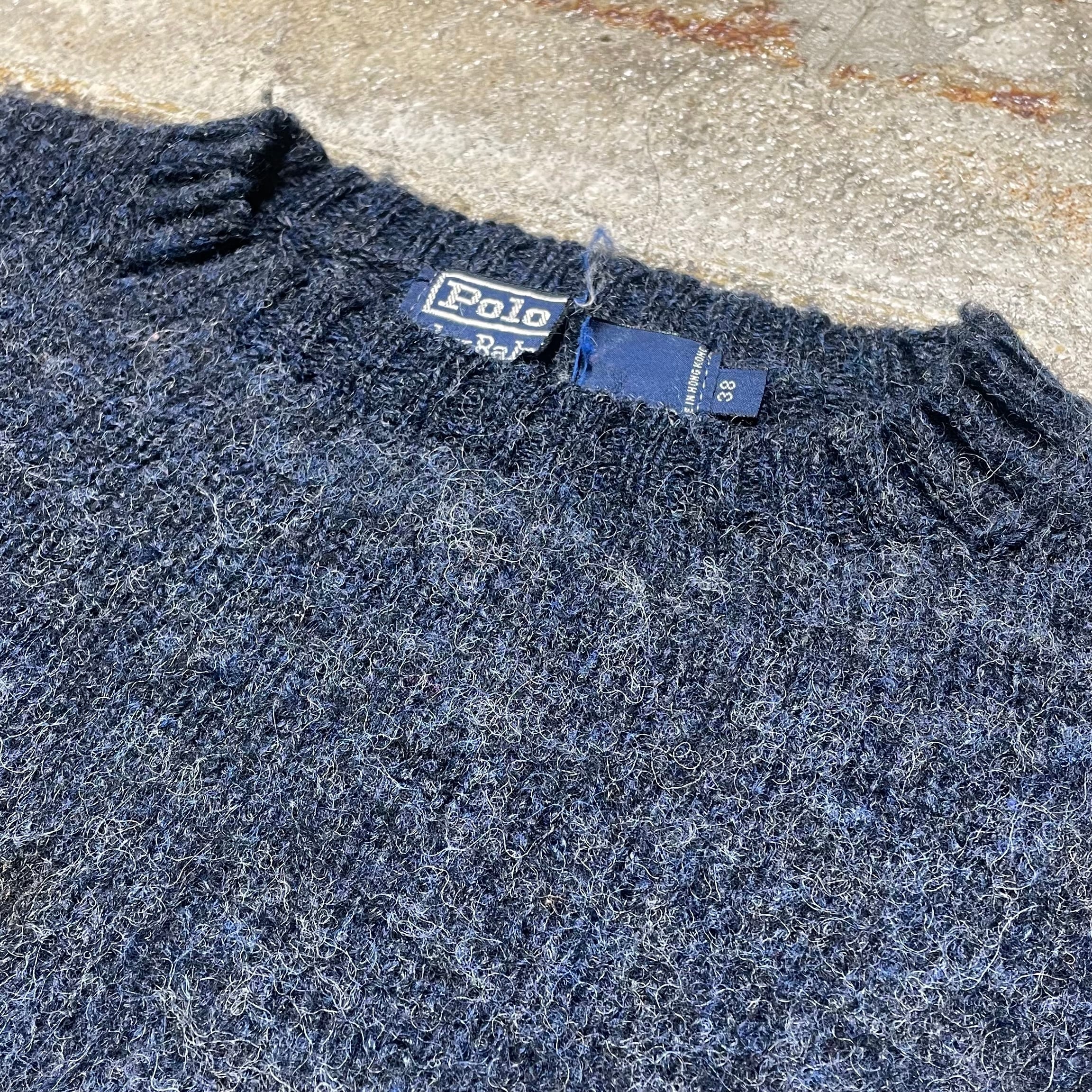 90年代のPolo Ralph Lauren(ポロ ラルフローレン)のウールセーター。毛足の長いブラックとネイビーを撚り合わせたメランジウールを使用しており、上質さがしっかりと感じられる一着です。