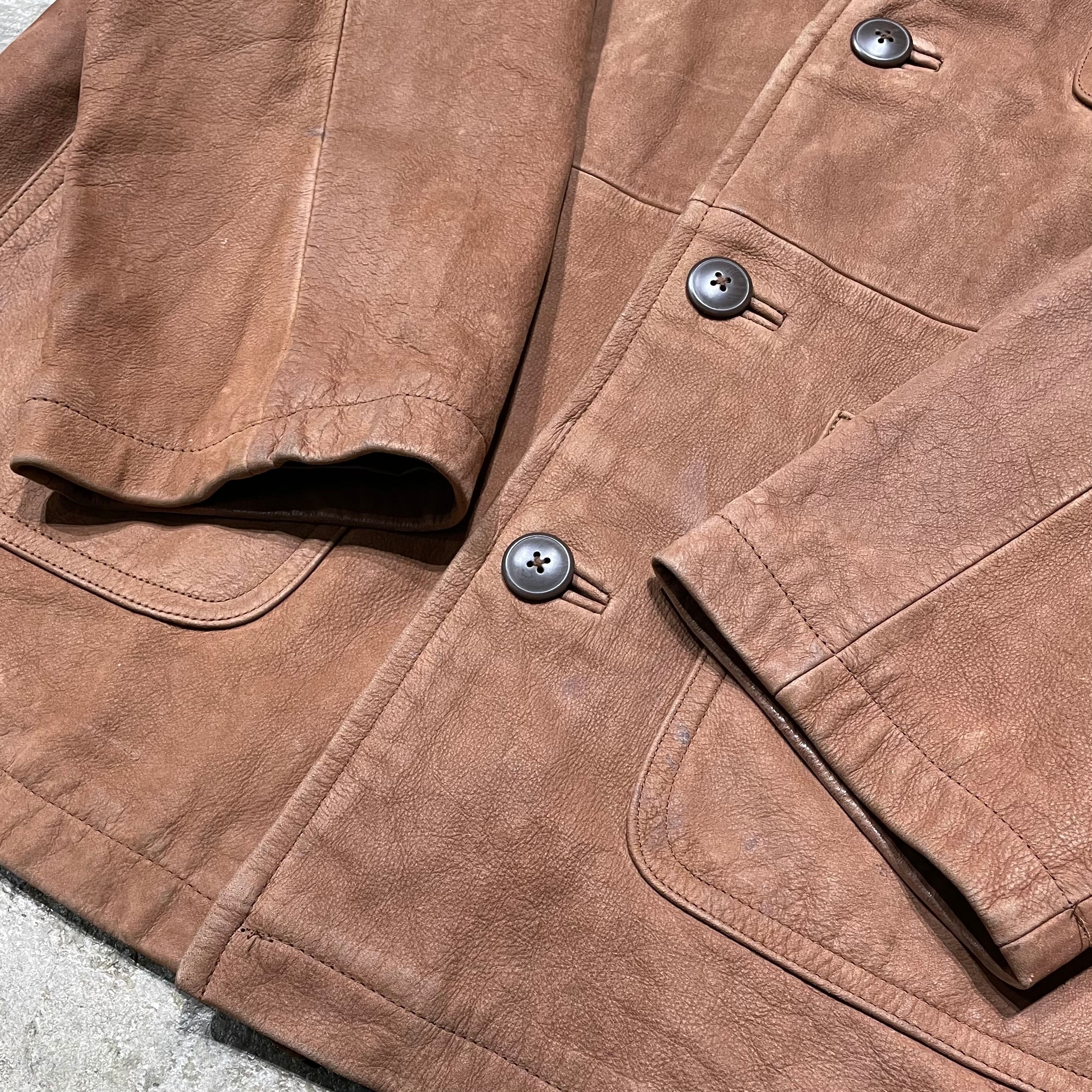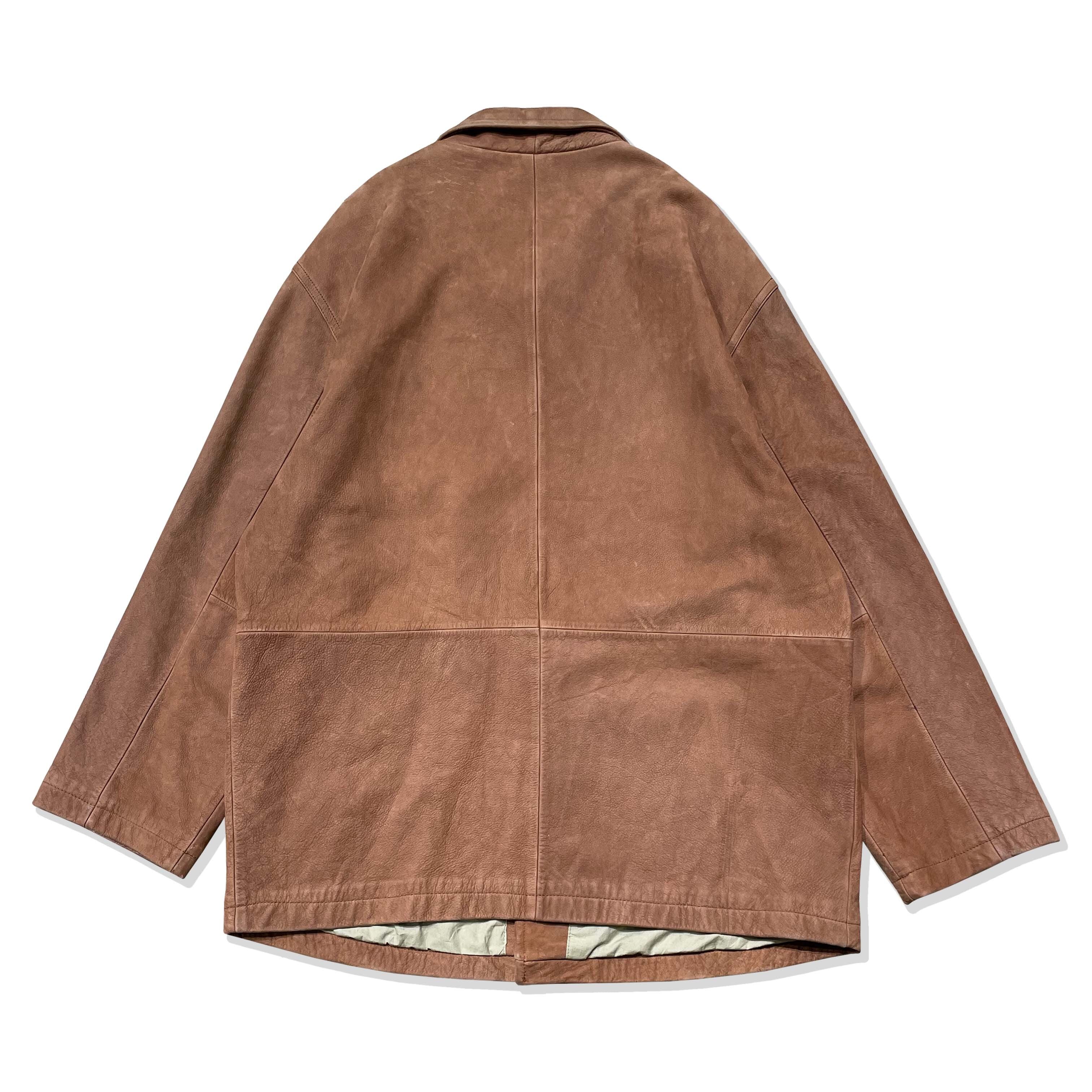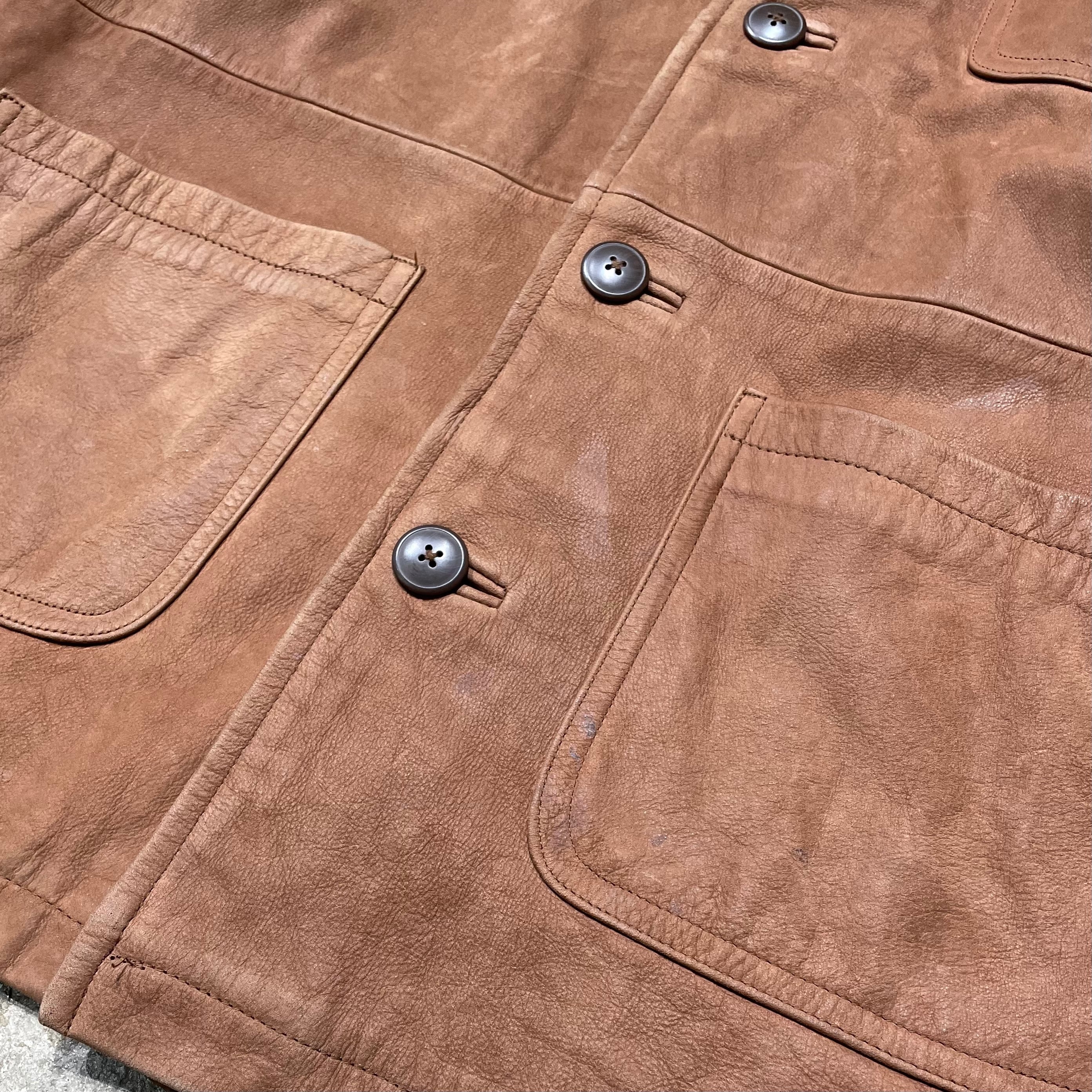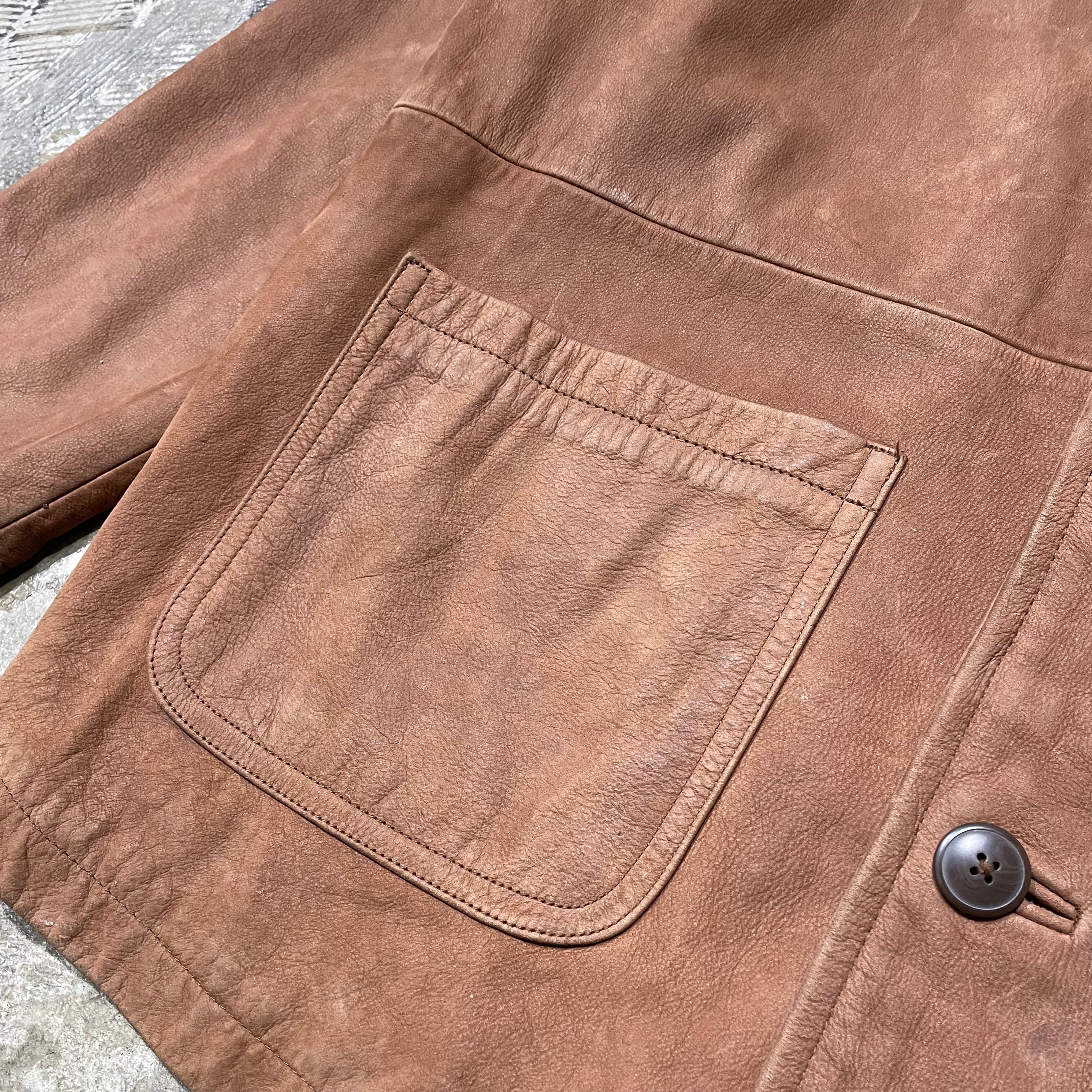 しなやかで上品なレザーを使用したカーコート。カバーオールのようにパッチポケットがついた親しみやすいデザイン。柔らかく肌触りの良い高級レザーを使用しています。明るめのブラウンカラーが特徴的で、触れていただくとその質感の良さを実感できる一着。長く愛用できる、雰囲気のあるアイテムです。