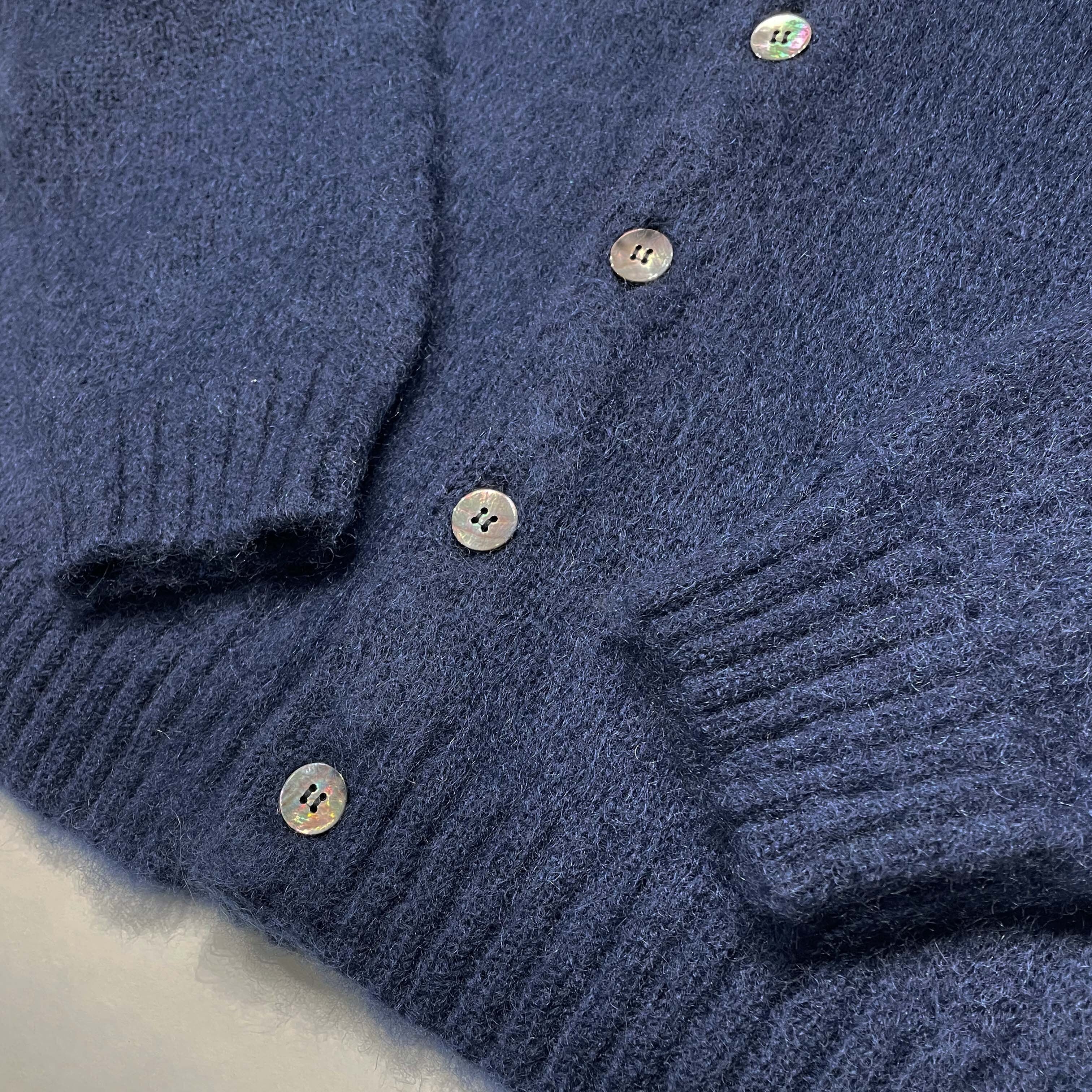 上質な キッドモヘア を使った、今年のBenjamin Authentic Clubのカーディガン。長い毛足の表情、軽さ、光沢で素材の良さがそのまま伝わる一枚です。