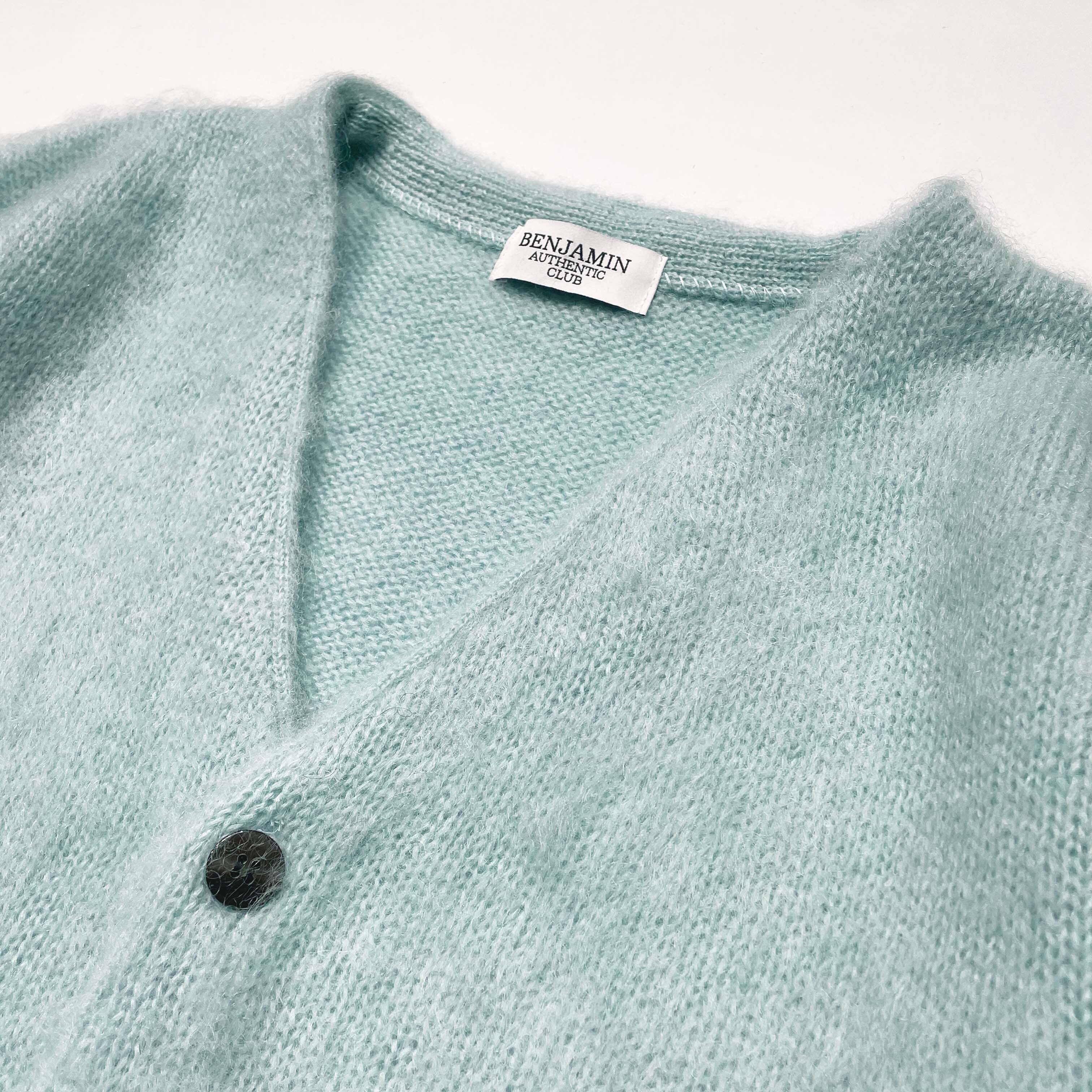 上質な キッドモヘア を使った、今年のBenjamin Authentic Clubのカーディガン。長い毛足の表情、軽さ、光沢で素材の良さがそのまま伝わる一枚です。