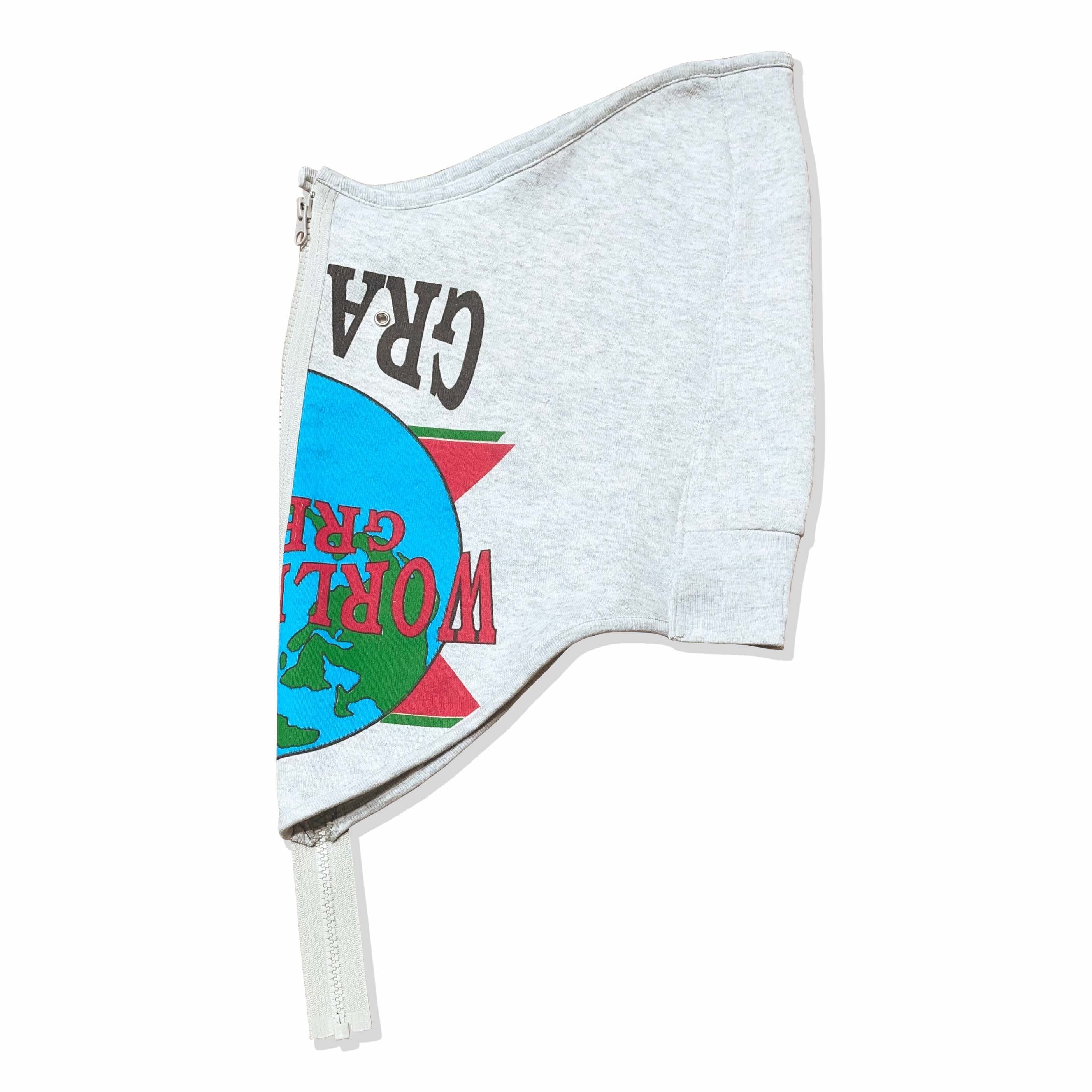 90年代の起毛スウェットを解体し、フェイスガードへと再構築したアイテム。
