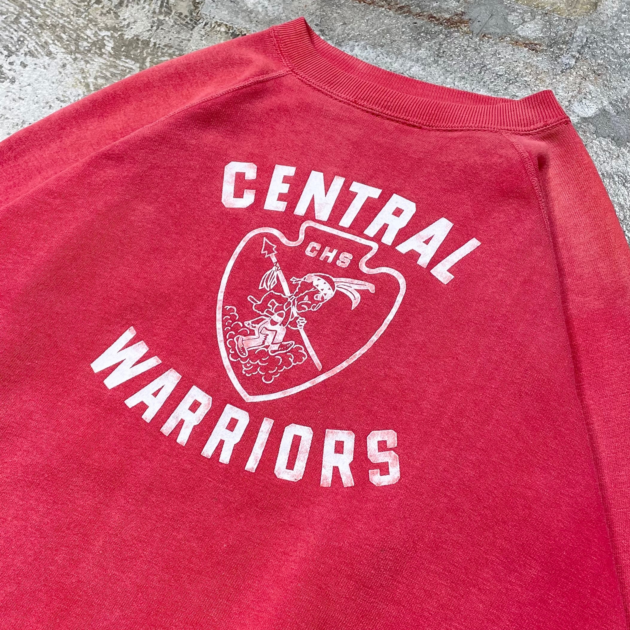 フロントにはCENTRAL WARRIORSのプリント。カレッジ、もしくはスクールスポーツ由来と思われるグラフィックで、60年代らしい素朴さと力強さが同居した、雰囲気のあるデザインです。