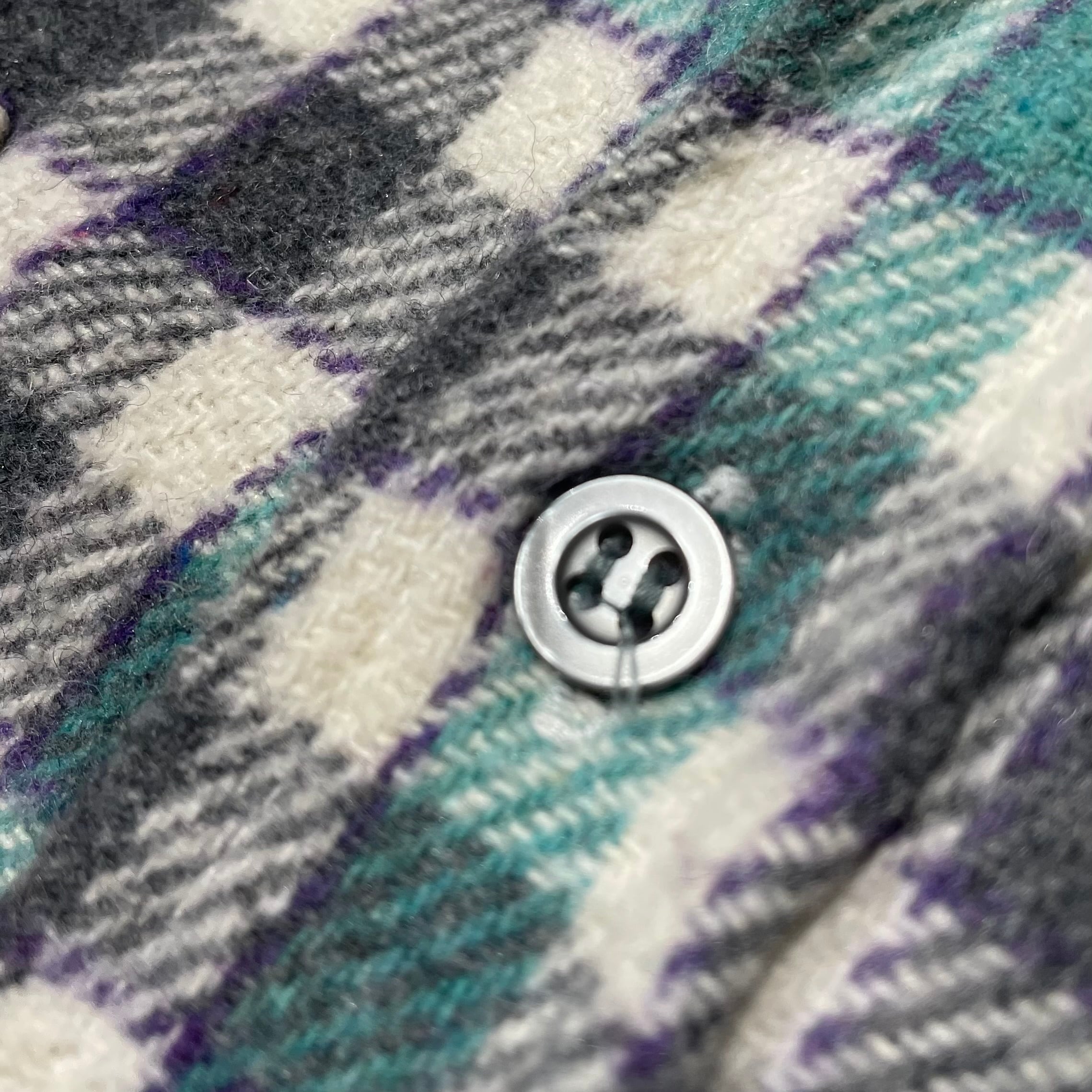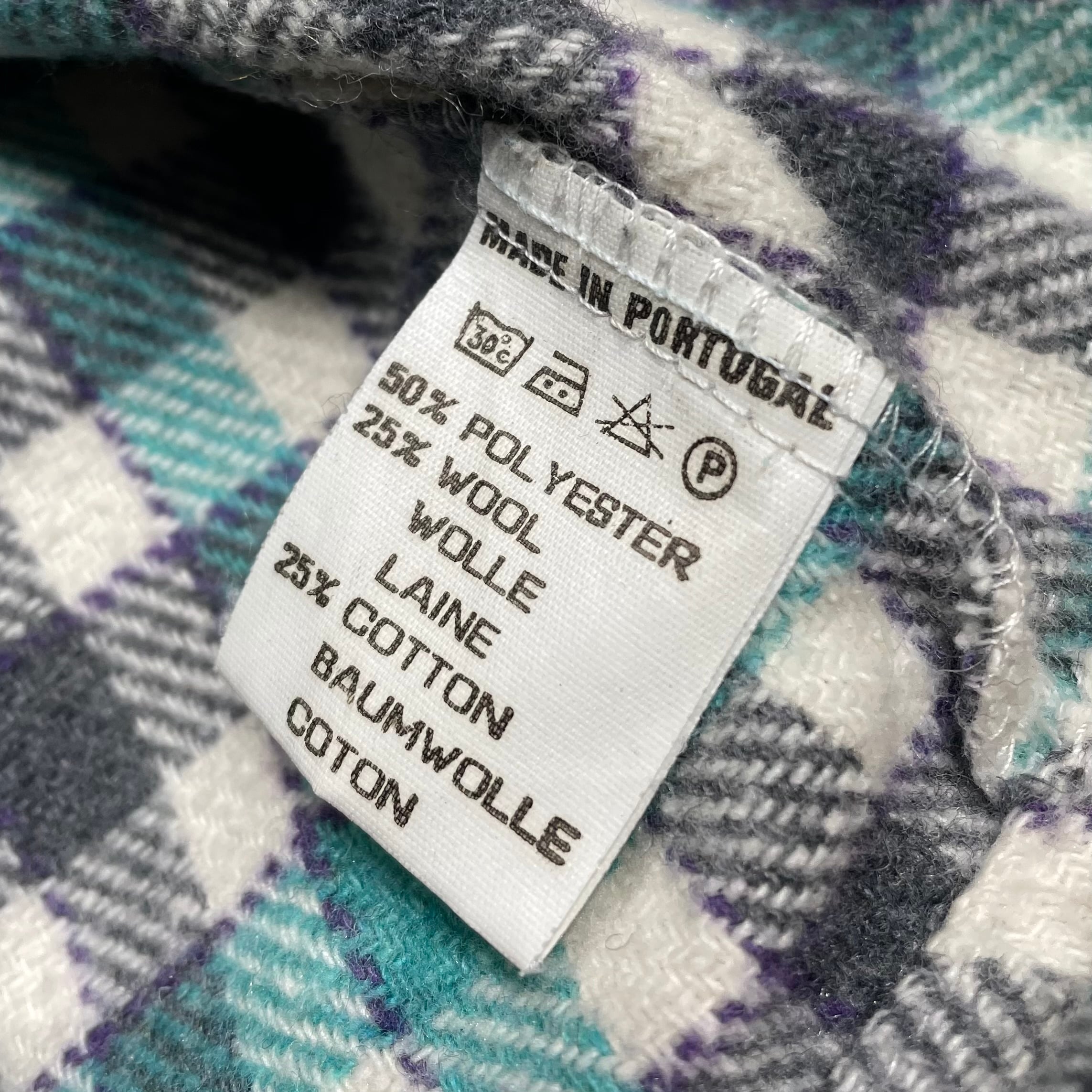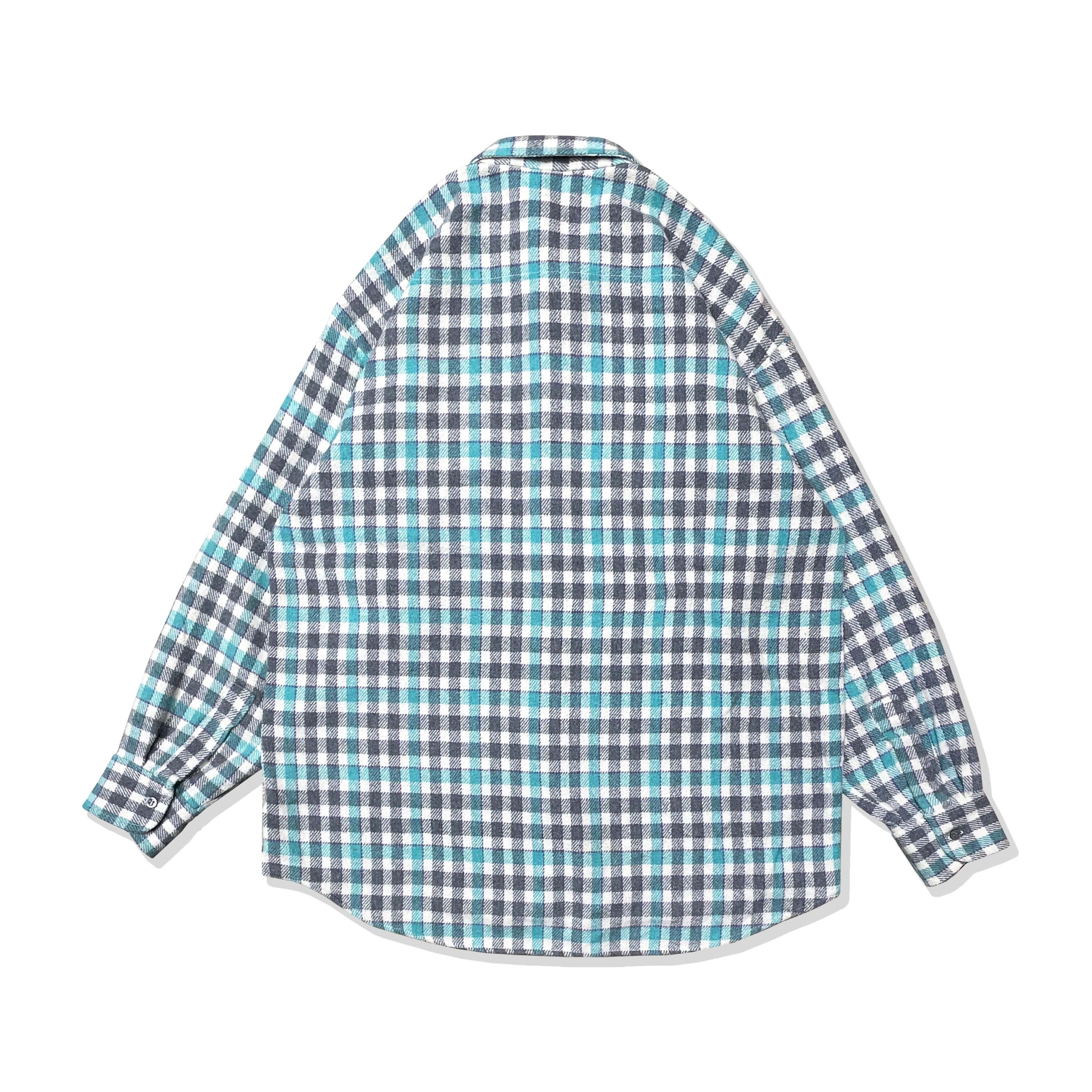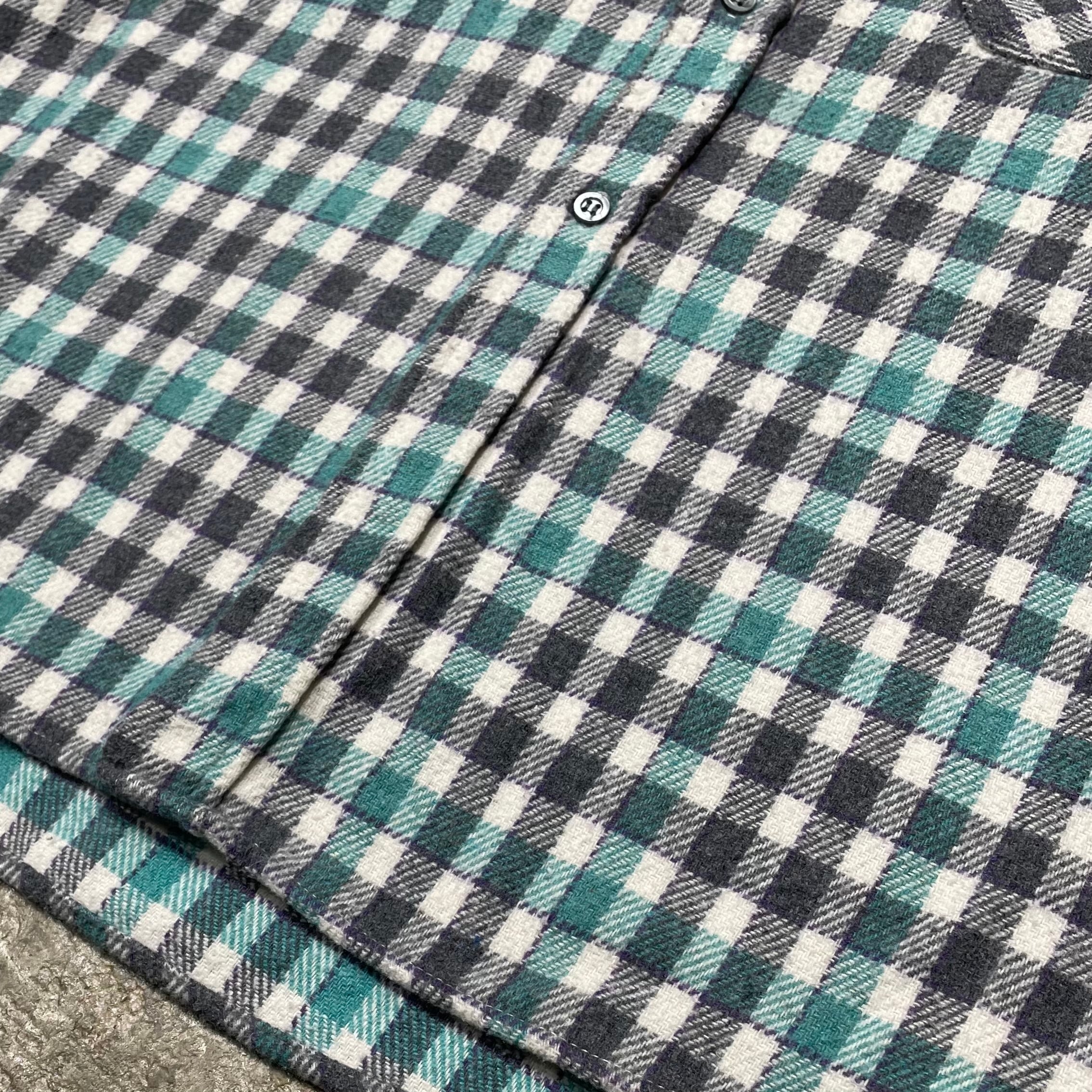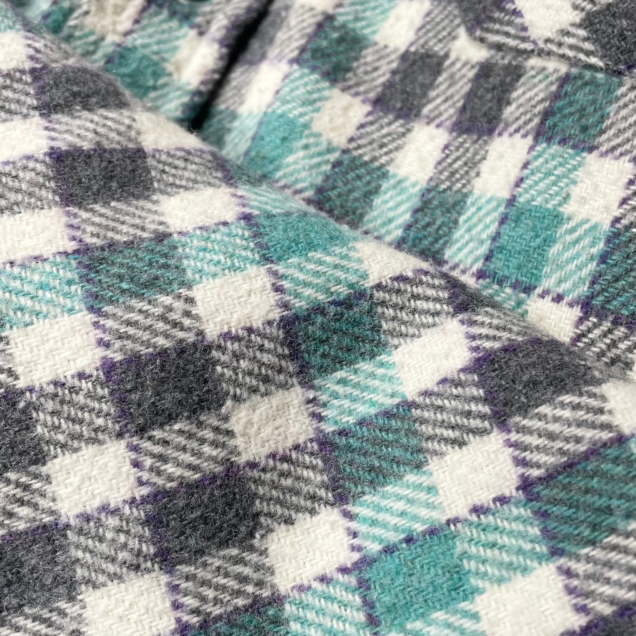 水色をベースにした絶妙な配色のチェック柄が印象的な1着です。