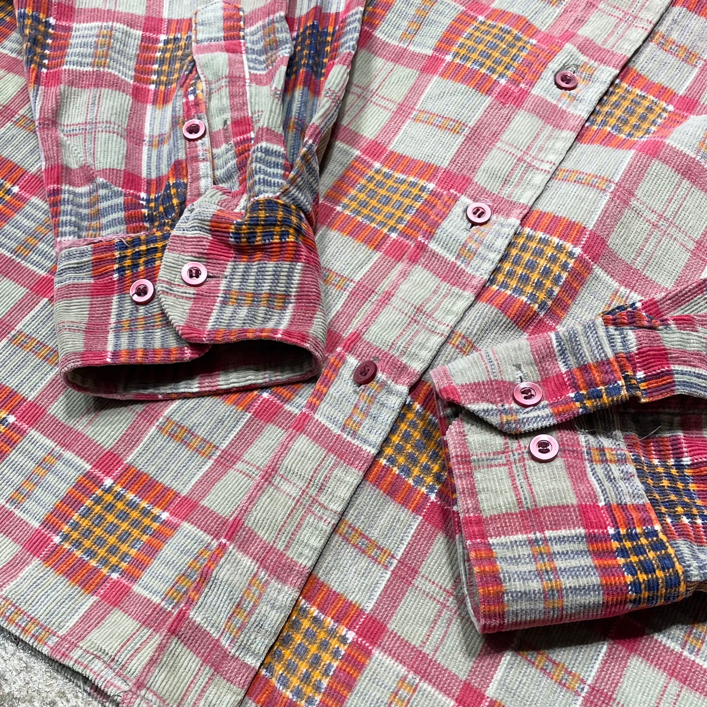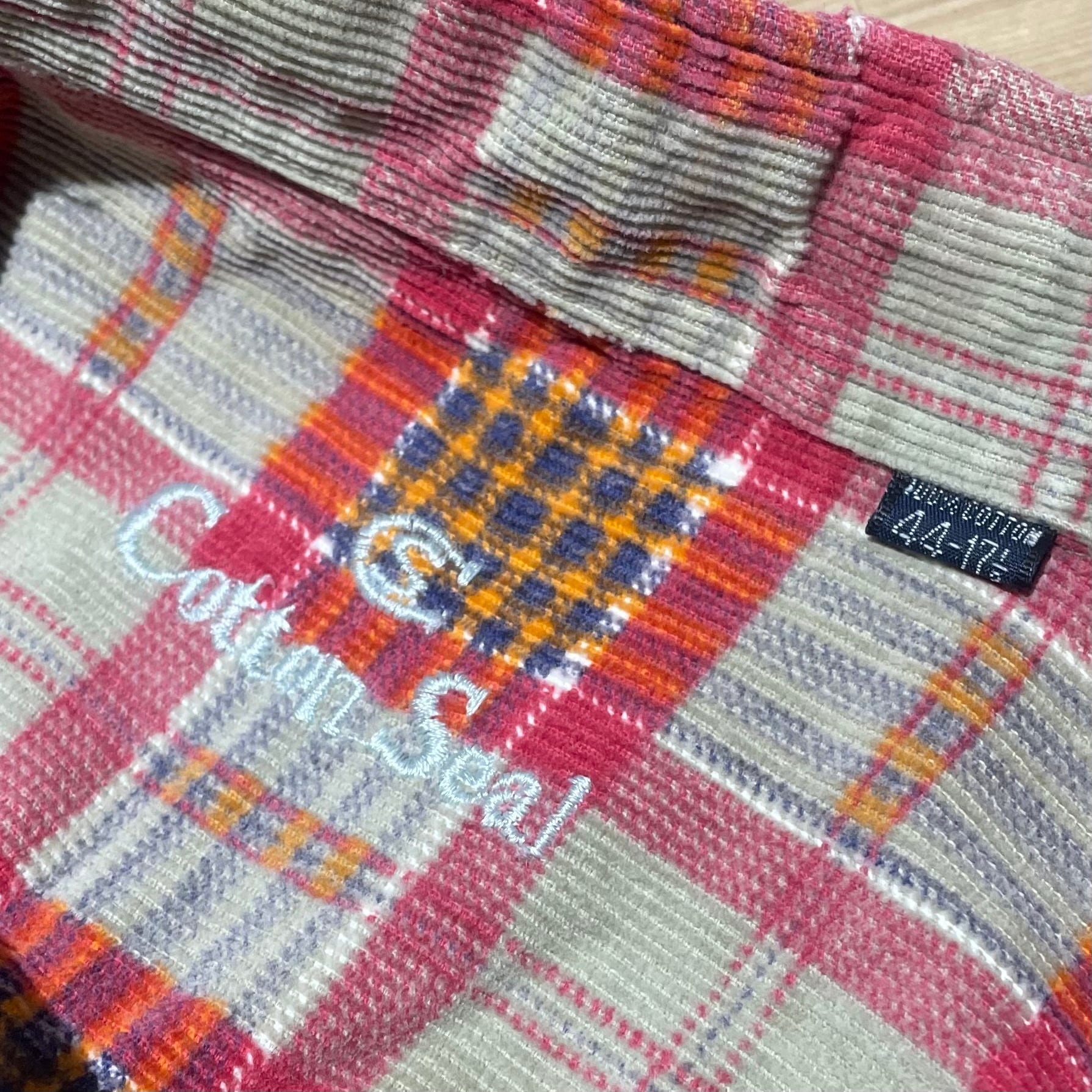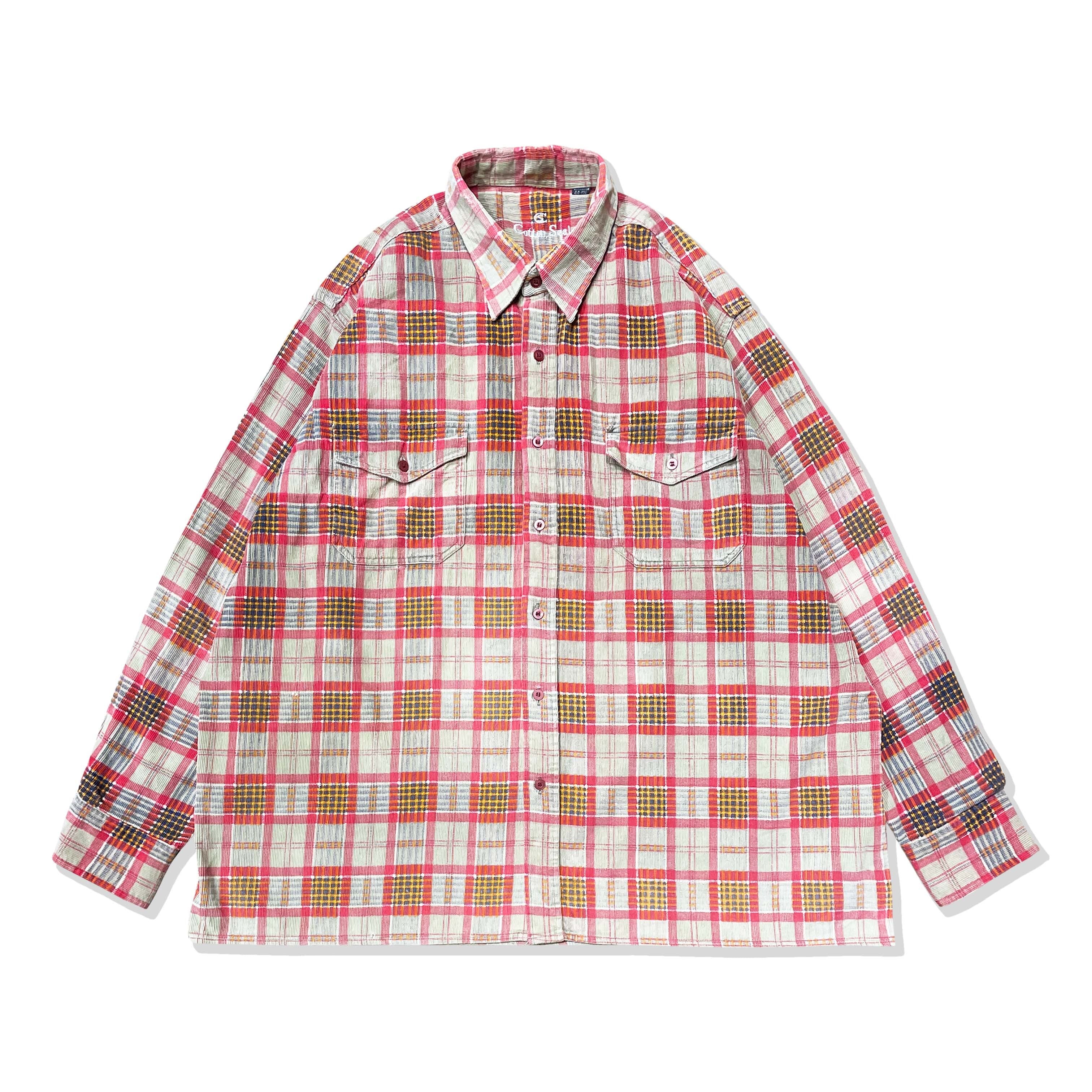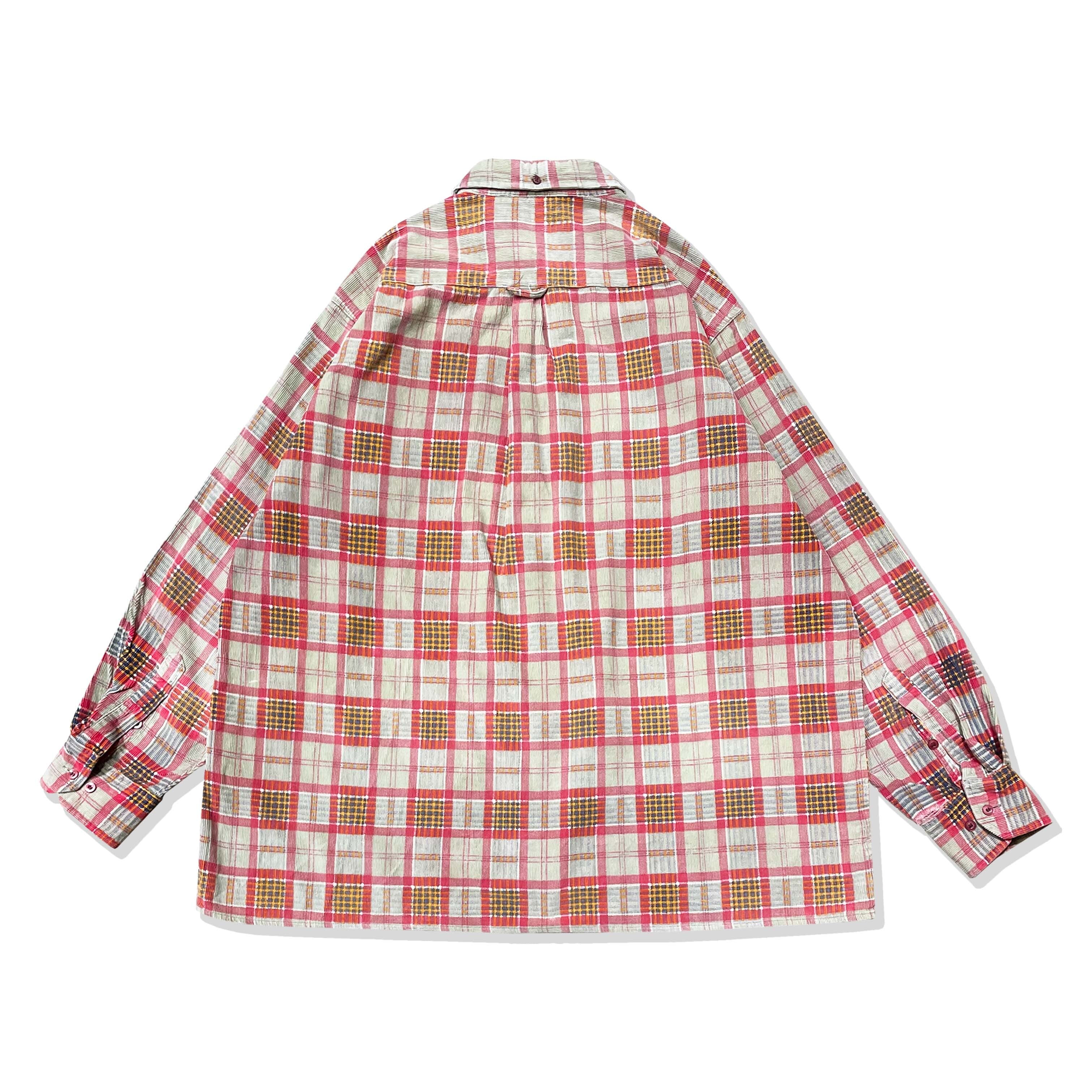 コットンコーデュロイ素材に、チェック柄をプリントした個性のある1着。