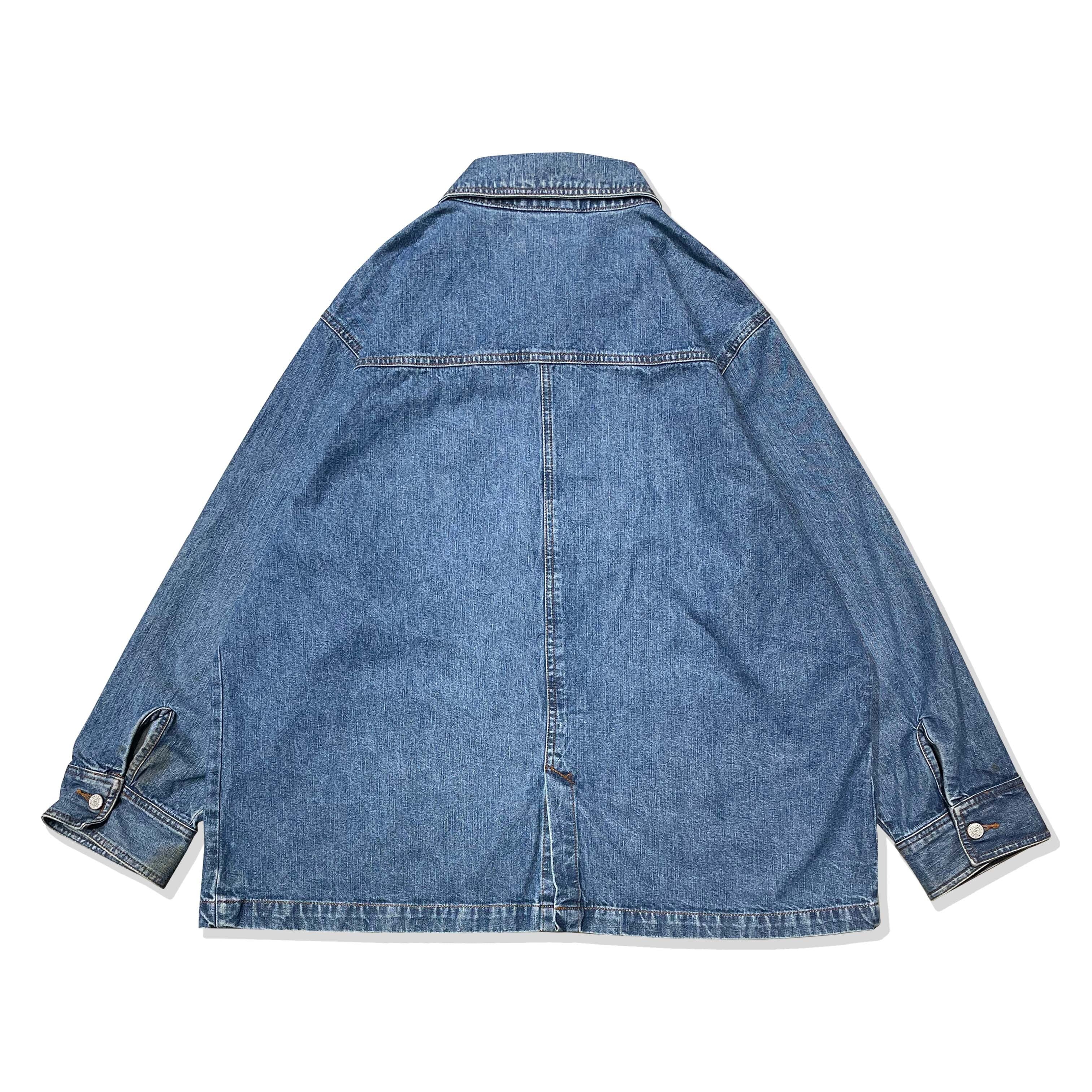 胸元にはフラップ付きポケット、裾にはベンツ(スリット)を配置した、ややモダンなデザイン。この胸フラップは、どこかLevi’s 1stタイプのデニムジャケットを彷彿とさせ、ワークとデニムのカルチャーが自然に混ざり合ったバランスが魅力です。