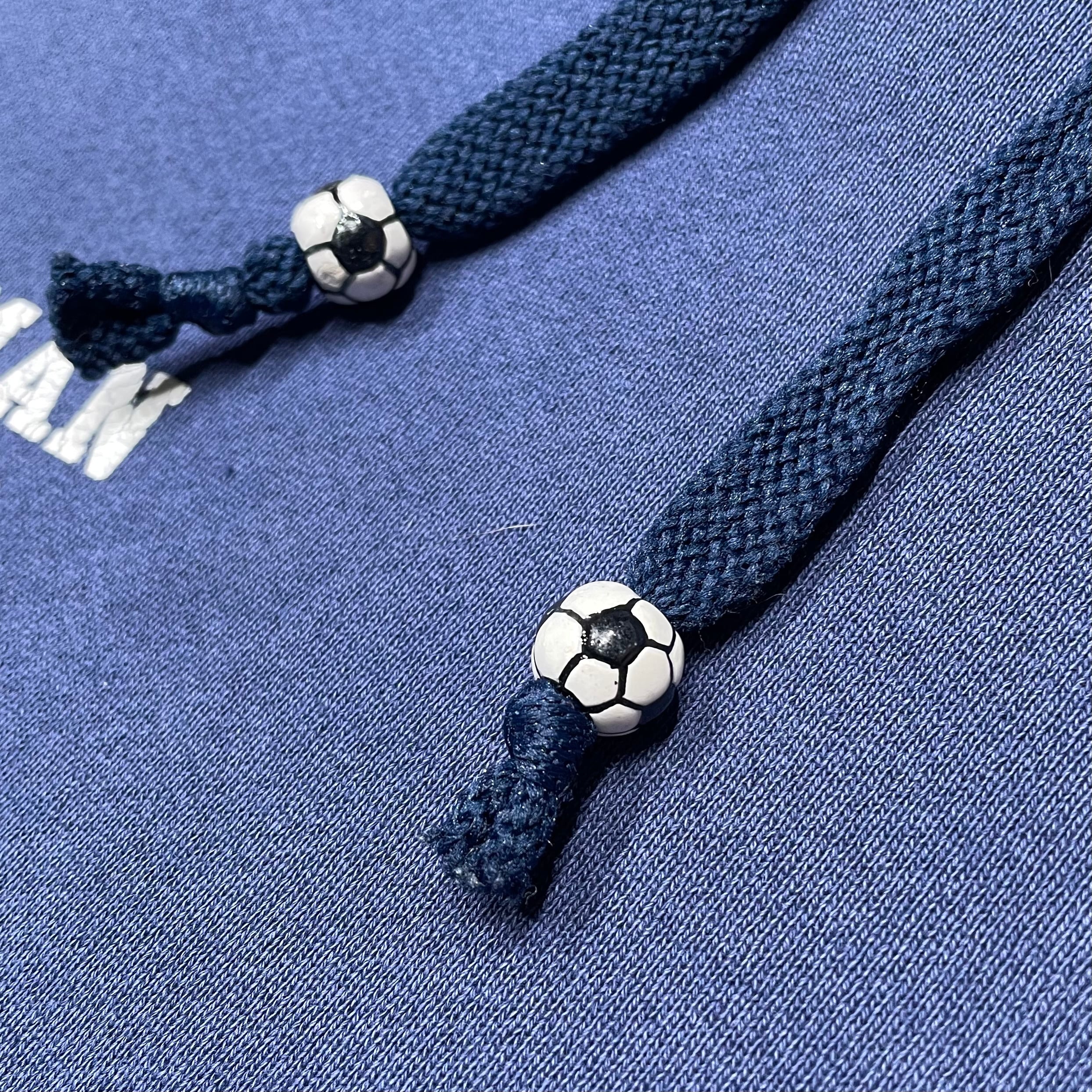 脇にはadidasを象徴する3本線が走り、さりげない位置ながらもしっかりとブランドのアイデンティティを主張。さらにフード紐の先端にはサッカーボール型のチップが付き、競技背景を感じさせる遊び心のあるディテールも魅力です。
