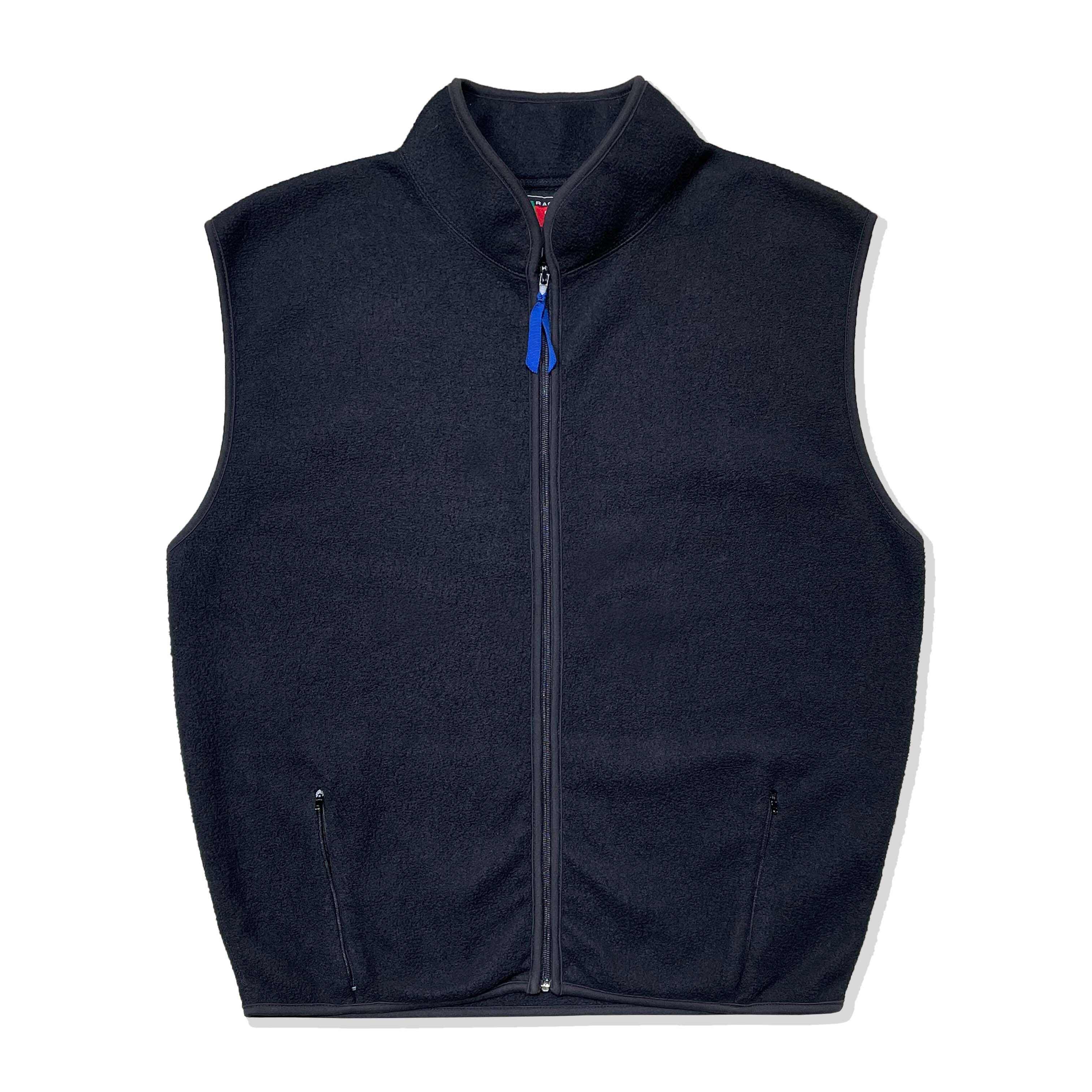 パーカーの上からはもちろん、アウターのインナーにも入れられる汎用性の高さが魅力。さらにジップの引き手に入るブルーがさりげない差し色になっていて、シンプルだけどデザインとしても面白いアイテムです。