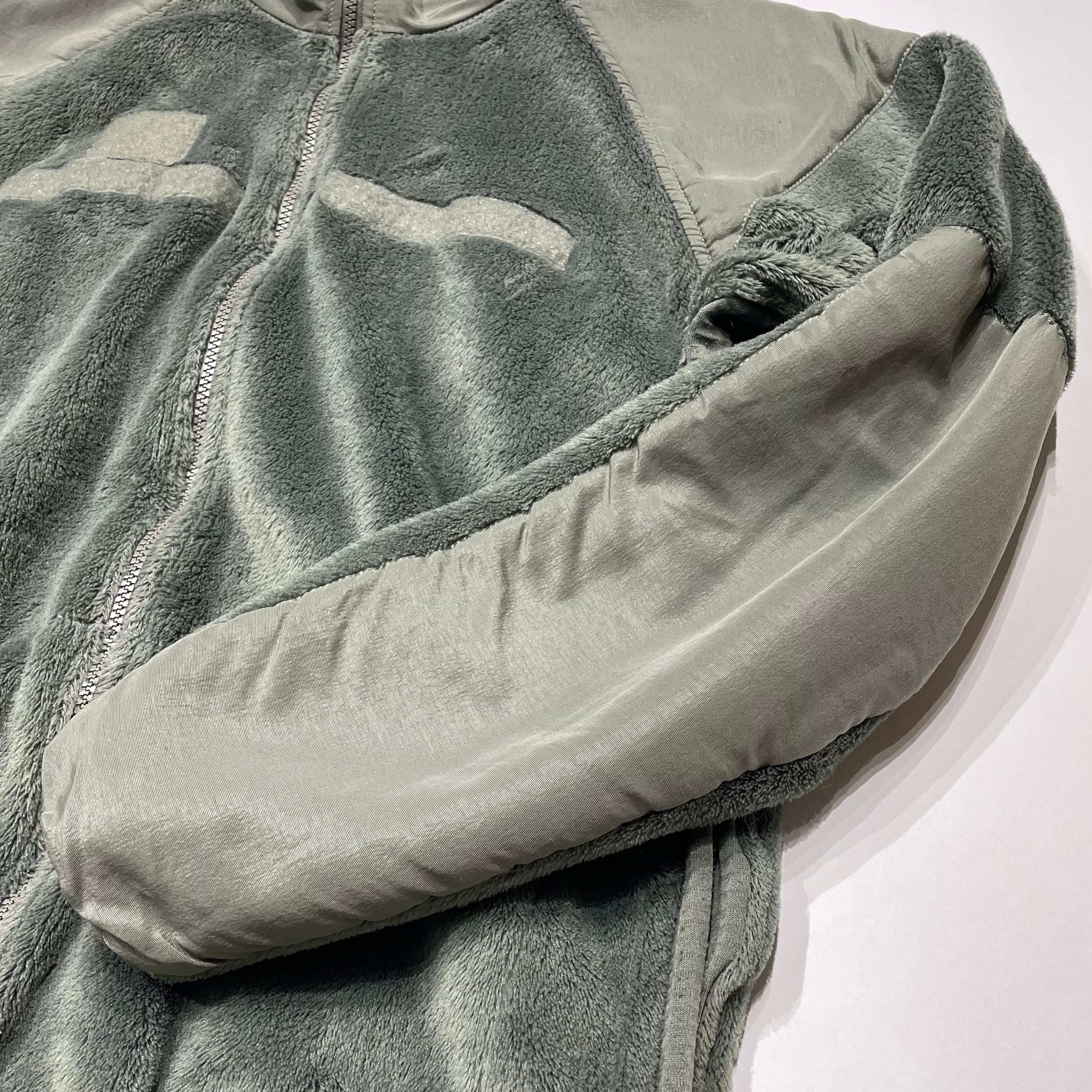 USアーミーの定番フリース、ECWCS Level 3。多くのブランドがサンプリングしてきた名作で、ミリタリー古着の中でも完成度の高い1着です。素材はPolartec社のフリースを使用しており、保温性はもちろん、軽さとストレスのない着用感も魅力。シルエットや切り替えディテールもよく、愛され続ける理由がしっかり伝わってきます。1着持っていて損のない定番で、たまに無性に着たくなる。そんなアイテムです。