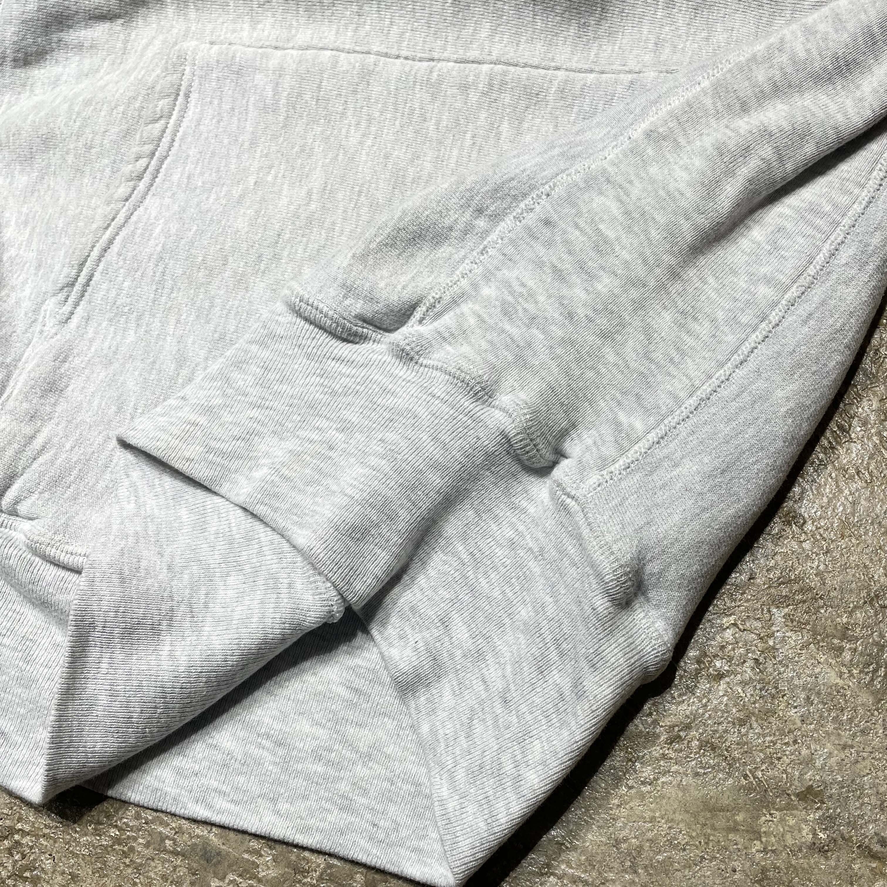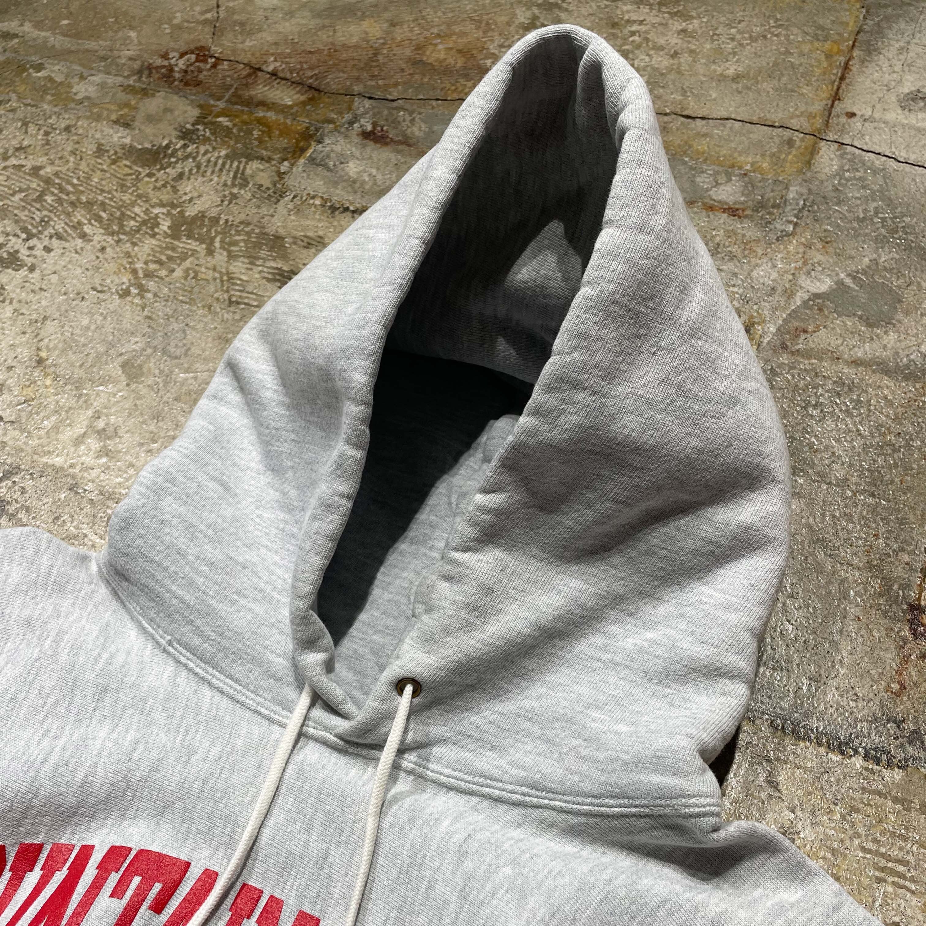 【不変のマスターピース】90年代チャンピオン、グレーボディに赤プリントが映える王道カレッジパーカー。カレッジ系2段プリントの完璧な配色に加え、この年代特有の「収まりの良いシルエット」も健在です。誰もが探す普遍的なデザインでありながら、このコンディションの個体は年々手に入りにくくなっています。どんなスタイルにも馴染む万能さと、古着ならではの柔らかな生地感はまさに一生物。「これぞ」という定番を探し続けていた方に、自信を持っておすすめする至極の一着です。