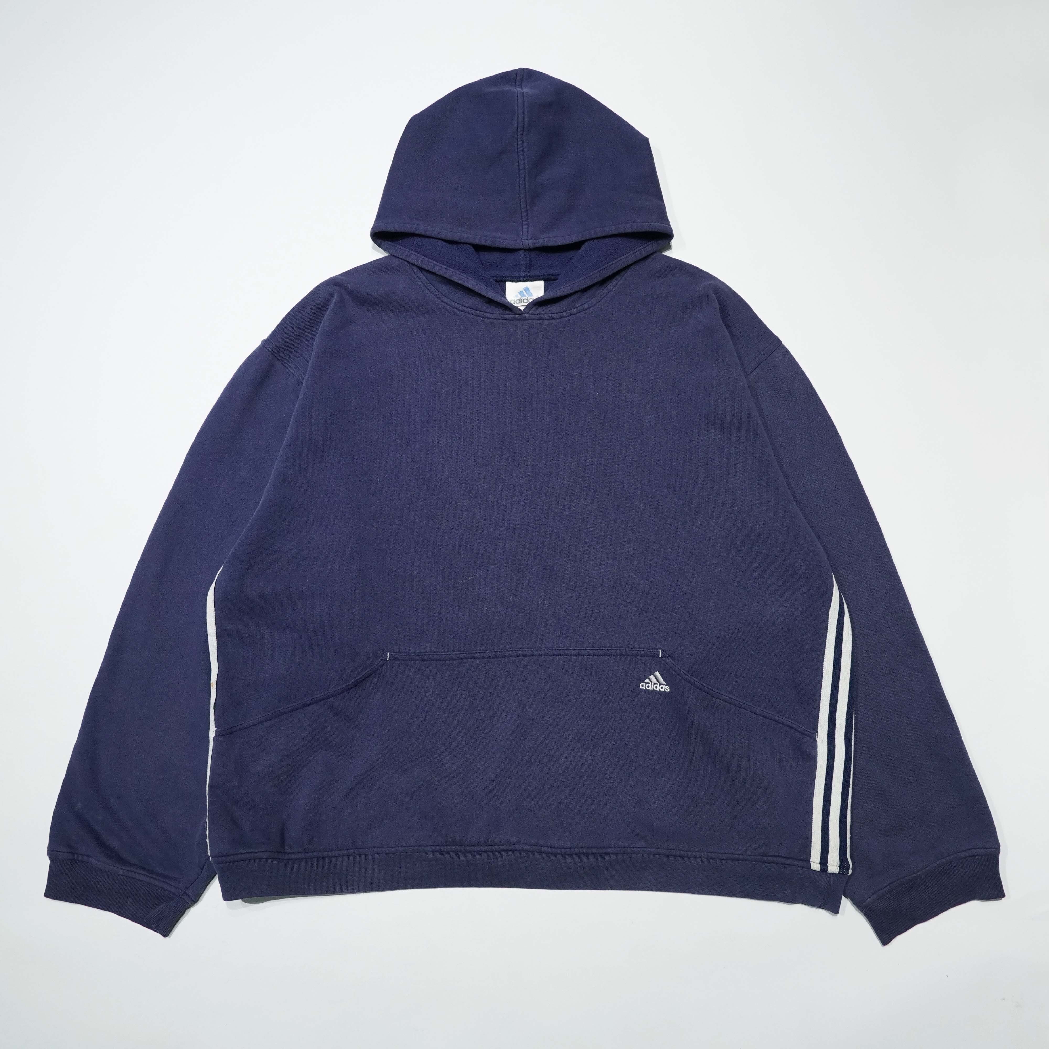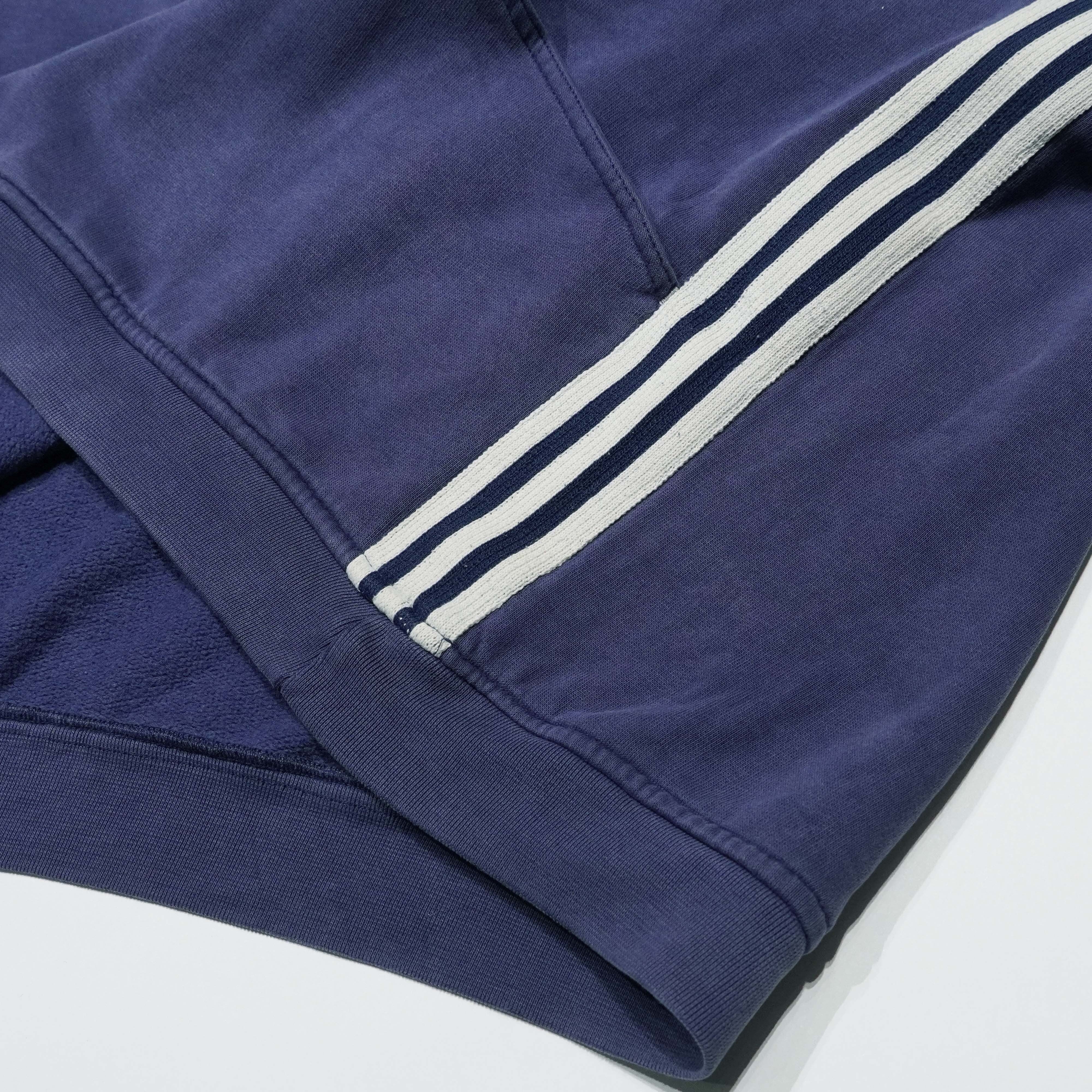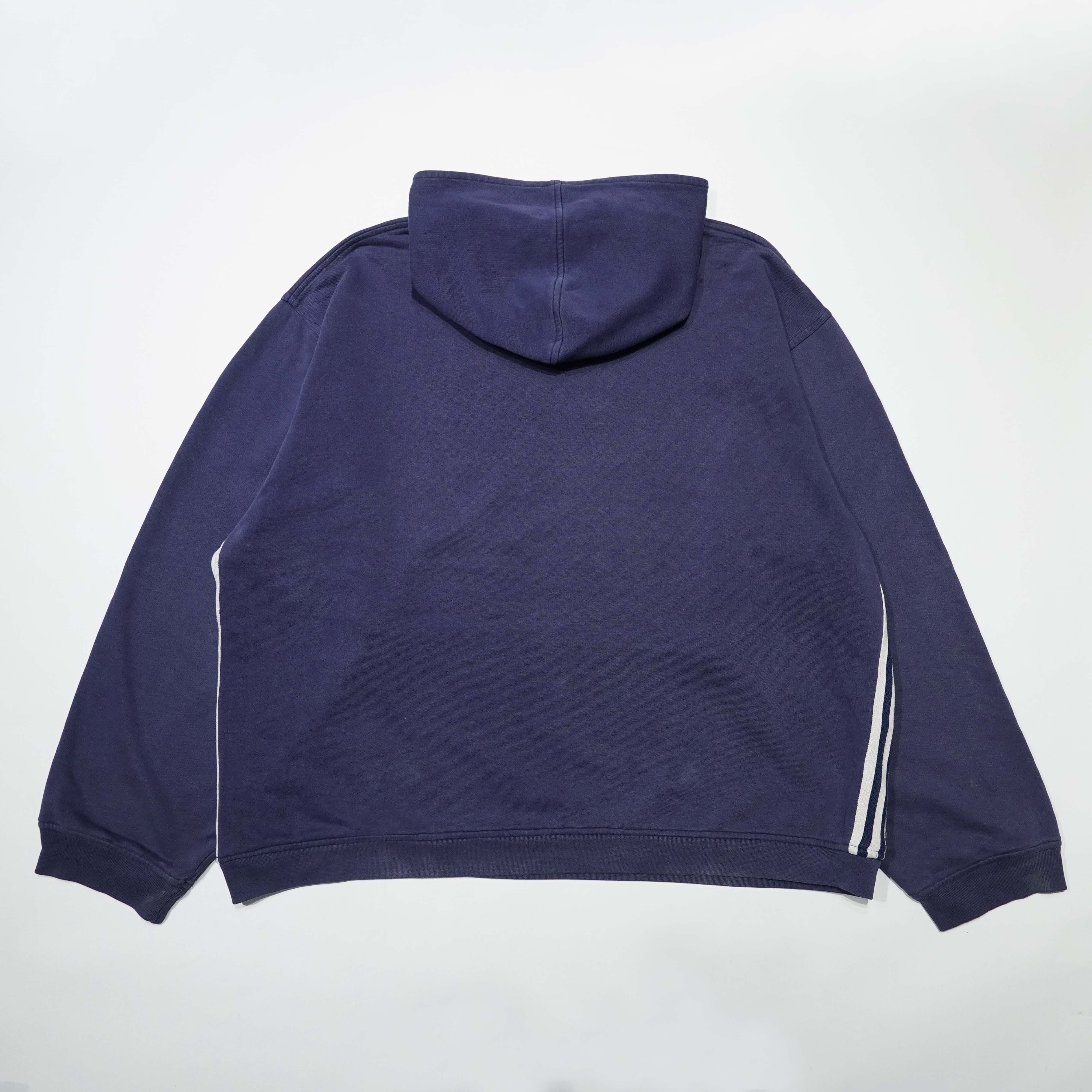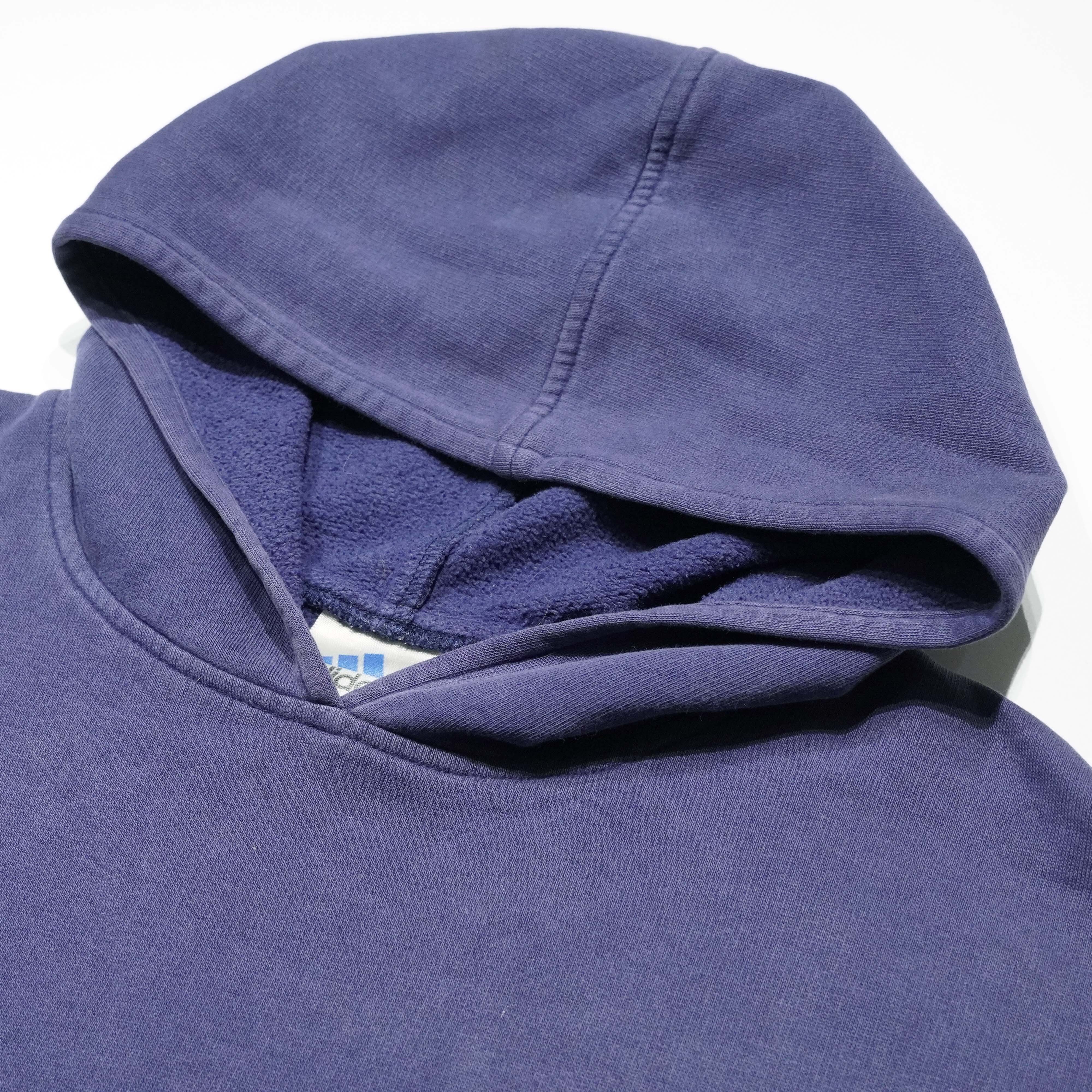 たっぷりとした身幅感と独特な太さのある袖のデザインがアディダスとのギャップのある面白い1着。オーバーサイズでもバランスがよく、不思議と着ていて纏まりがある計算されたパターンになっています。経年変化により、色褪せたナス紺カラーもよく唯一無二なオススメのパーカーです。