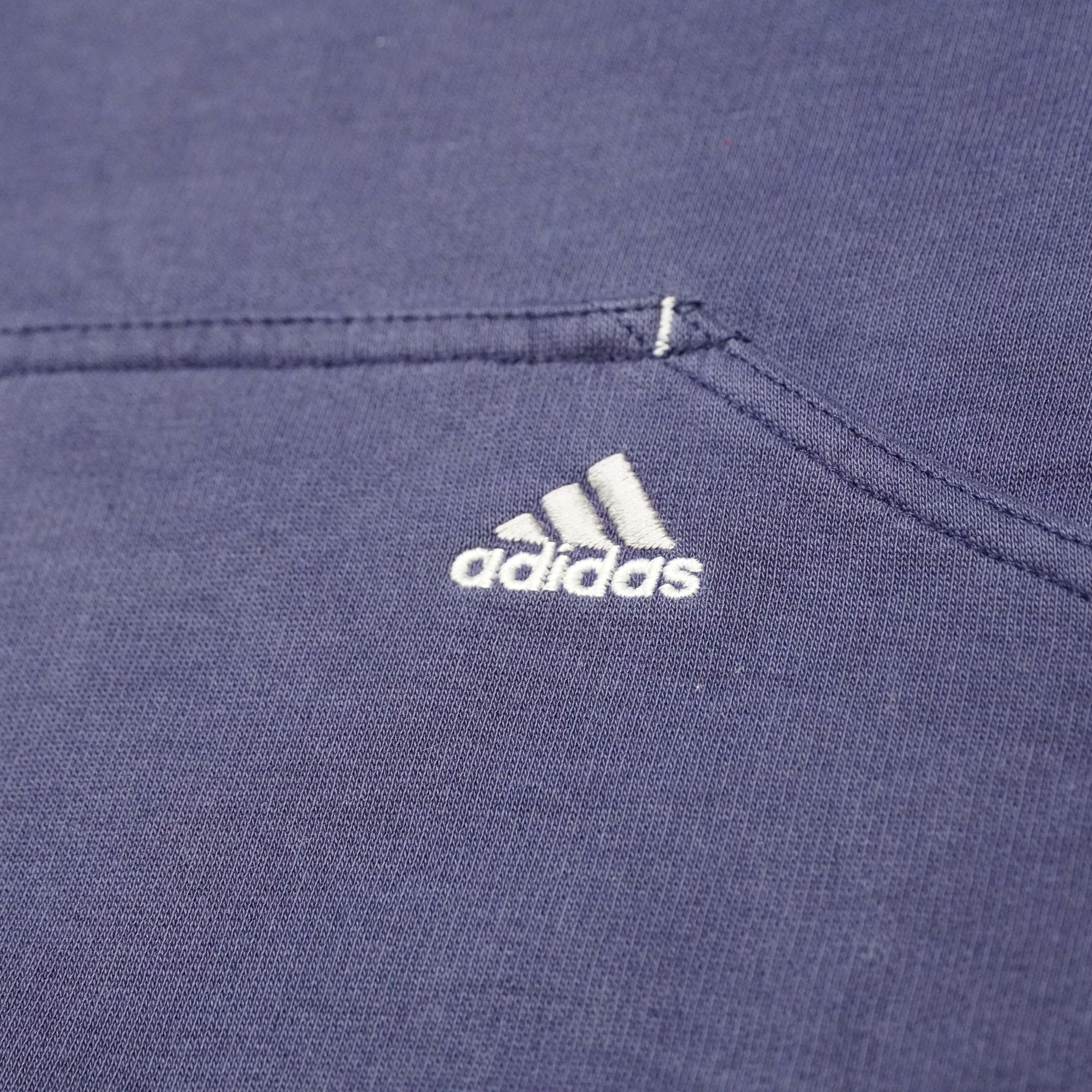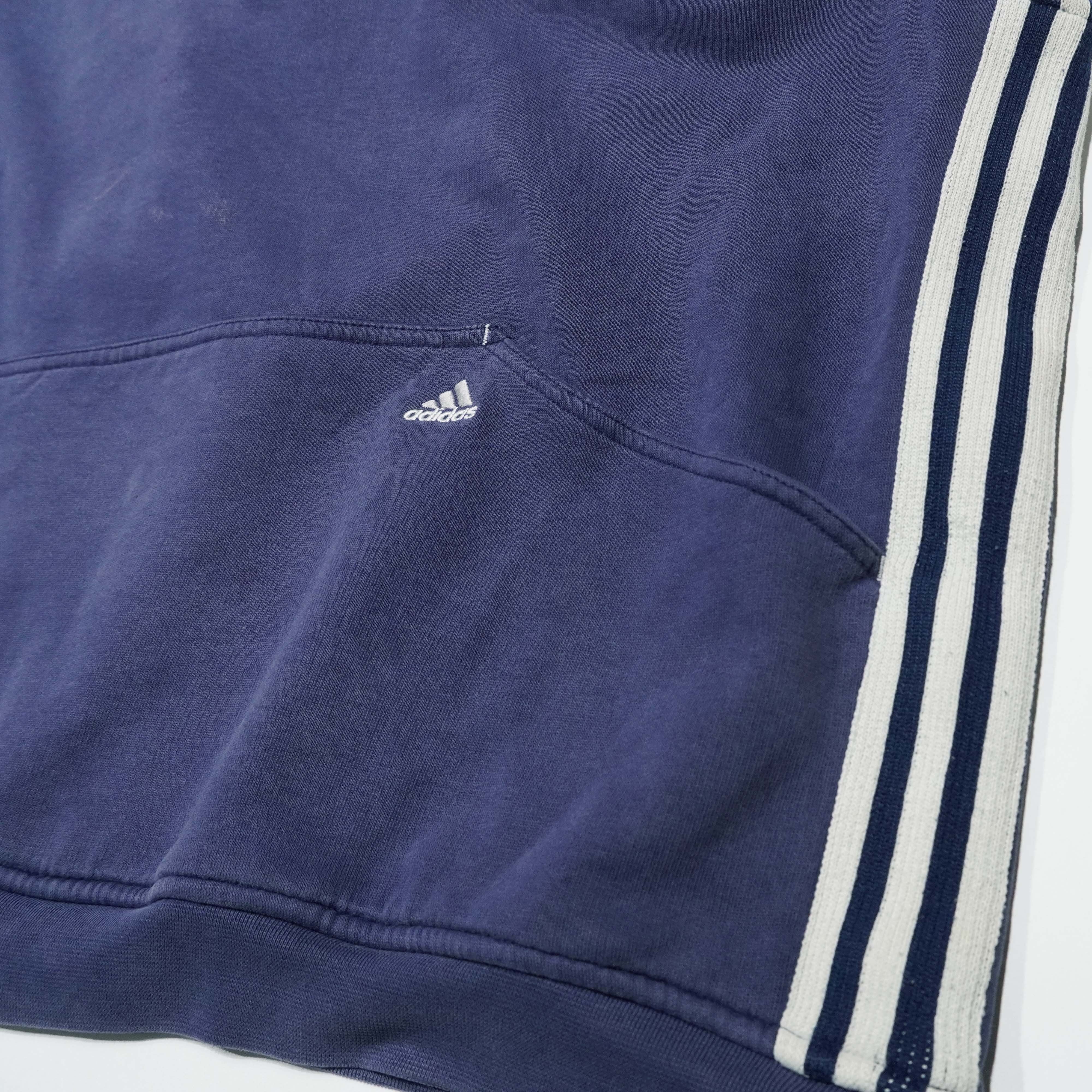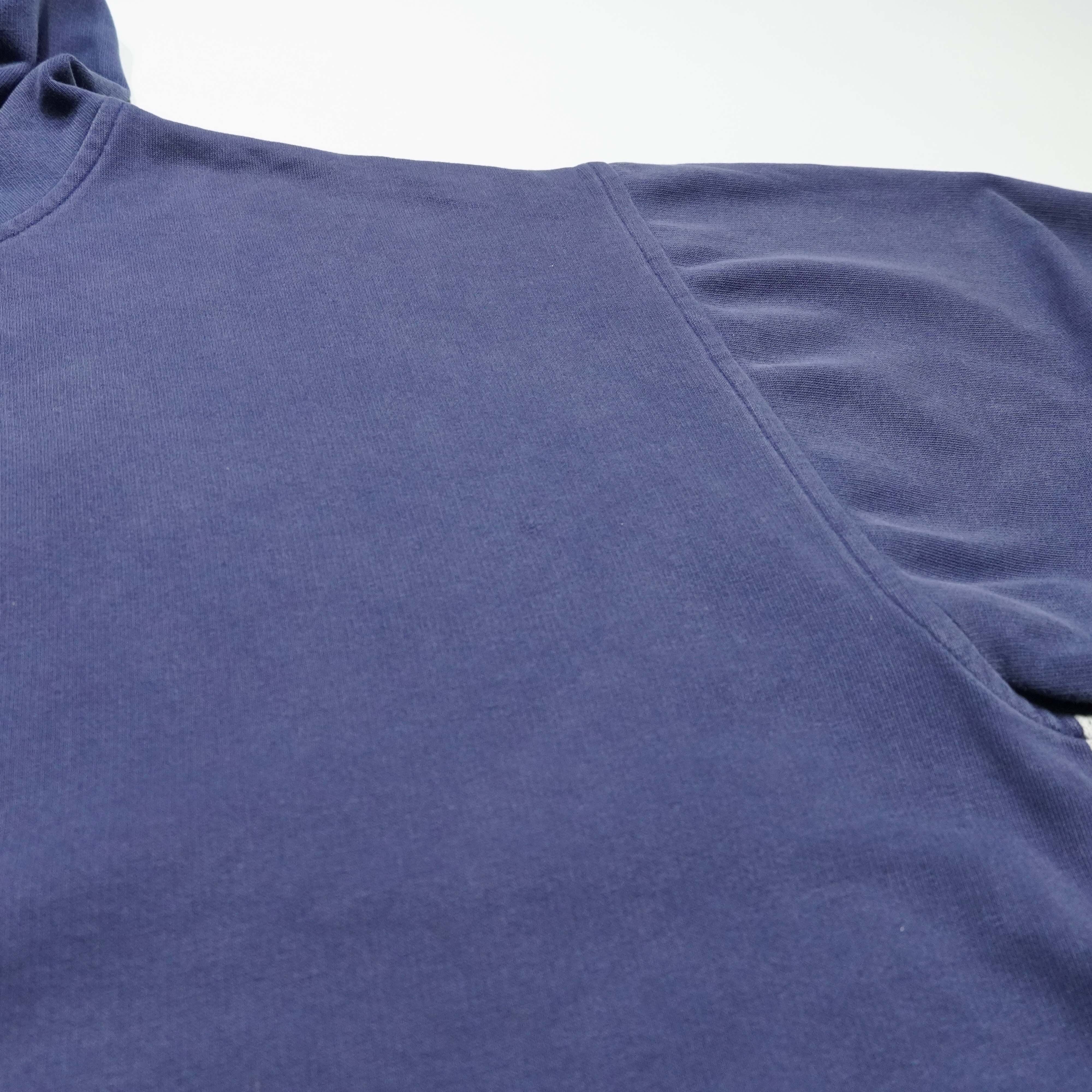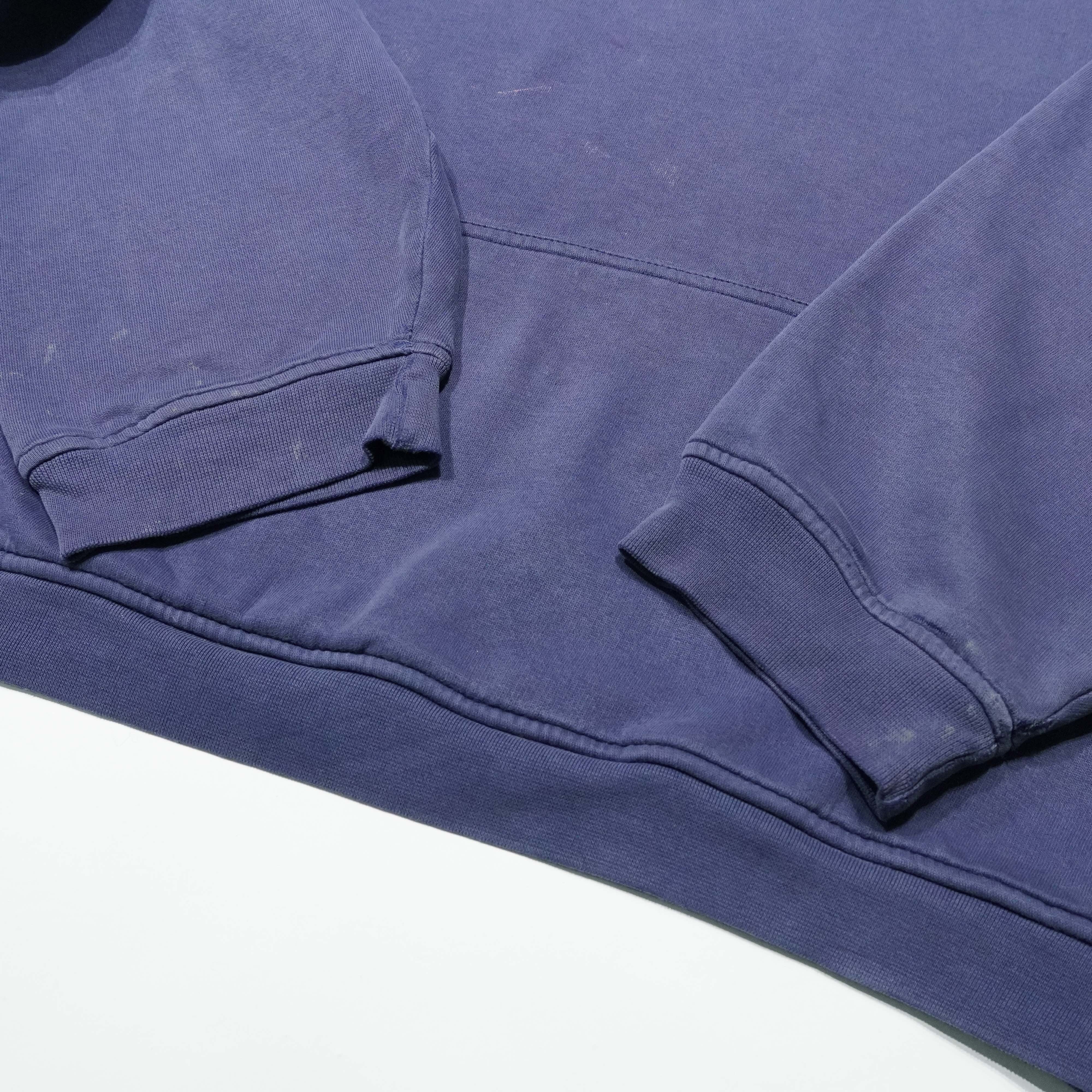 たっぷりとした身幅感と独特な太さのある袖のデザインがアディダスとのギャップのある面白い1着。オーバーサイズでもバランスがよく、不思議と着ていて纏まりがある計算されたパターンになっています。経年変化により、色褪せたナス紺カラーもよく唯一無二なオススメのパーカーです。