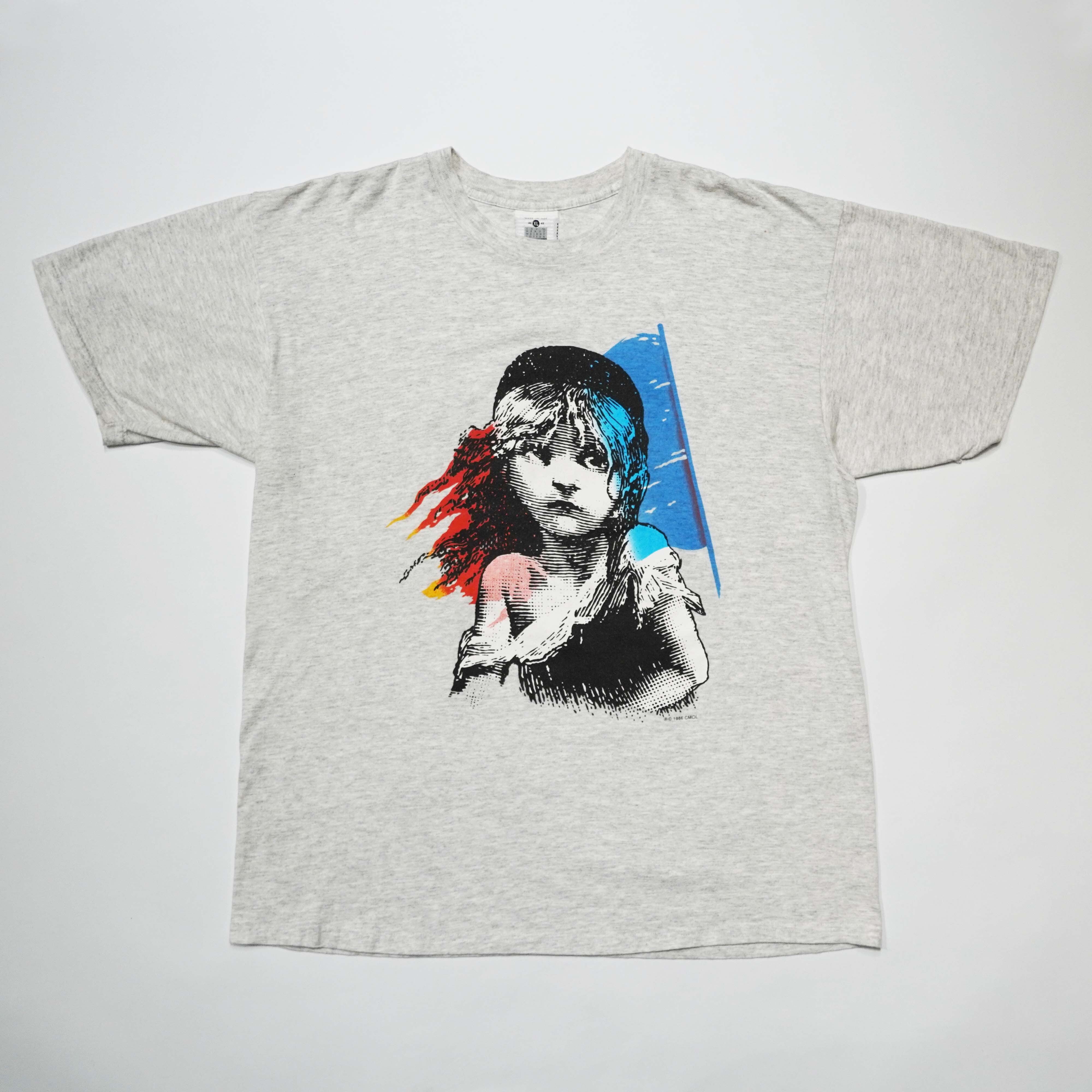 1862年にフランス作家ヴィクトル・ユーザーによって発表された小説。レ・ミゼラブル。舞台、映画化によって多くの人に愛されている物語です。今回はLEEの肉厚USA製ボディ。1986年のコピーライト入り。なによりサイズXLでバランスが良い。持っていて満足でなく、着たいヴィンテージTシャツ。大変おすすめです。