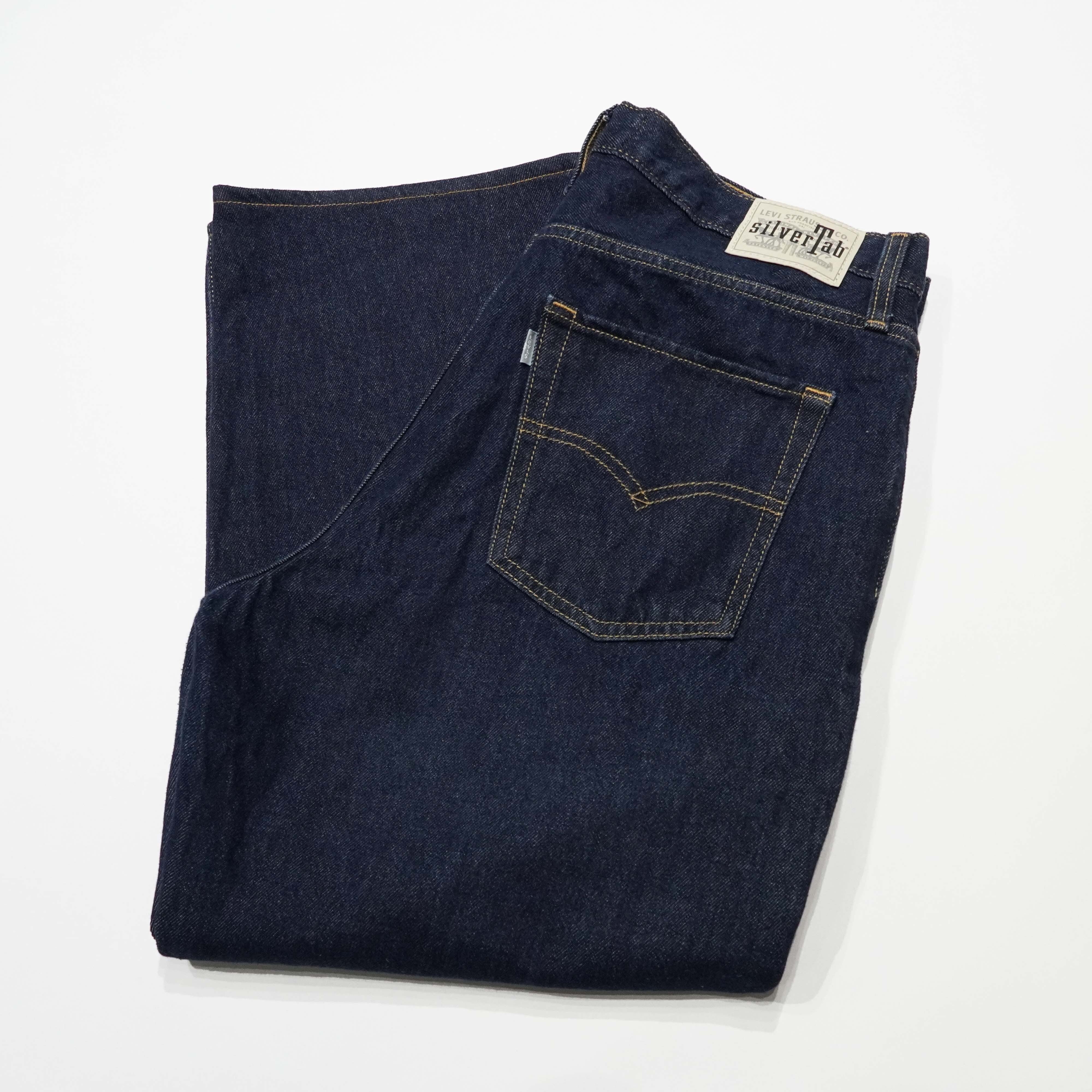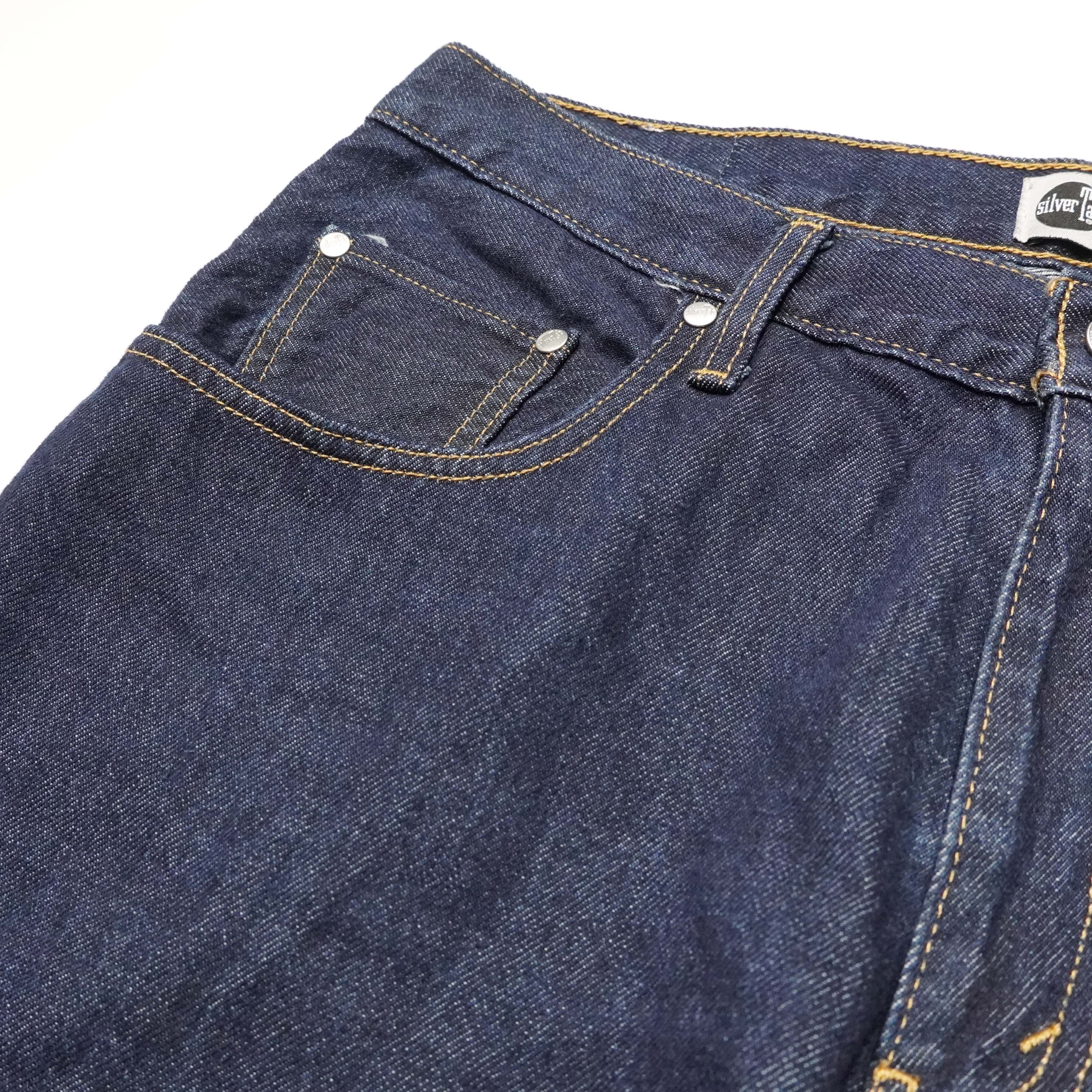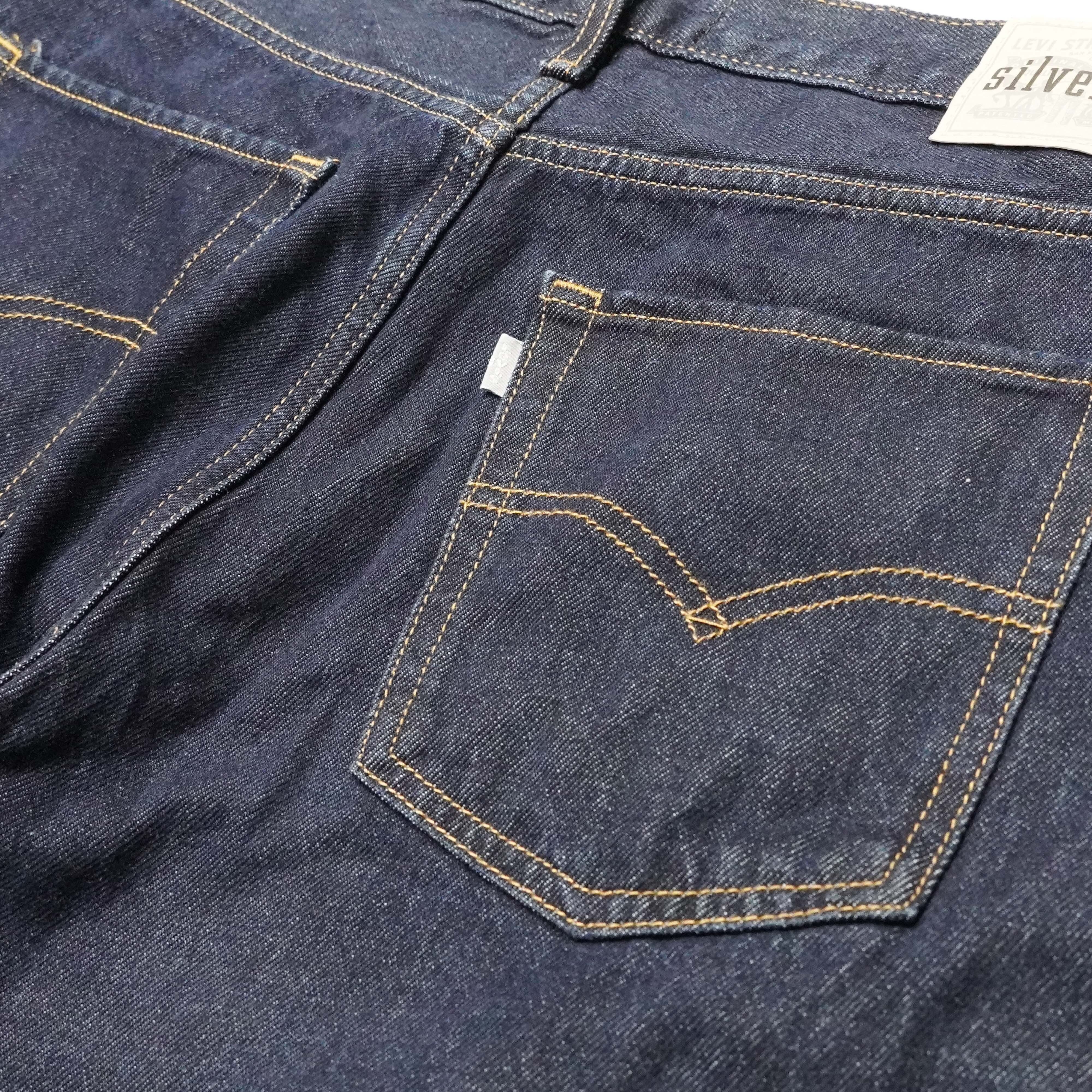 90年代、ダンスミュージック、スケーターカルチャーで今でも人気のあるリーバイスシルバータブ。ドカンと太いバギーシルエット。リーバイスの赤タブと一線を画すスタイルが好きな方も多いはず。まだ色落ちもなく、これから楽しめるインディゴ。柔らかくドレープの出る落ち感も魅力的なアイテムです。