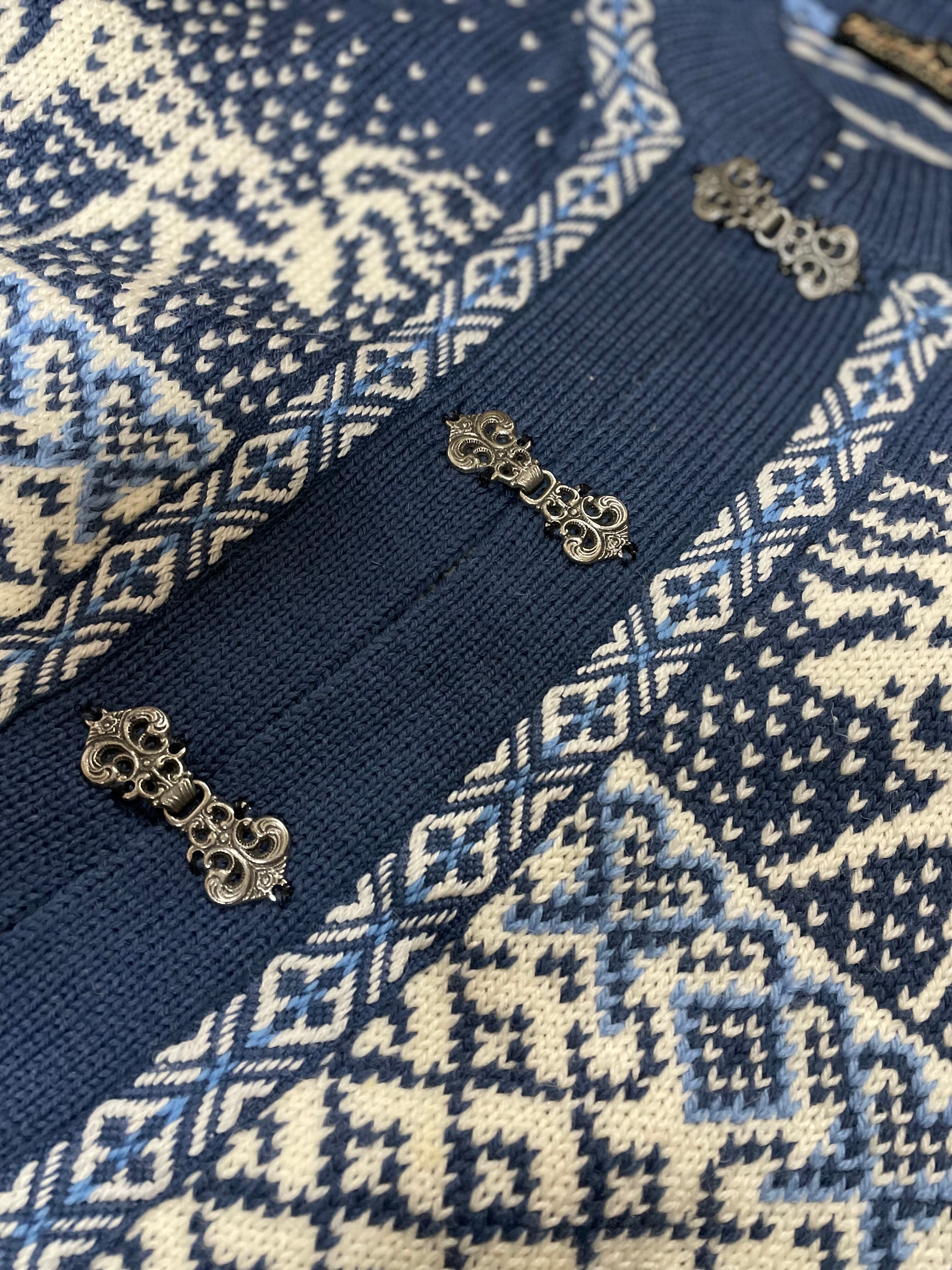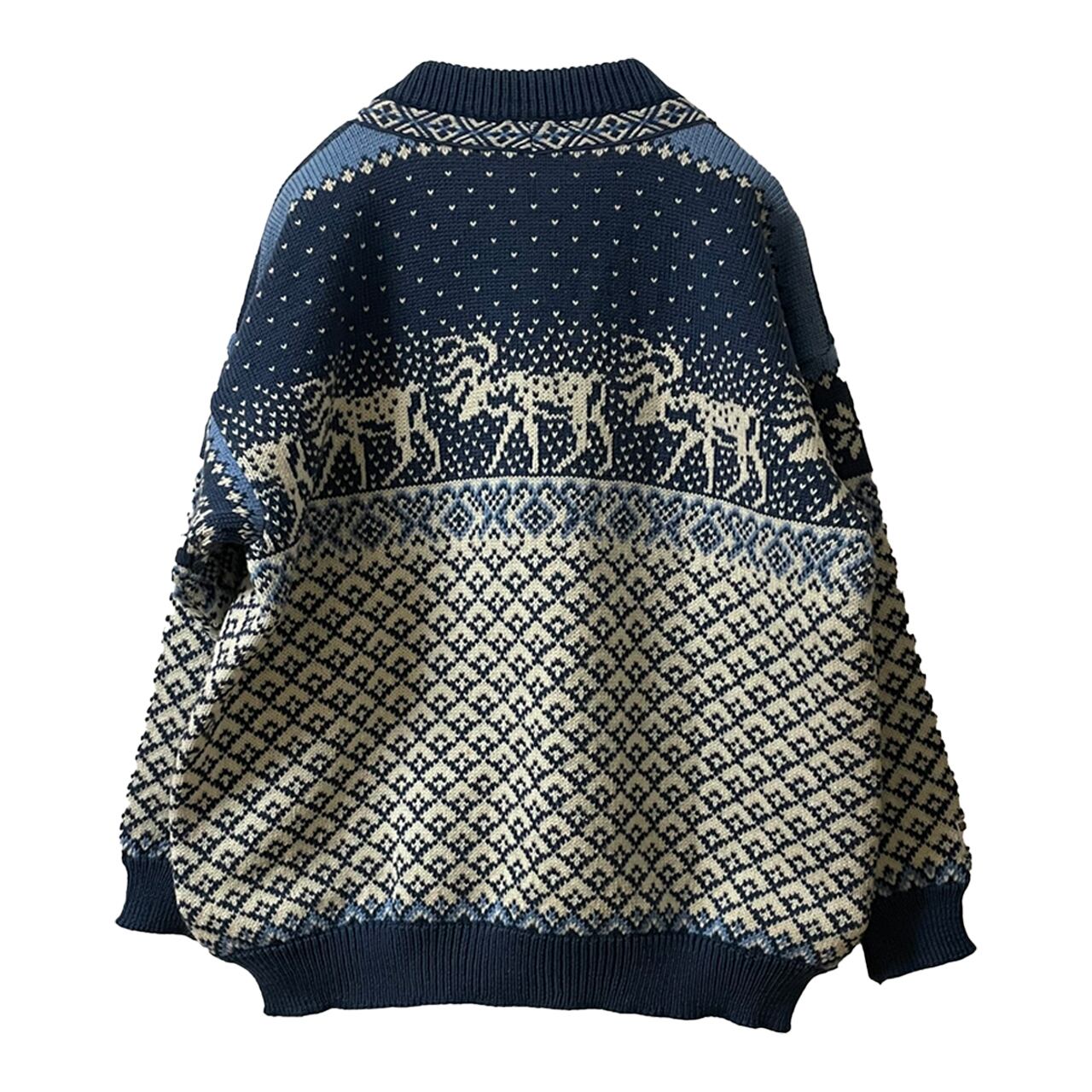 繊細なノルディック柄に肉厚なウール素材・ヨーロッパらしいホックデザインが特徴的なニット