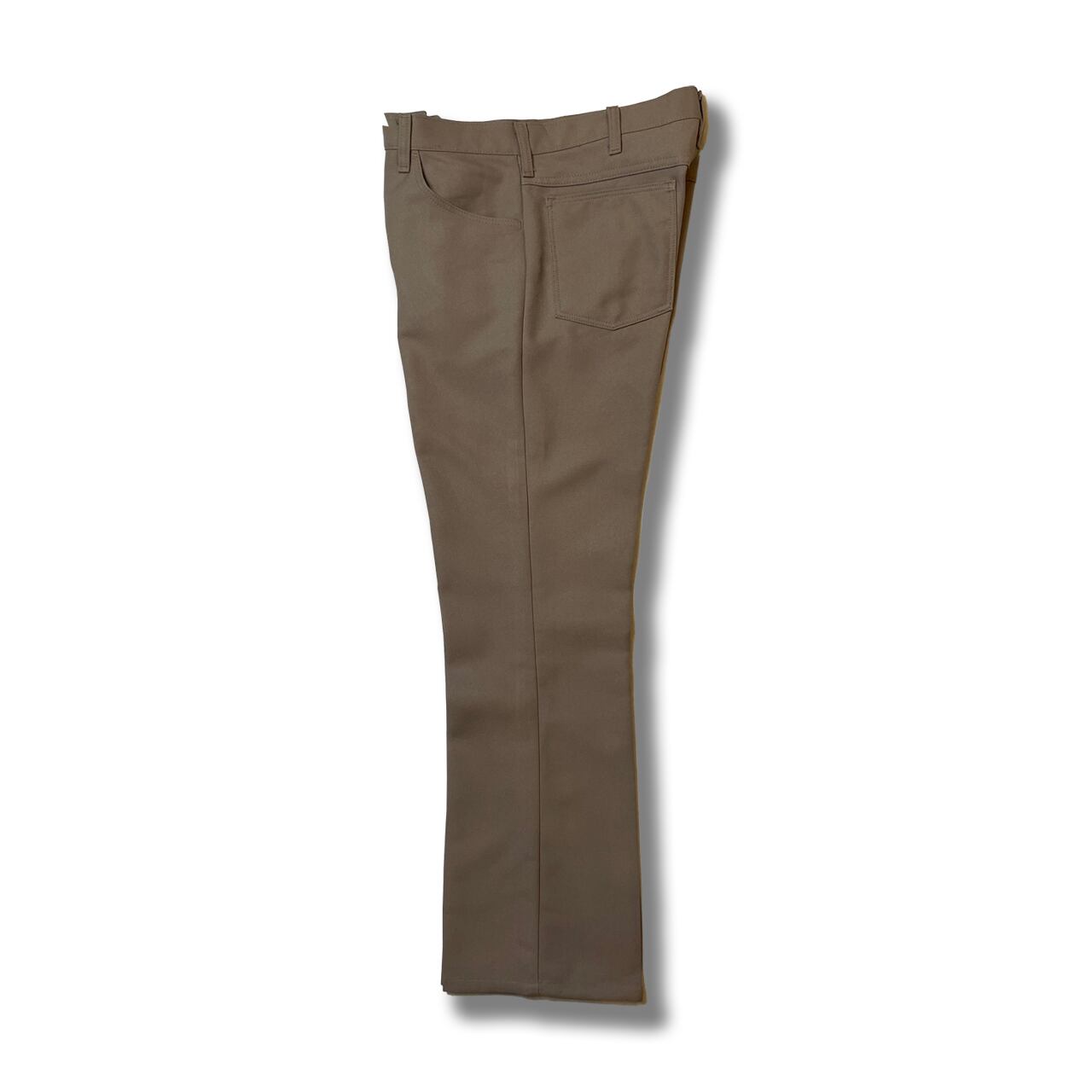 特徴は、裾にかけて太くなるセミフレアシルエット。足が長く見えコーディネートに一役買ってくれるパンツです。