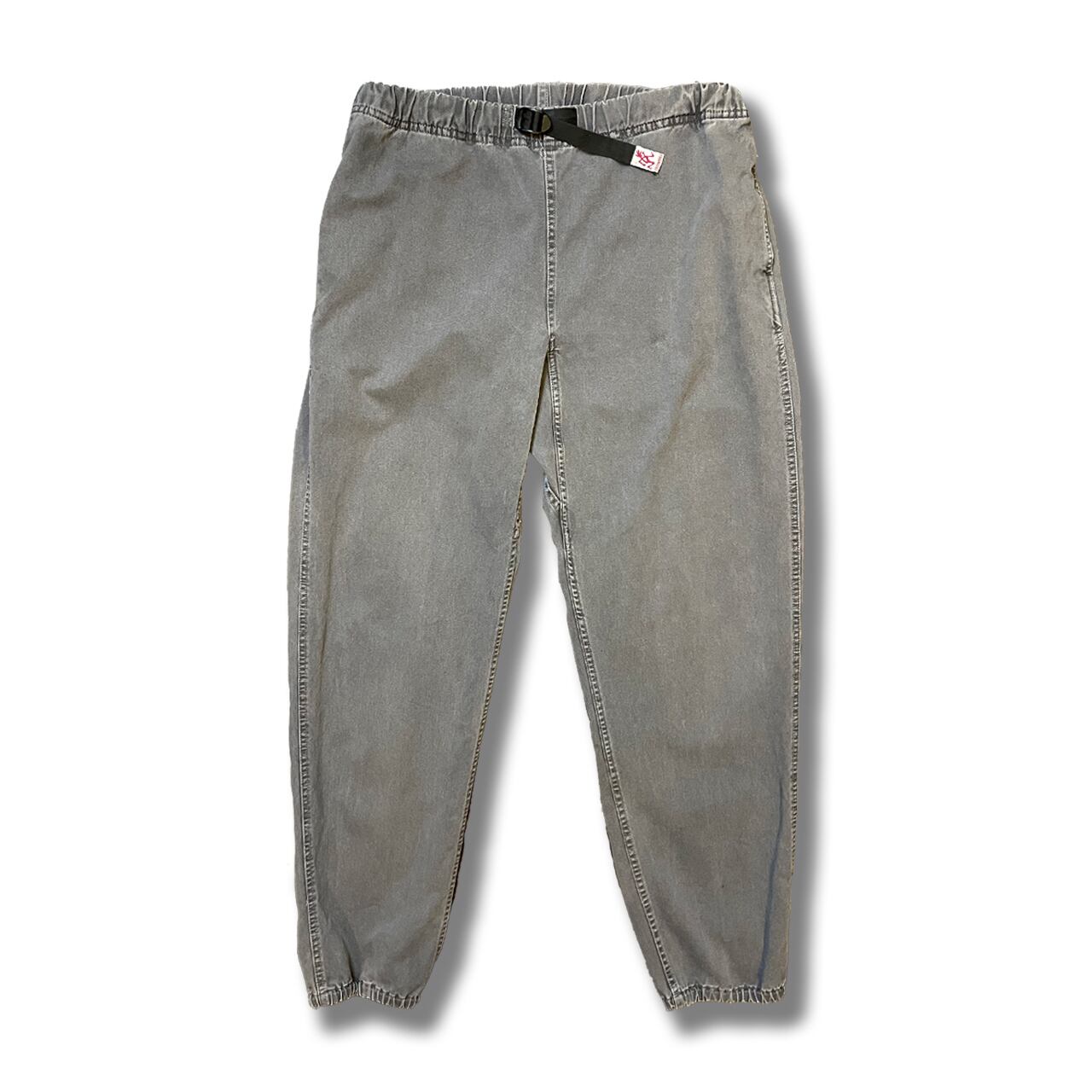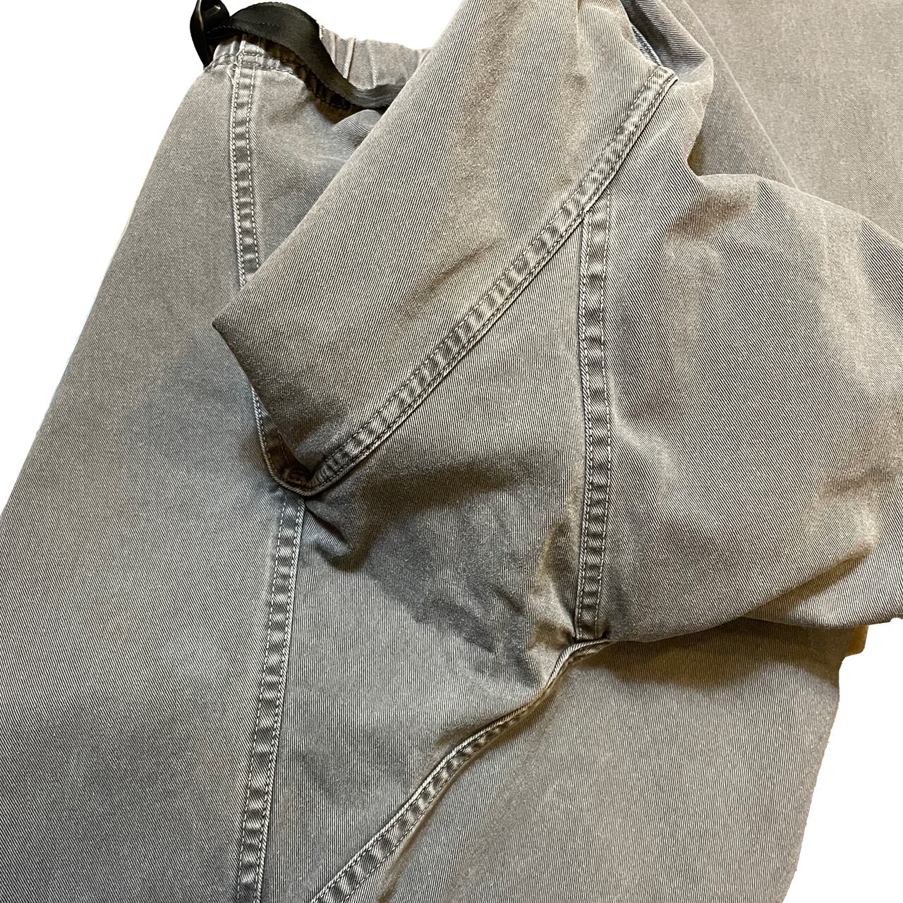 特徴と言えるウエストベルトと股繰りのマチに加え、裾にゴムが入っておりスポーティかつカジュアルなデザイン。生地はコットンツイルを使用し雰囲気のある色落ち感があります。