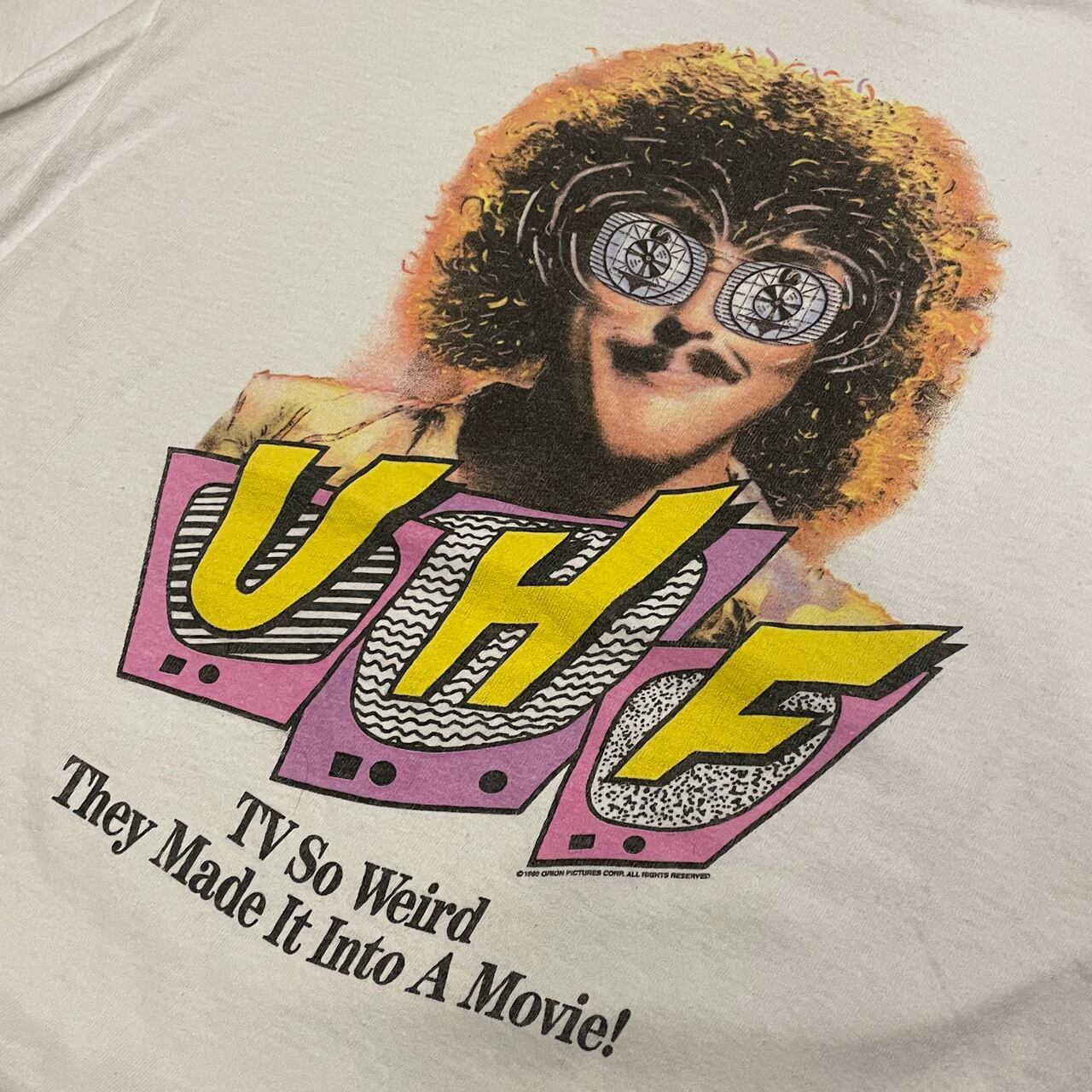 知る人ぞ知るコメディ映画『パロディ放送局UHF』のオフィシャルTシャツ。1989年公開のオカルト的映画。