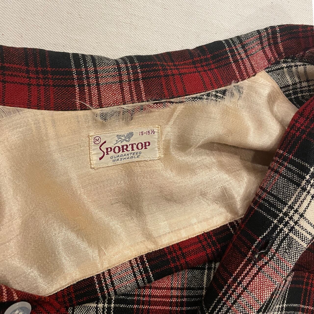 赤黒白の鮮やかなオンブレチェックが印象的なヴィンテージシャツ。