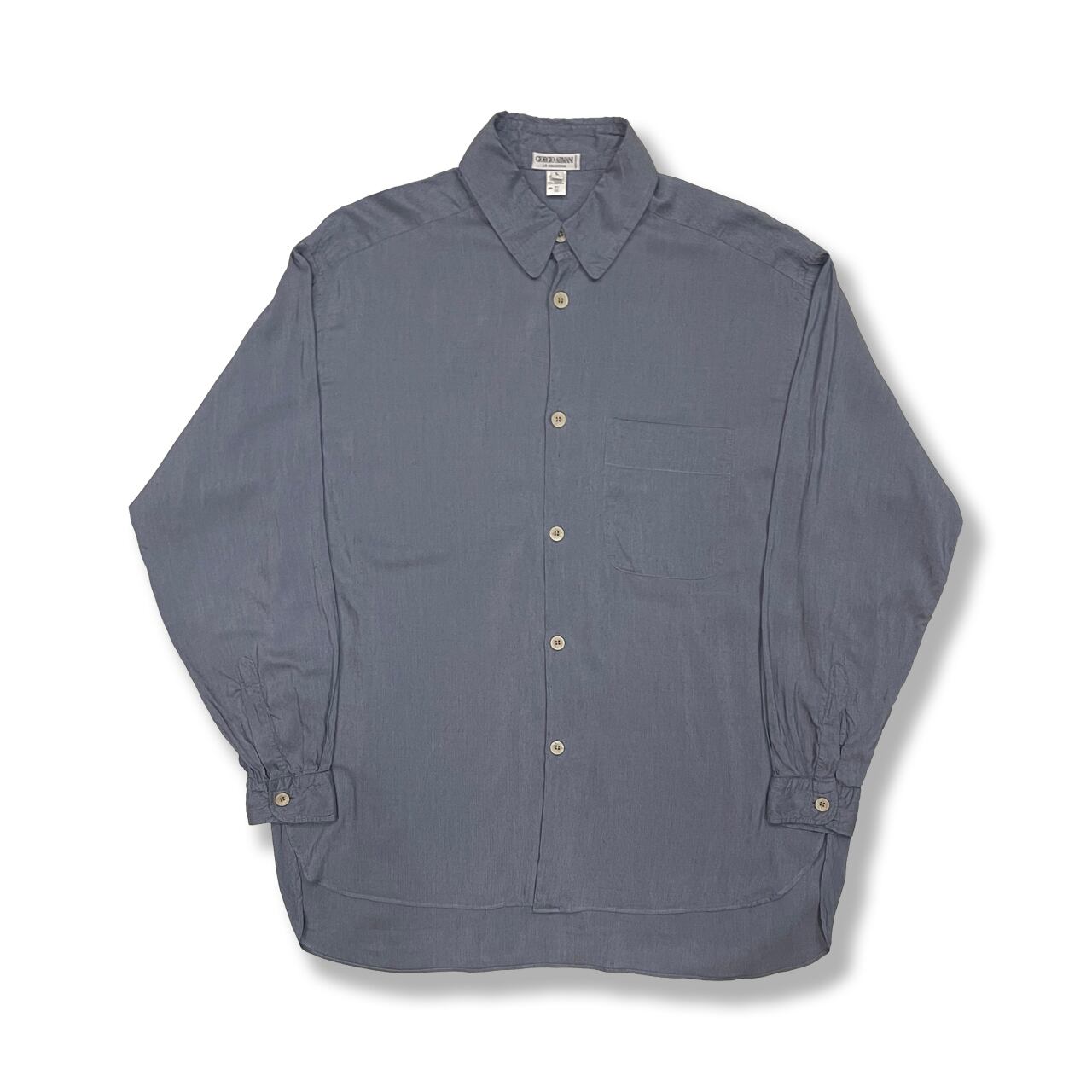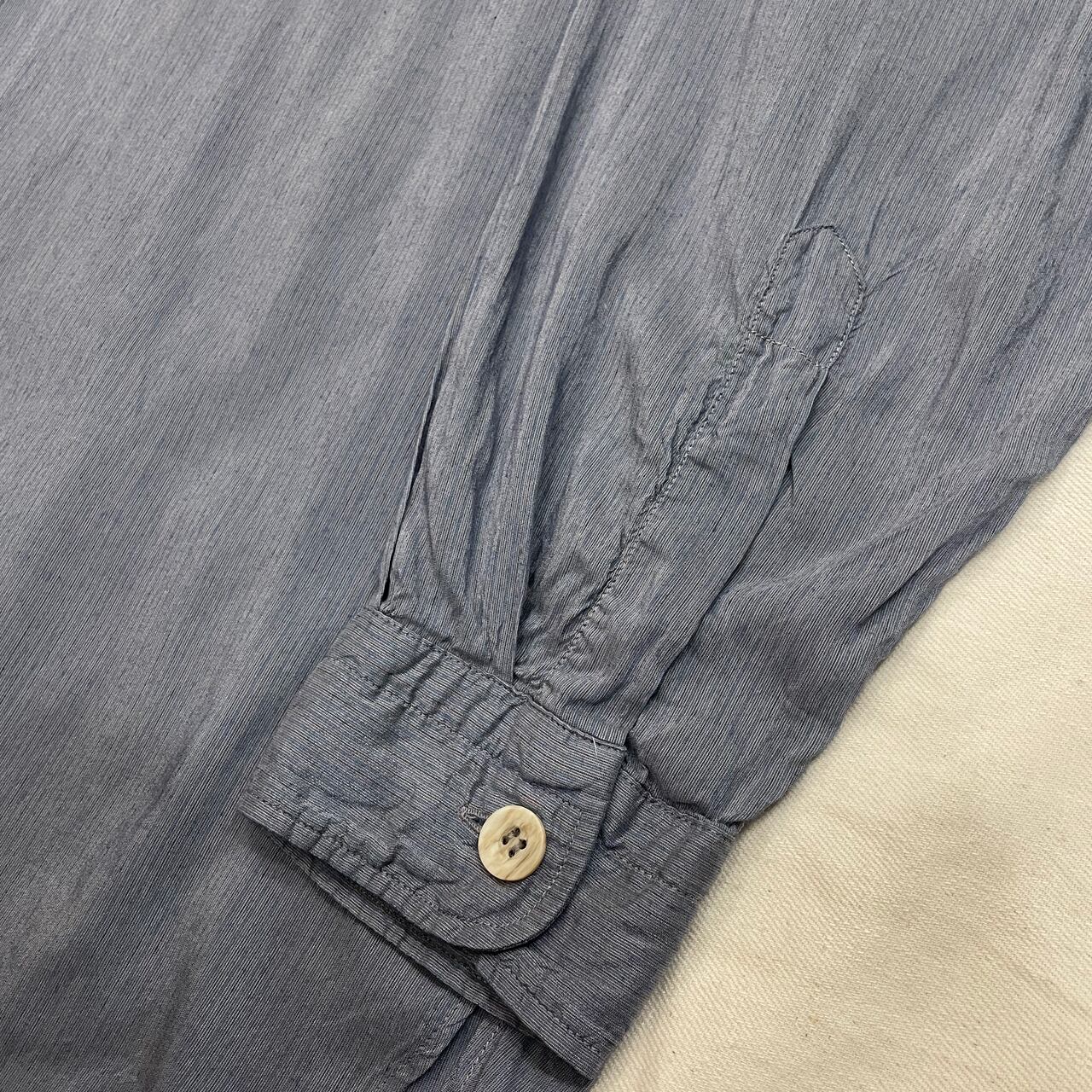 普段より大きめのボタンを使用し、襟は丸くすることで高級素材を使用しながらもカジュアル仕様とのコントラストのつけたシャツになってます。