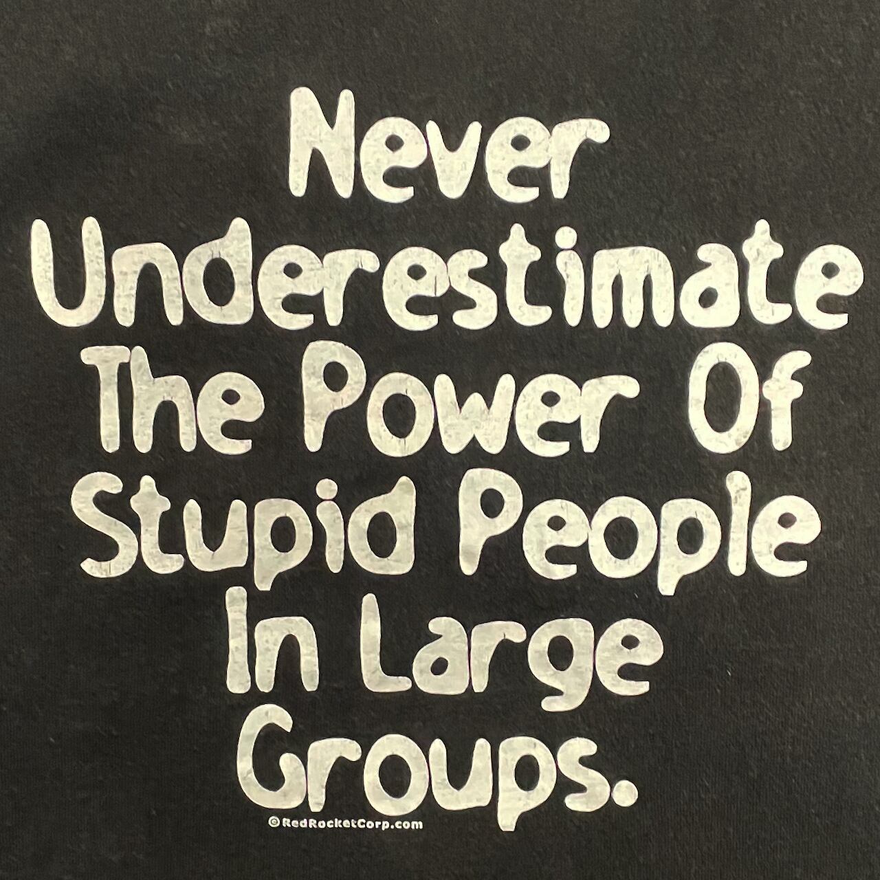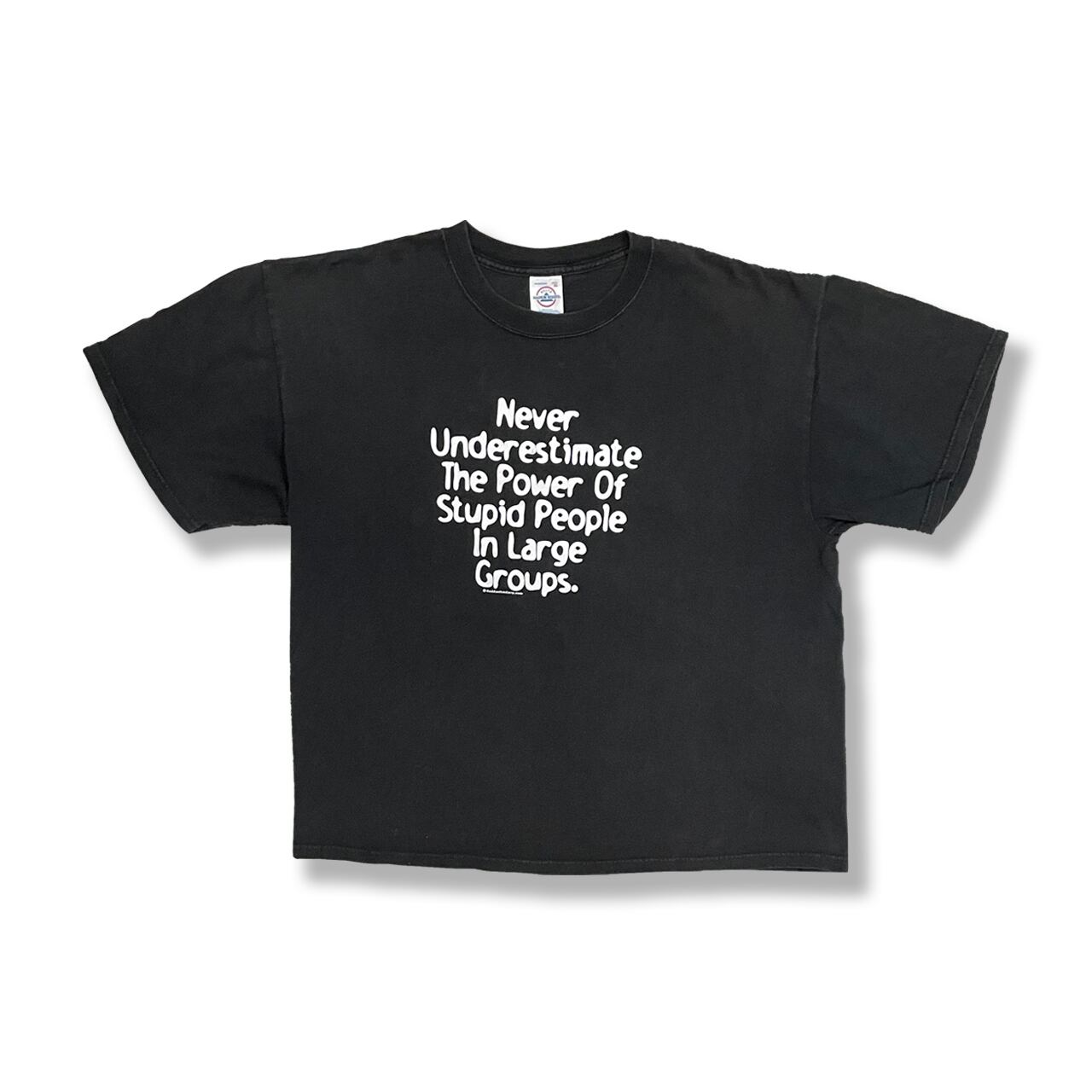 放送禁止用語を連発し、アメリカの政治や社会を教育を批判することで国民の人気をはくしたコメディアン、ジョージカーリン。その反面、機関車トーマスの声優としても活躍しました。多くの名言を残しており『Never Underestimate The Power Of Stupid People In Large Groups.』日本語に訳すと『集団の愚かな人々の力を過小評価してはならない』ジョージカーリンらしい社会や政治への差別に対する一言がプリントされています。