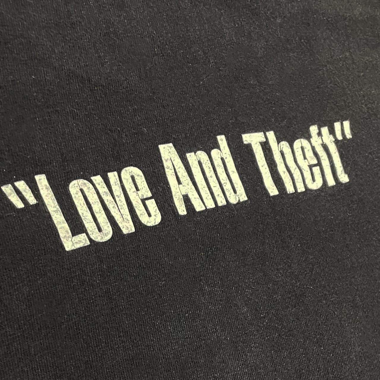 2001年に発売されたボブディランのアルバム”LOVE AND THEFTのジャケット写真がされたTシャツ。同アルバムはグラミー賞最優秀賞コンテンポラリーアルバムを受賞した名盤。
