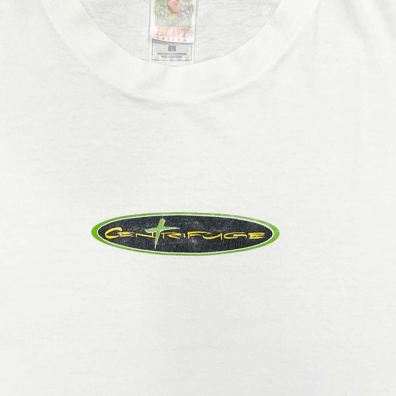 古着のTシャツの面白さの一つで個性的グラフィック。今回紹介するのは"centrifug"和訳すると遠心分離機?の様です。しかしストリート感のあるグラフィックで面白い。もしかすると、ブランドでしょうか。ボディはフルーツオブザルームのHEAVY。程よいCOTTON100の肌触り。