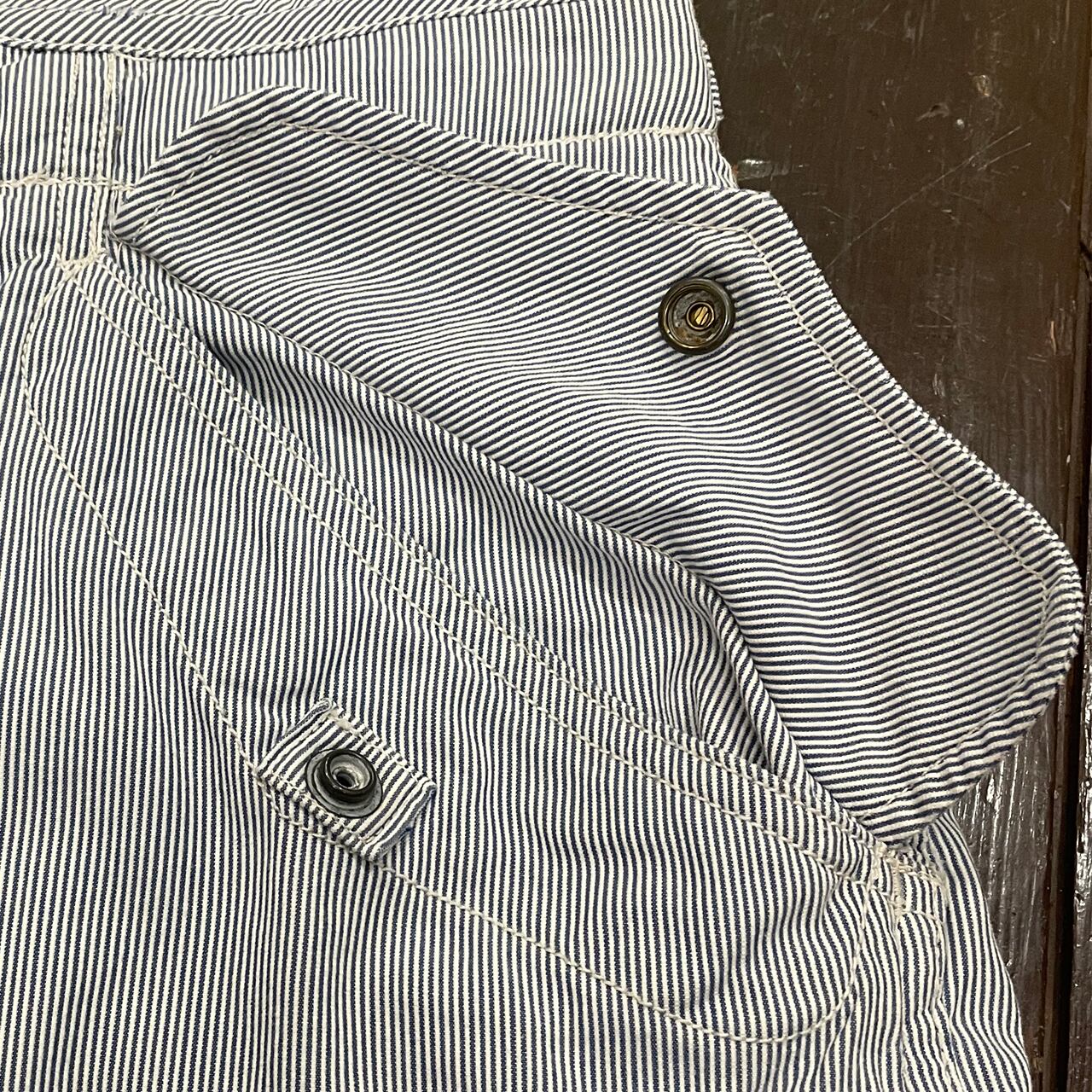 U.S ARMYのM-65パンツのディテールをヒッコリー生地に盛り込んだ90s ラルフローレンのカーゴパンツ。