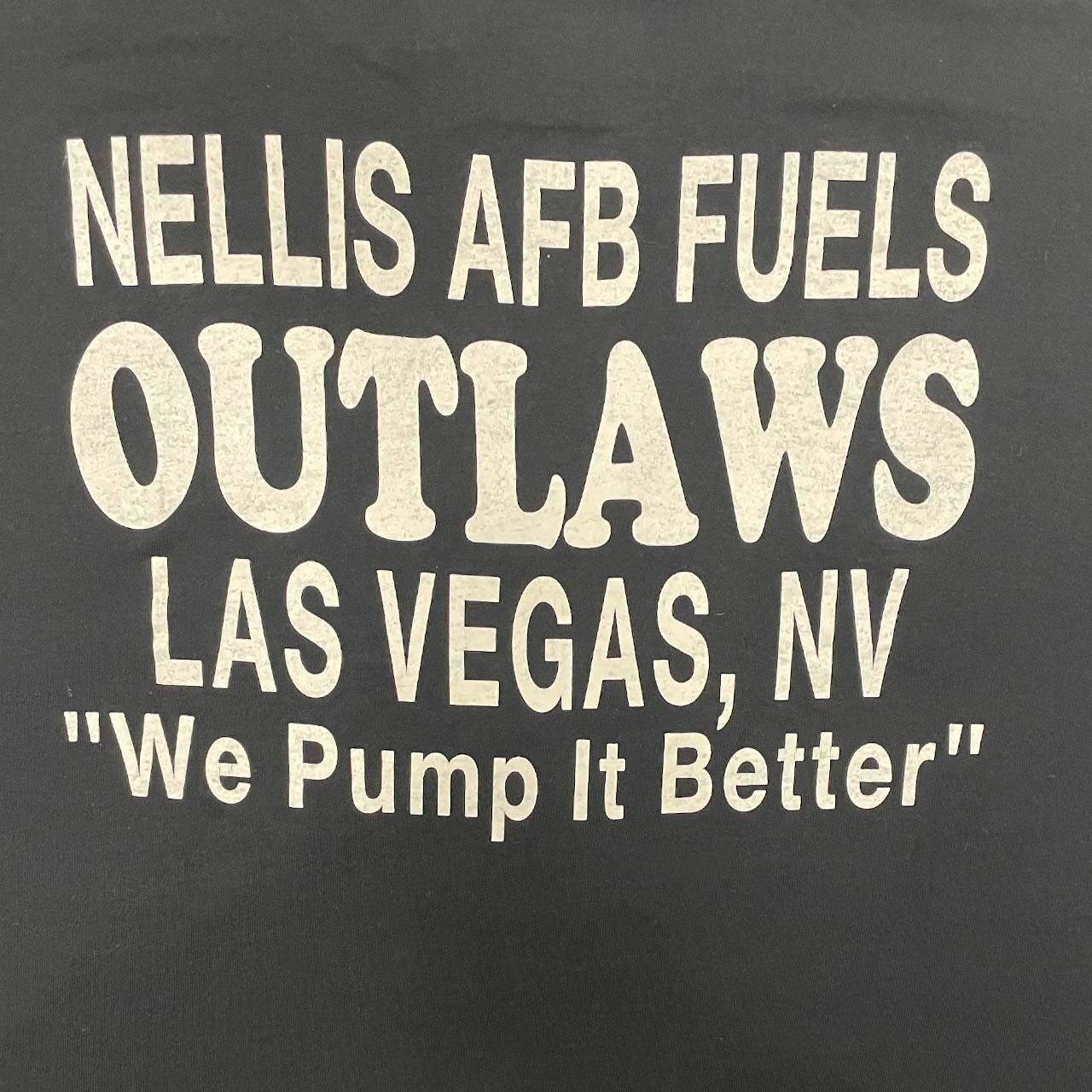 1943年に当時はラスヴェガス陸軍飛行場として演習が行われていましたが、第二次世界大戦後にネリス空軍基地と名を変えて今でも存在する基地が背中にプリントさえています。