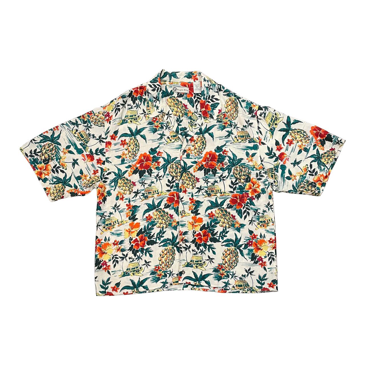 やはりアロハシャツと言えばハイビスカスとパイナップル。そして素材はレーヨン。