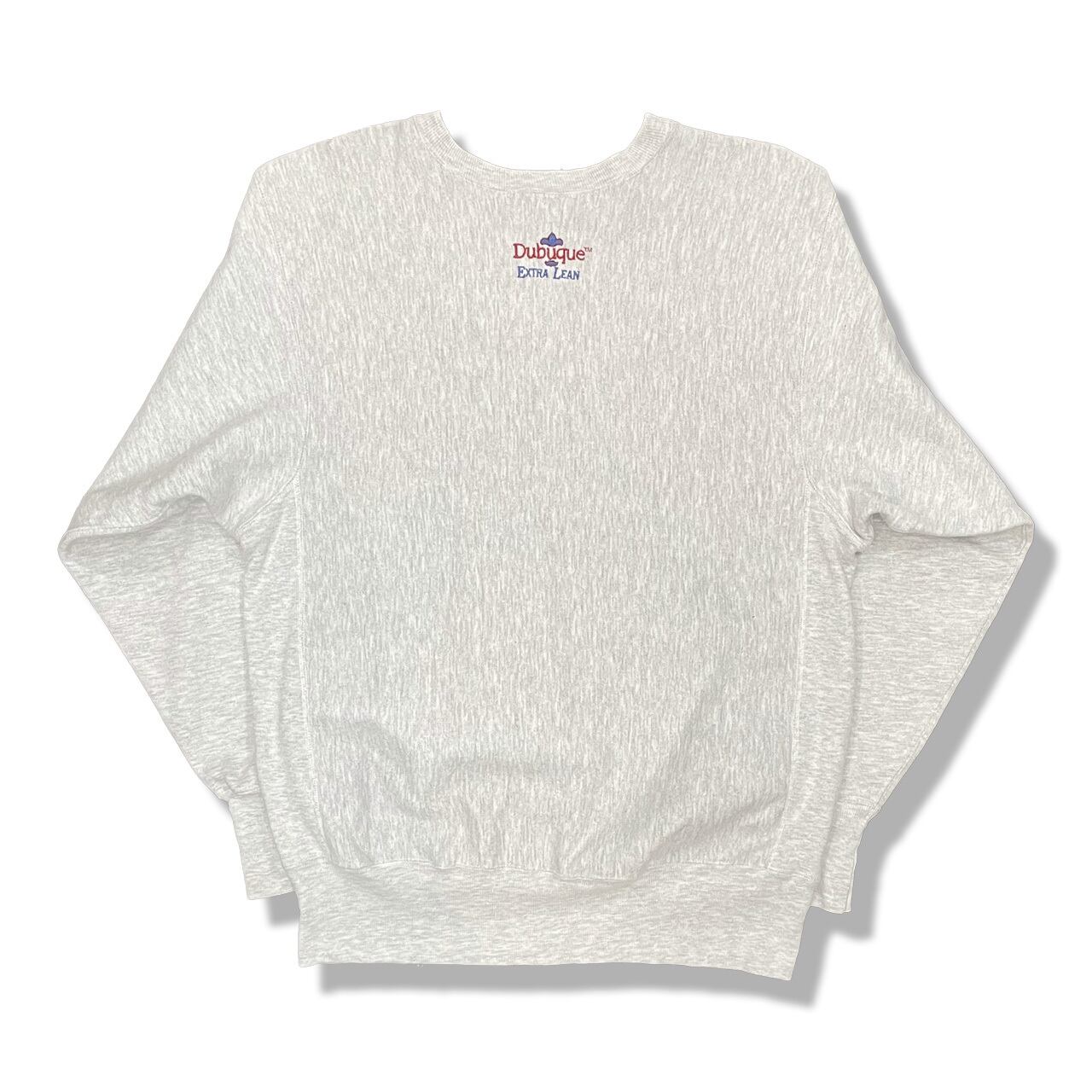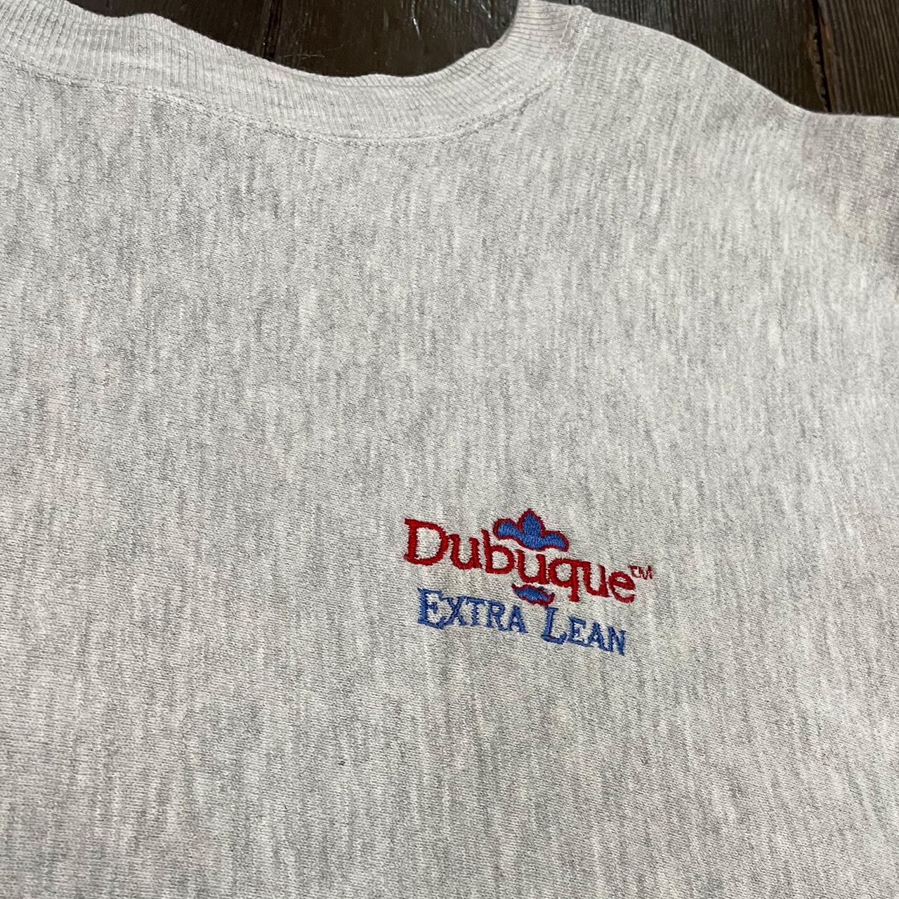 <Dubuque EXTRA LEAN>の刺繍が入っています。調べてみると肉のブランドのようで企業物になります。