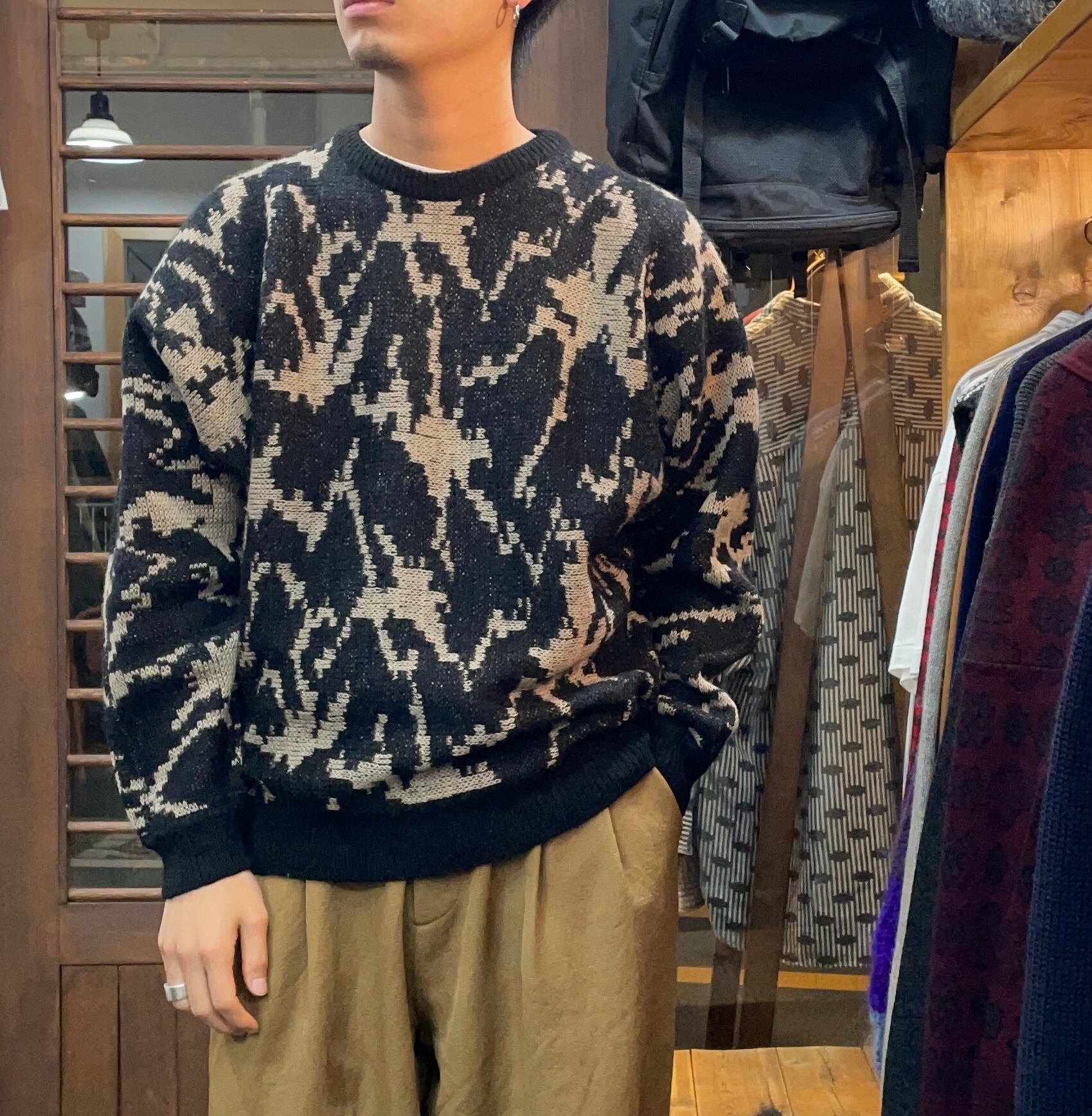 また袖はドルマンスリーブでハギのないカッティングになっており面白くも洒落たニットになってます。